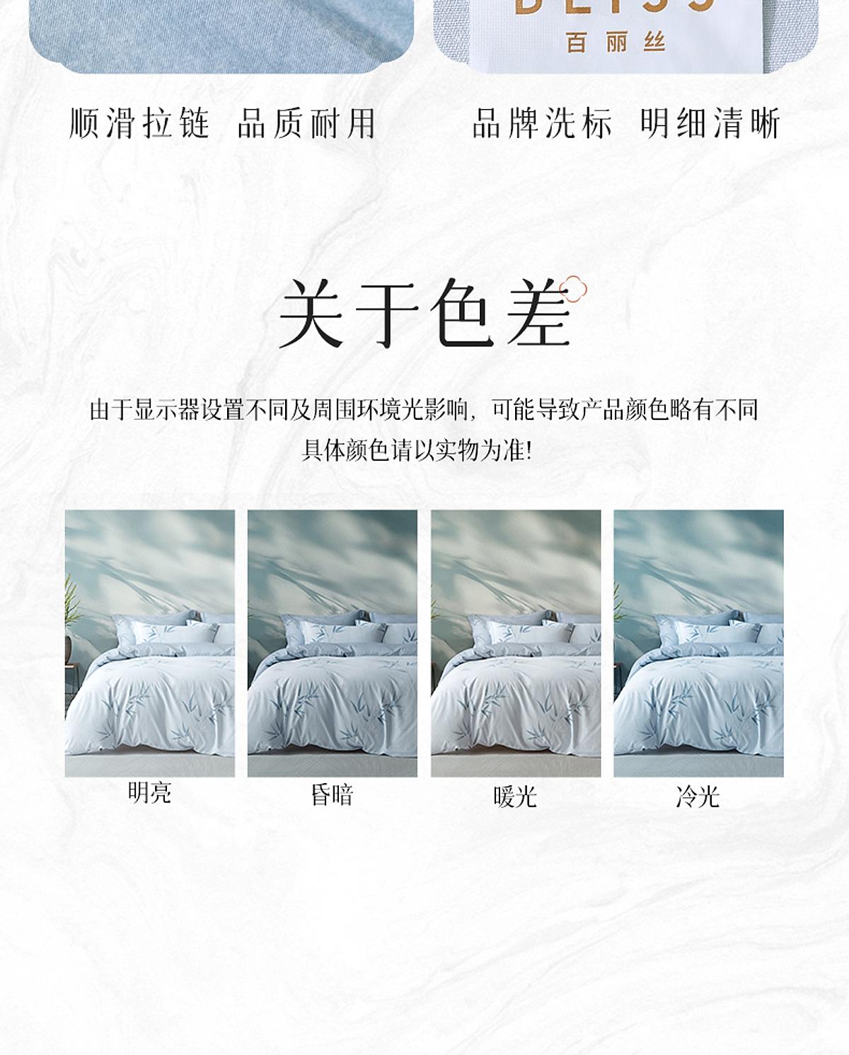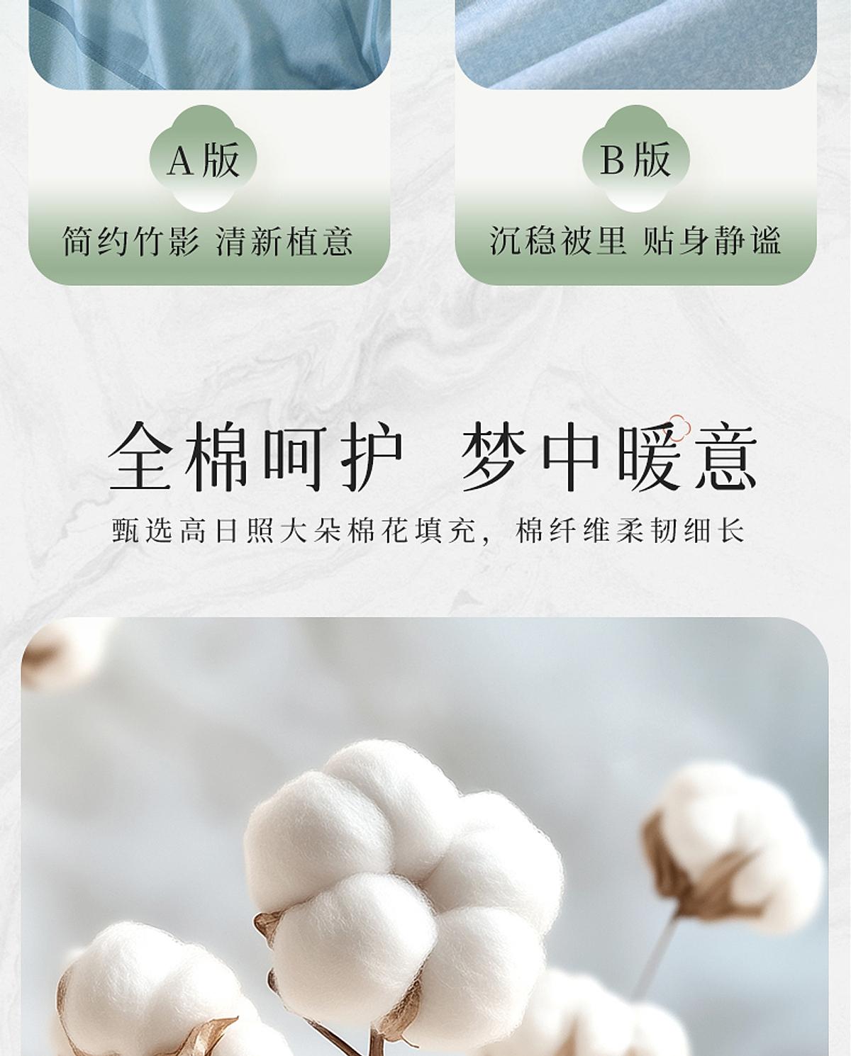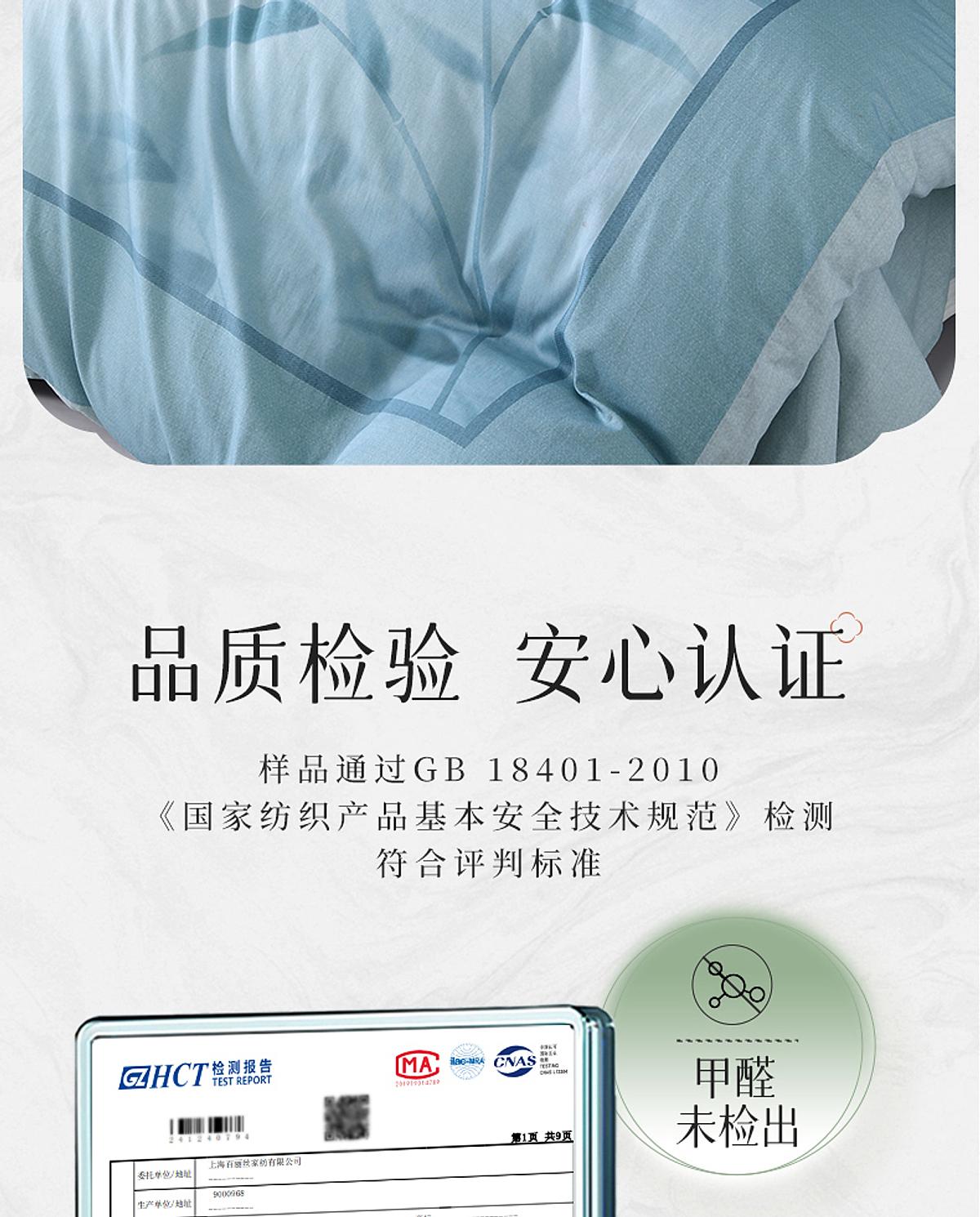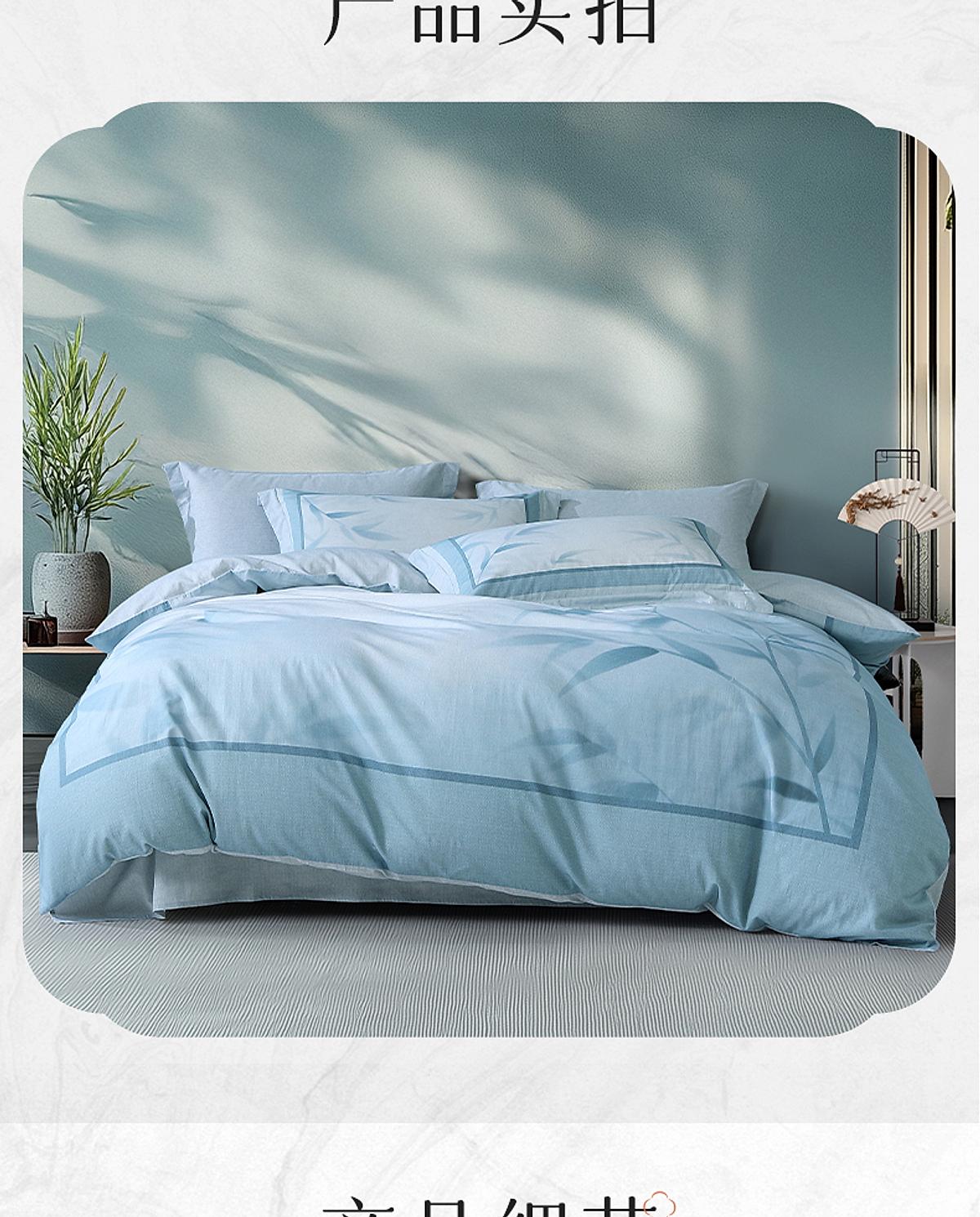 水星家纺 清竹晚韵床上用品 全棉简约舒适印花四件套