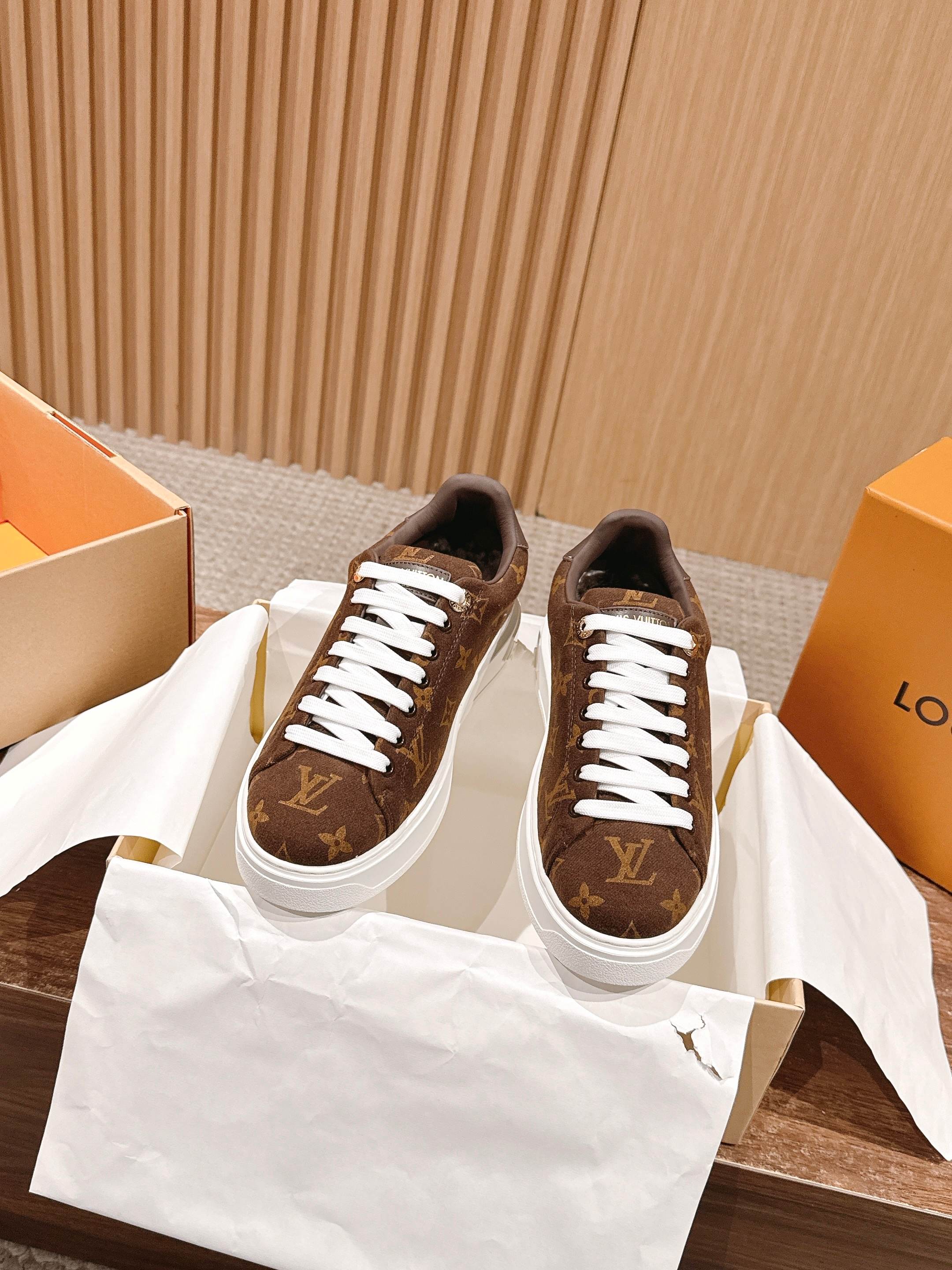 𝐋𝐎𝐔𝐈𝐒 𝐕𝐔𝐓𝐓𝐈𝐎𝐍# 驴家新款花纹打印经典厚底运动鞋新版面 本款Time Out 运动鞋为柔软牛皮革压印迷你 Monogram图案,焕新L,v 的经典设计。3D标识点缀,加厚凸纹外底,铭纹孔眼再添精致细节 Size:35-39(40/41定做)