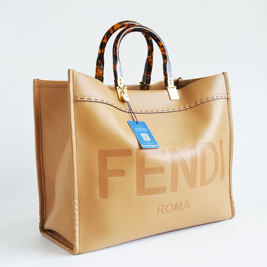 【95新】FENDI芬迪Sunshine 系列8BH386中号棕色Sunshine tote托特包购物袋手提单肩包女士100725AK04
