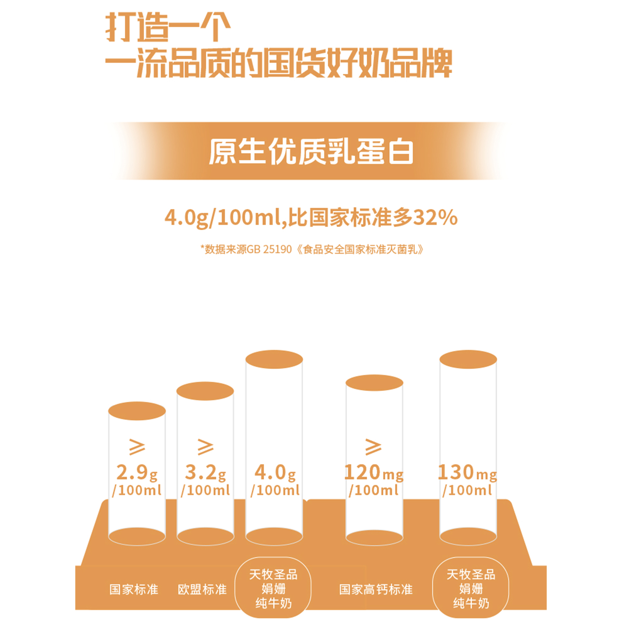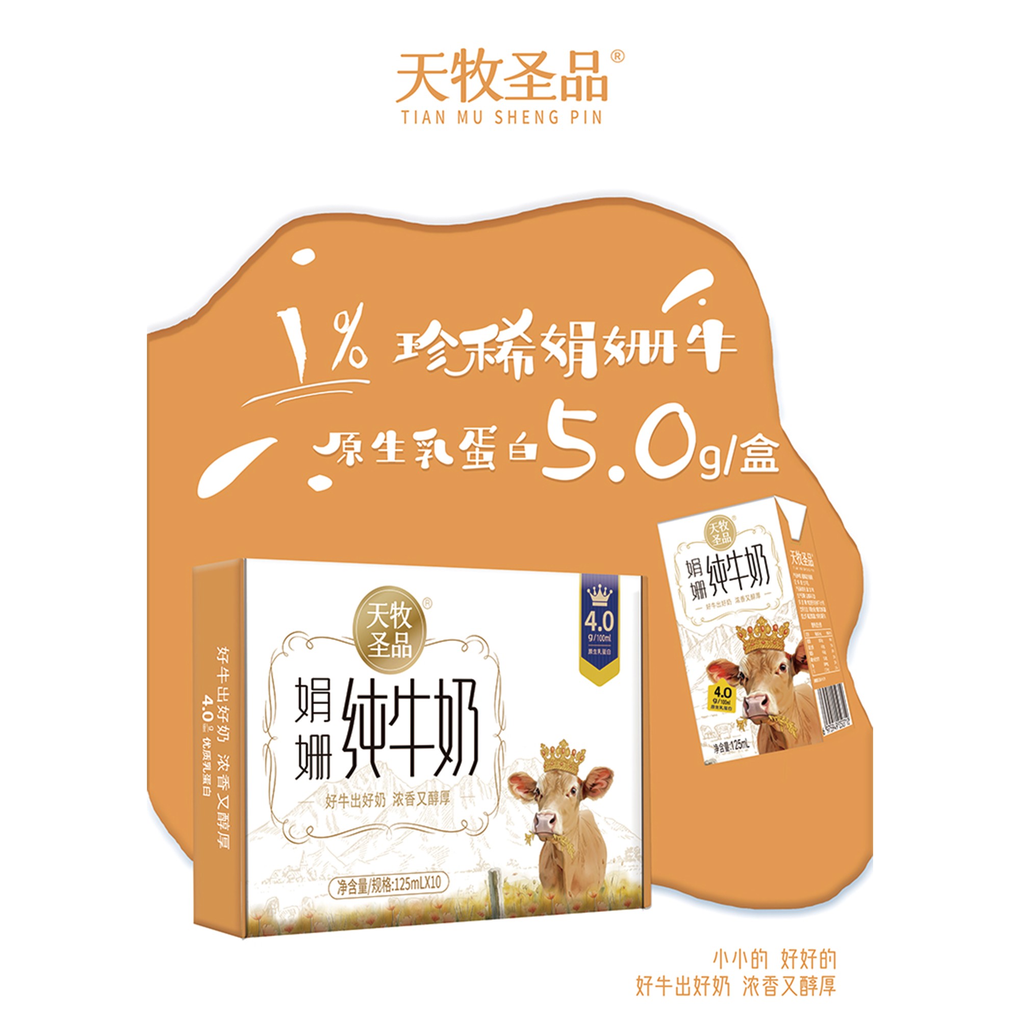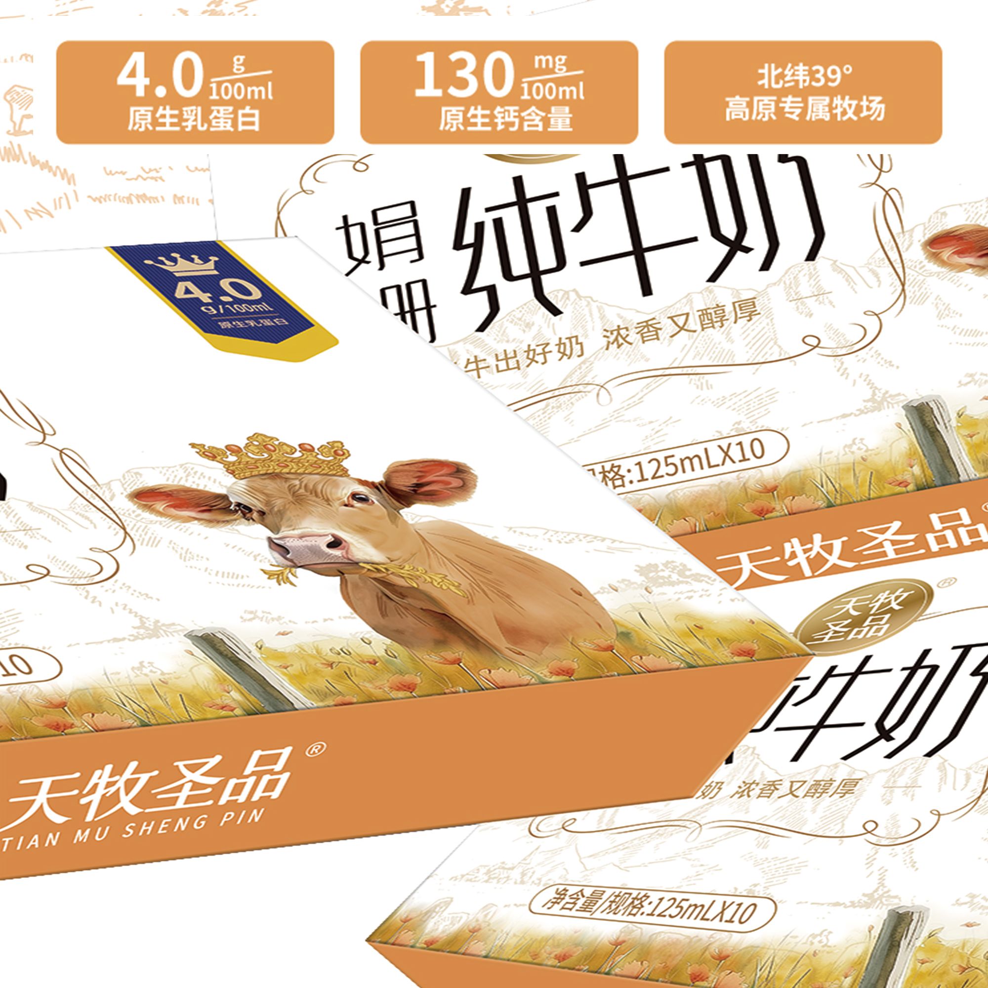 天牧圣品娟姗4.0蛋白纯牛奶125mlx10/三提装 生牛乳+原生蛋白+原生高钙