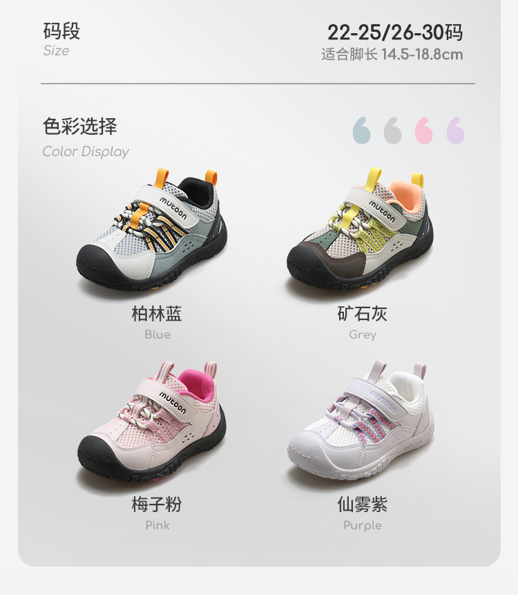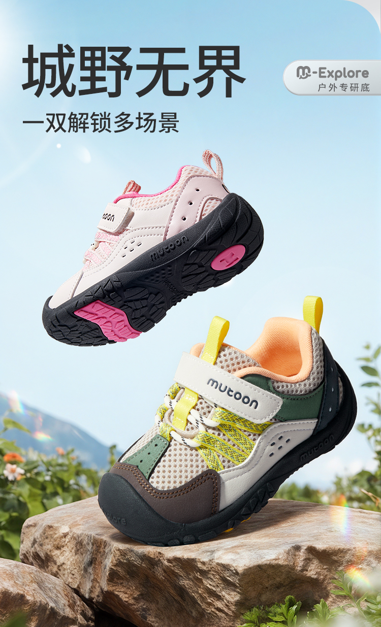 牧童童鞋儿童运动鞋2026春季新款男童户外鞋子缓震网面登山鞋女童