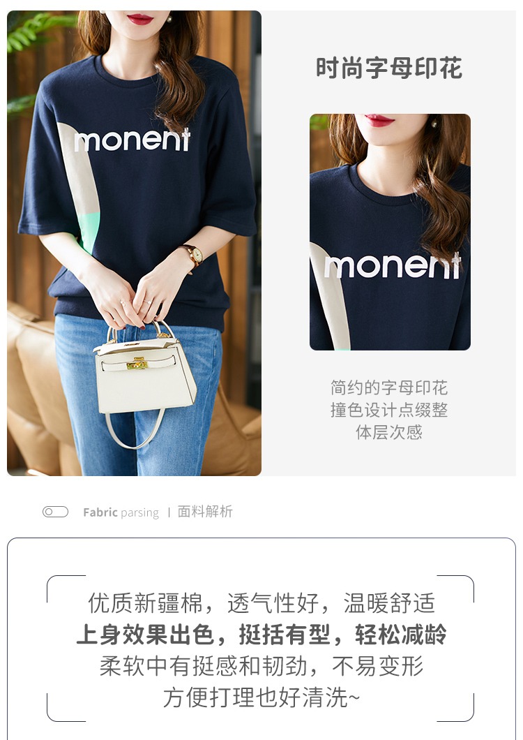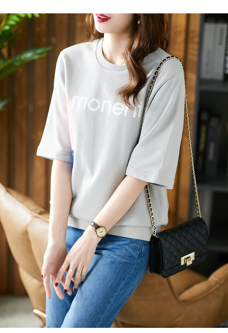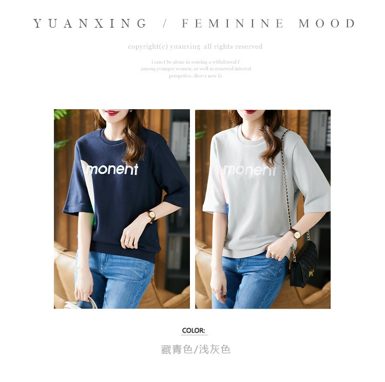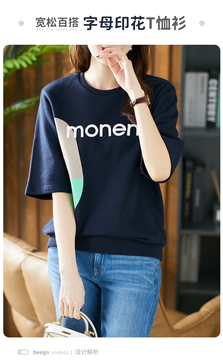 YX【现货7天】洋气字母印花t恤女2024夏季新款短袖宽松打底衫百搭上衣