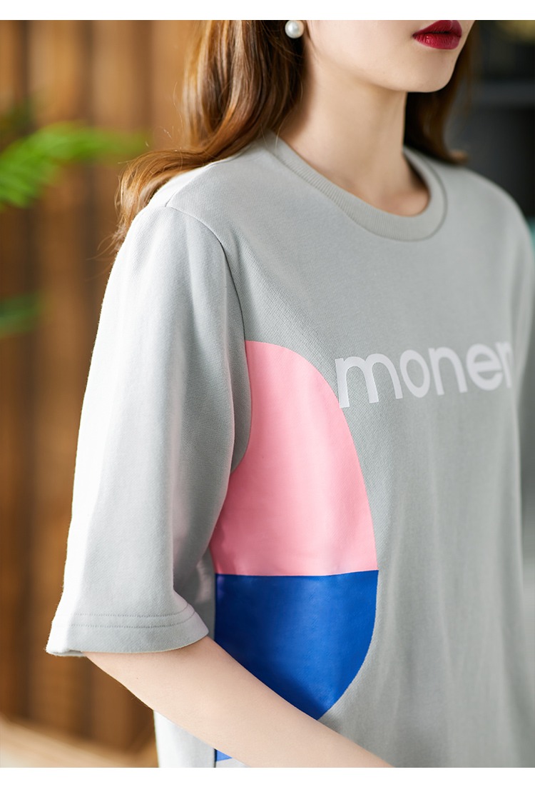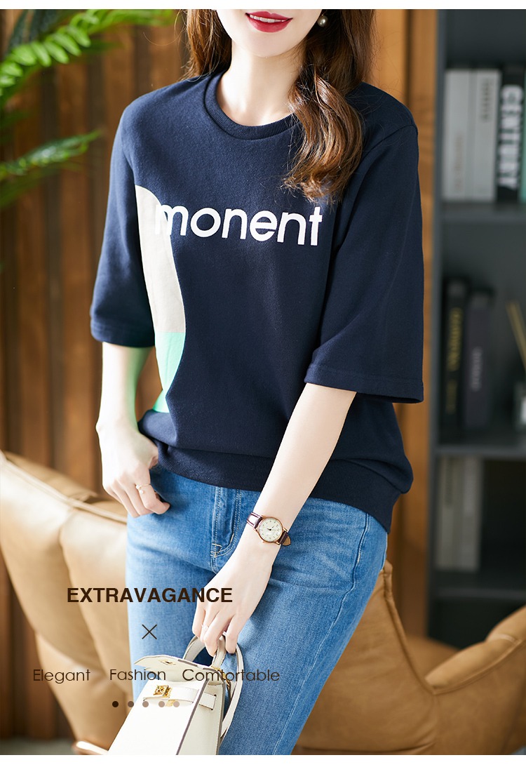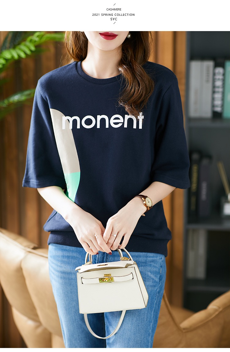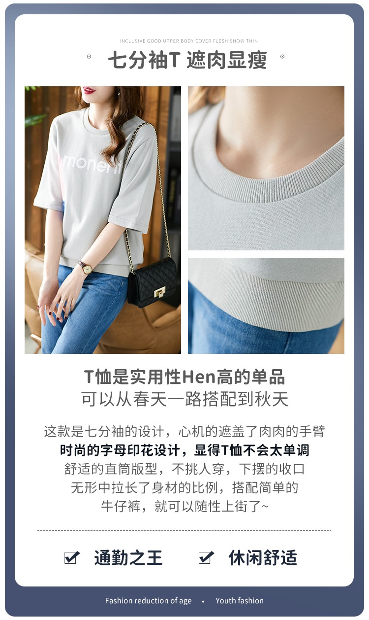 YX【现货7天】洋气字母印花t恤女2024夏季新款短袖宽松打底衫百搭上衣