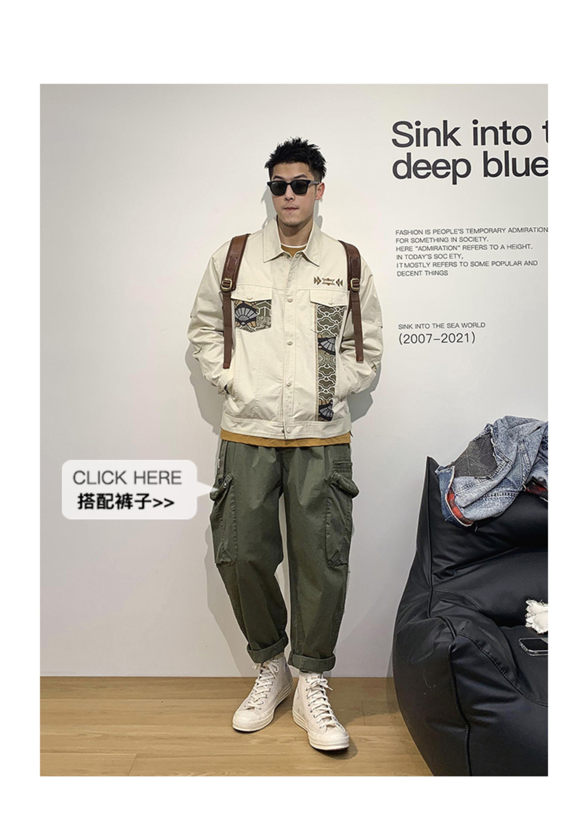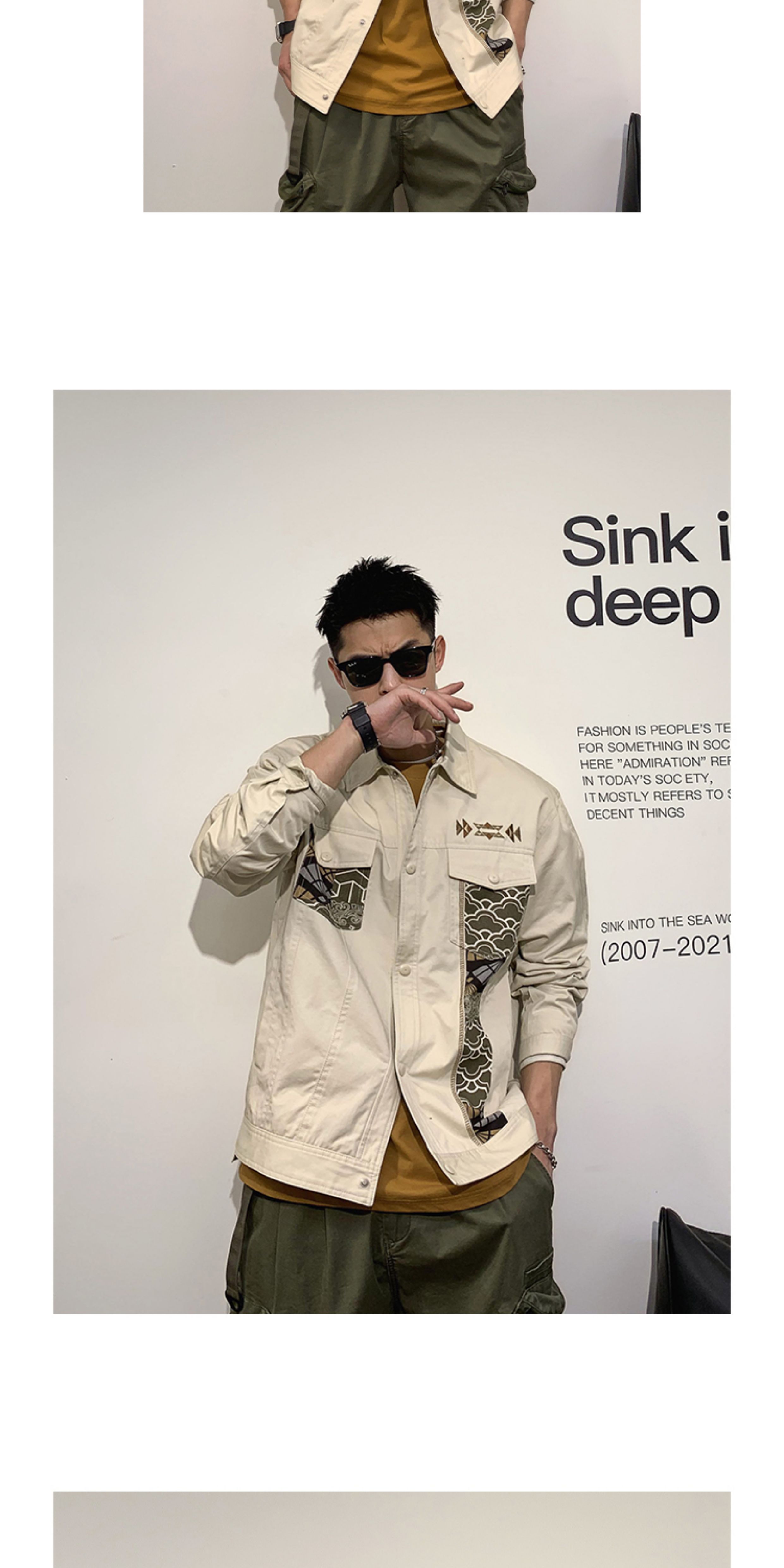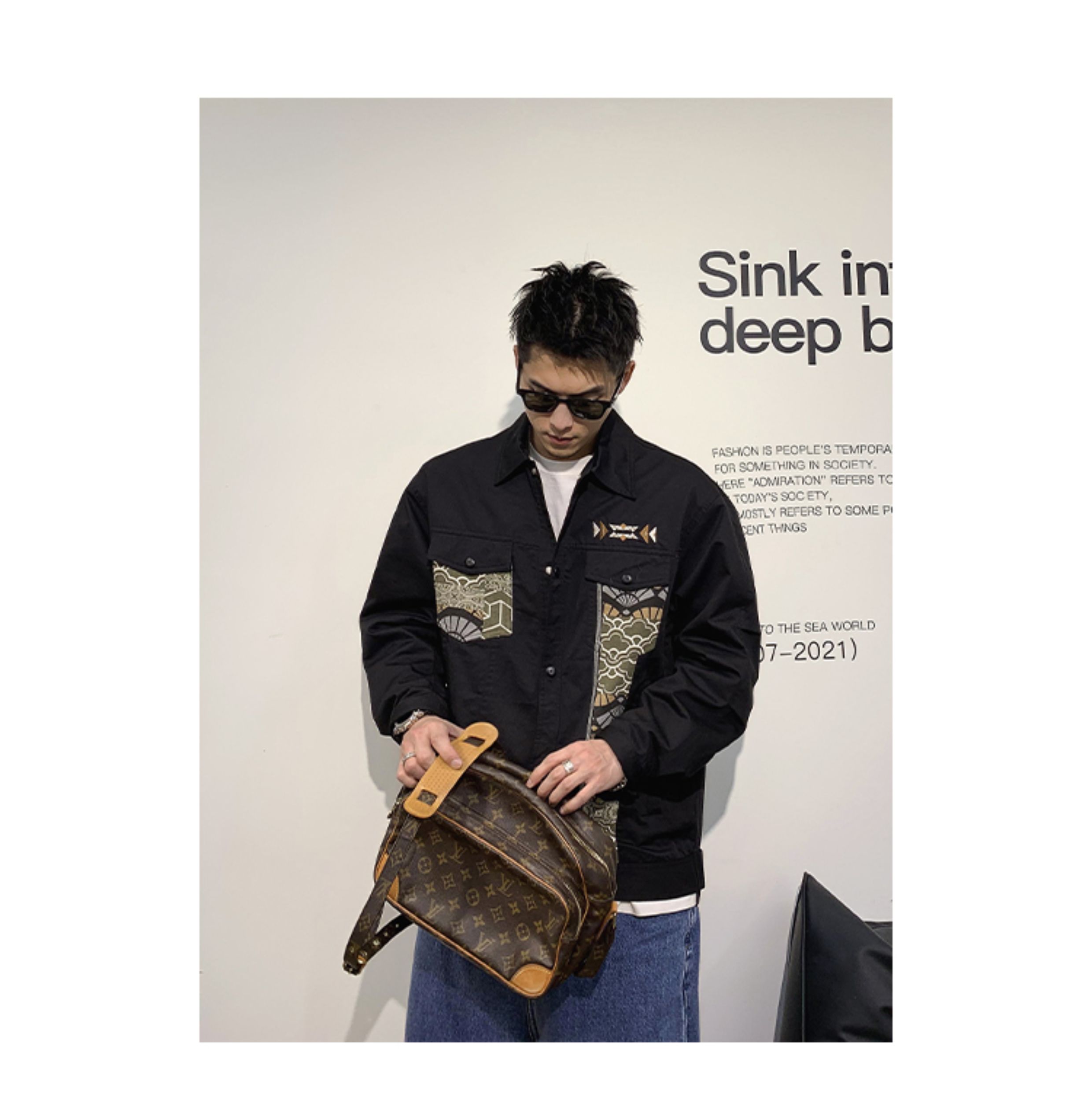 徐太浪高级感拼接工装夹克男春秋美式休闲百搭复古设计感翻领外套
