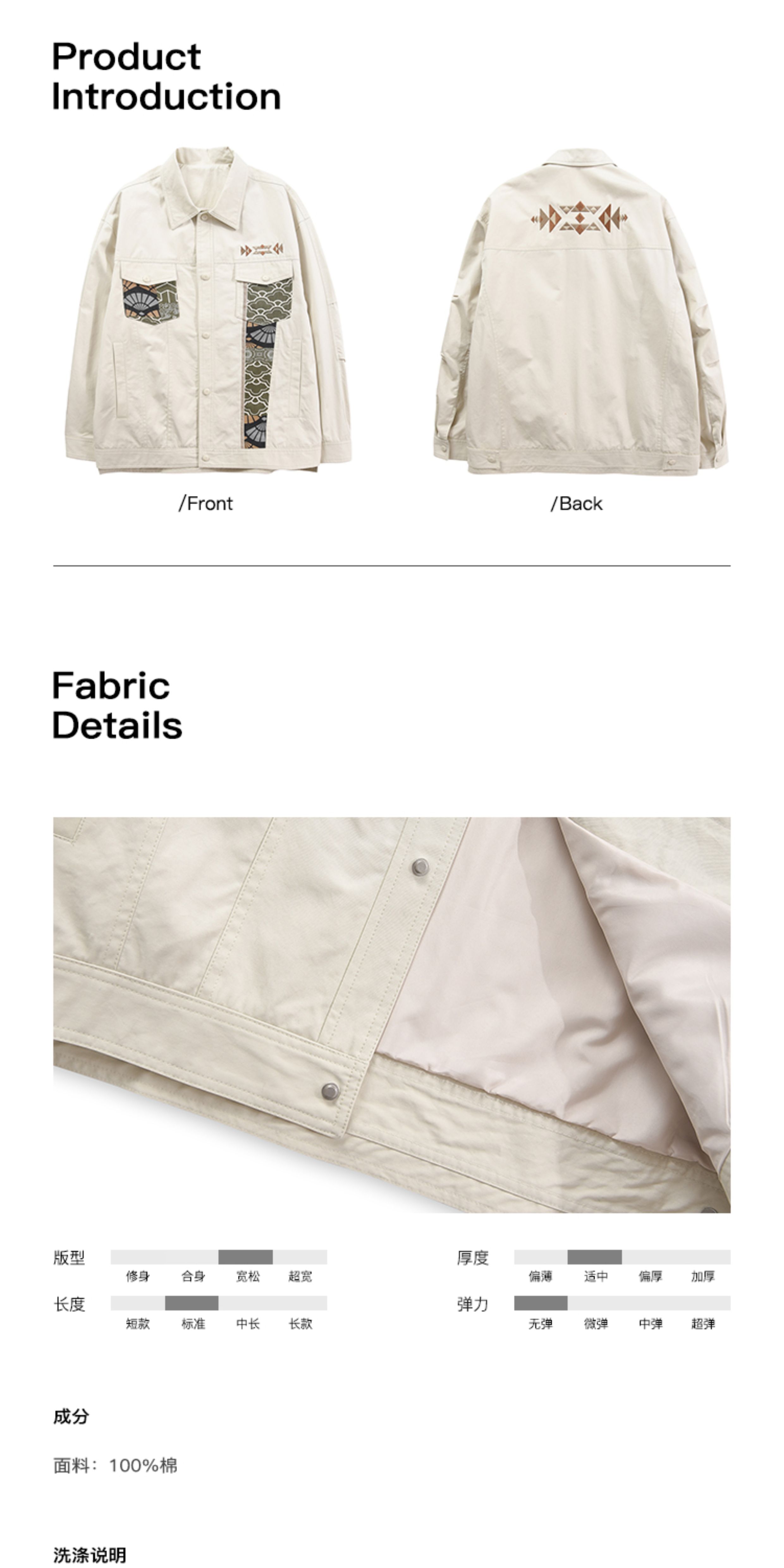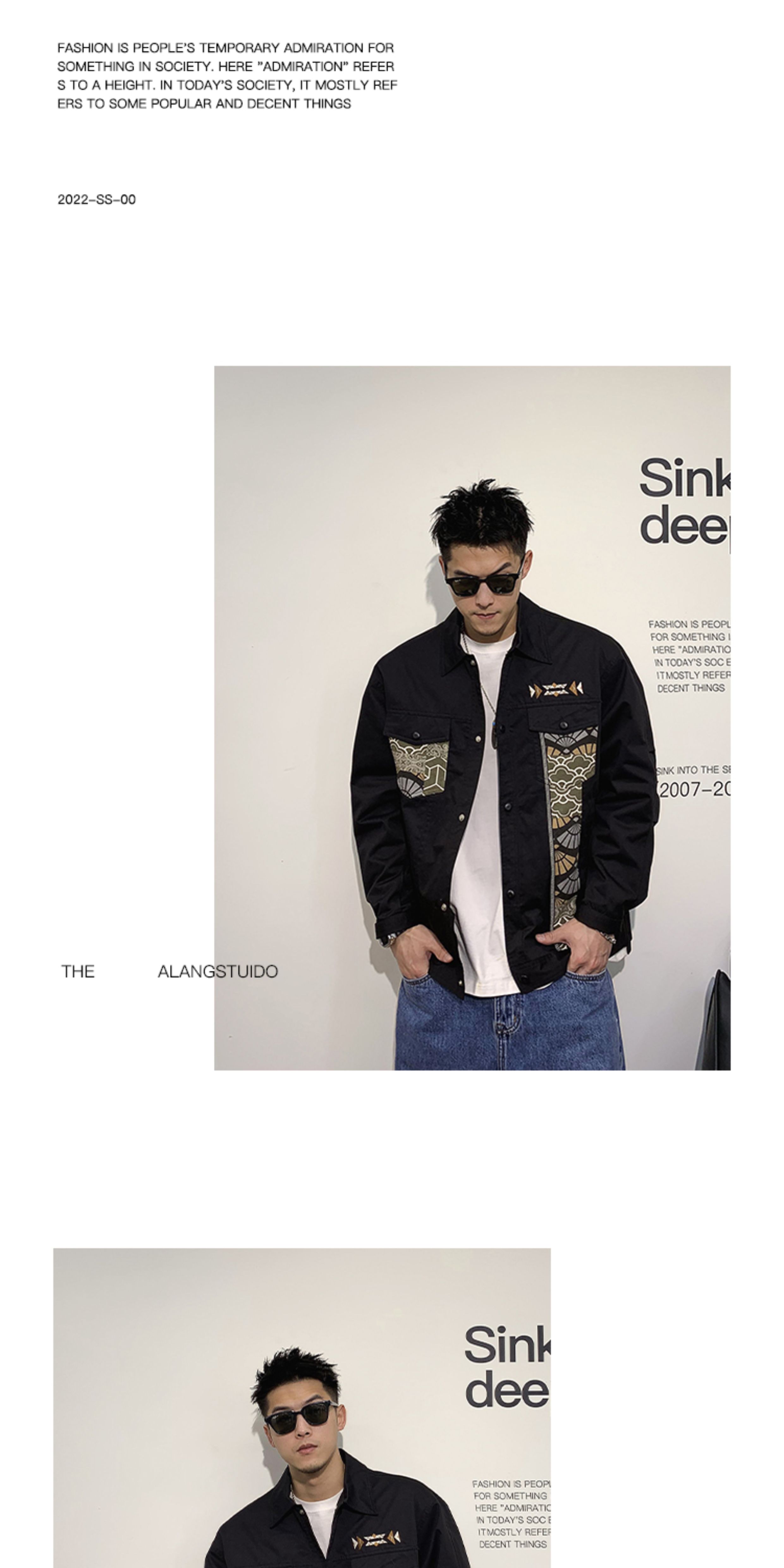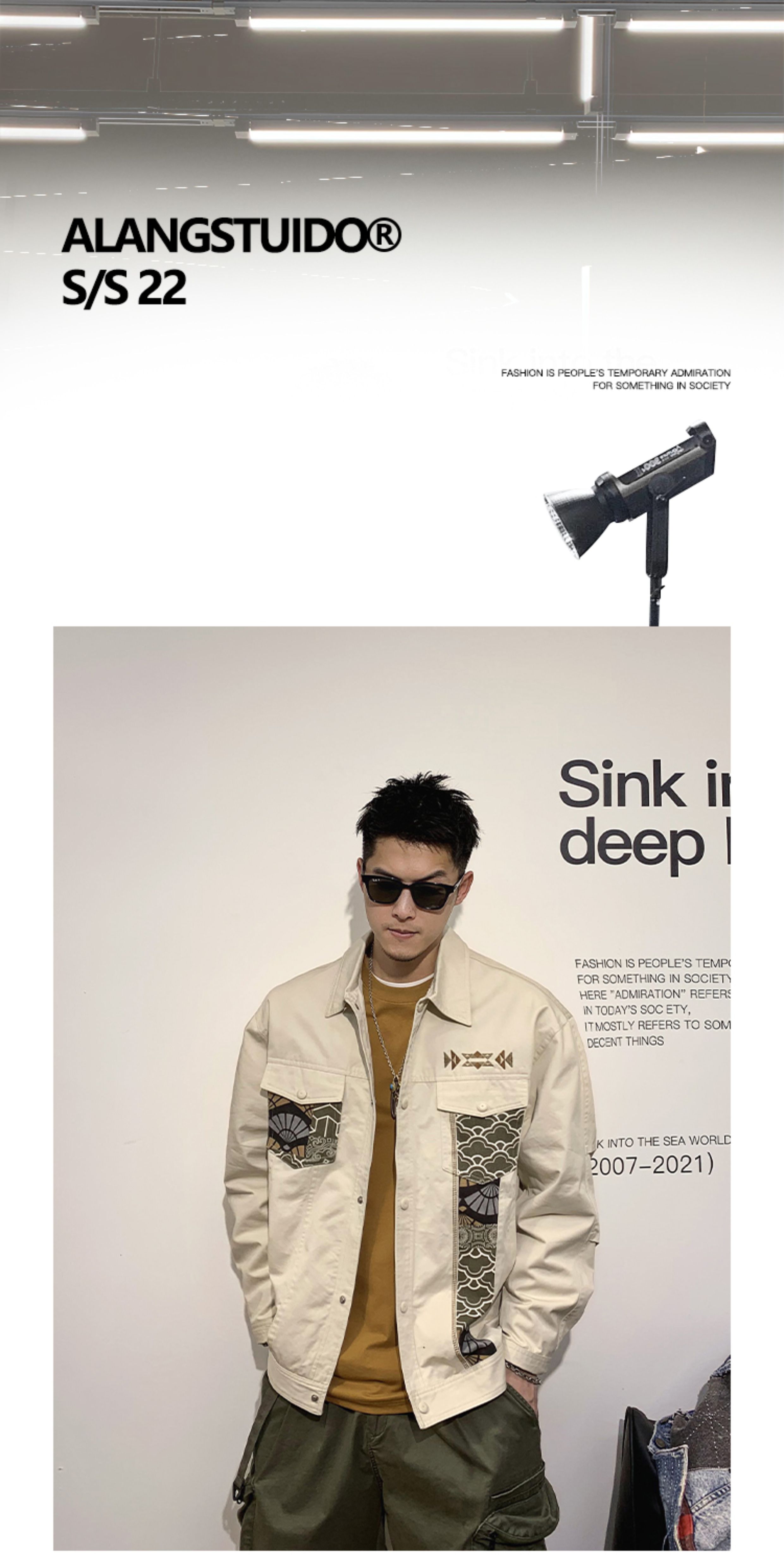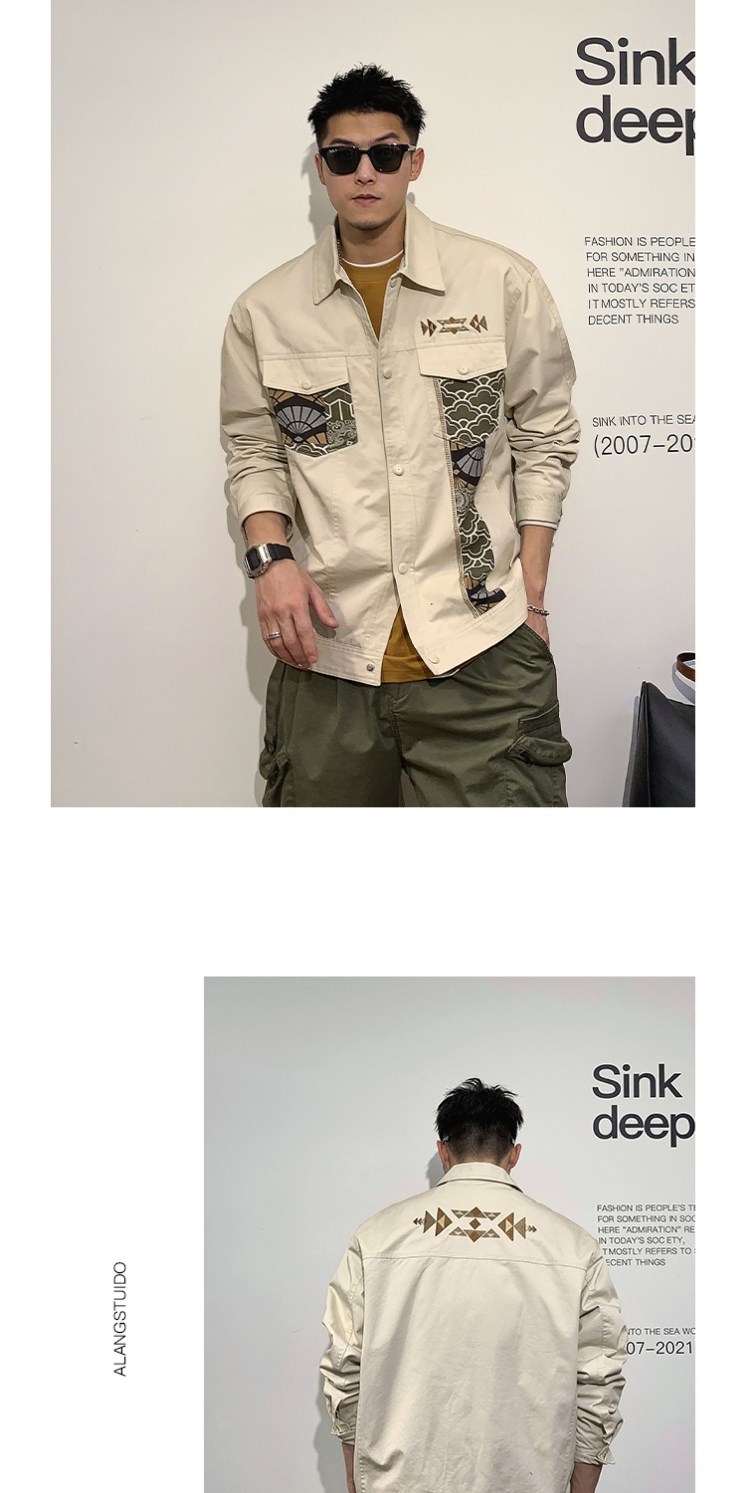 徐太浪高级感拼接工装夹克男春秋美式休闲百搭复古设计感翻领外套