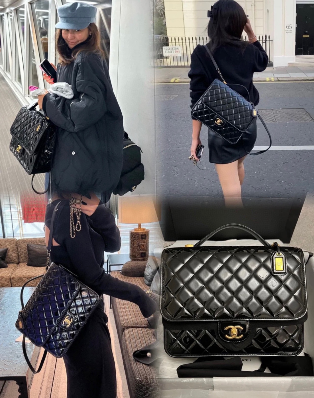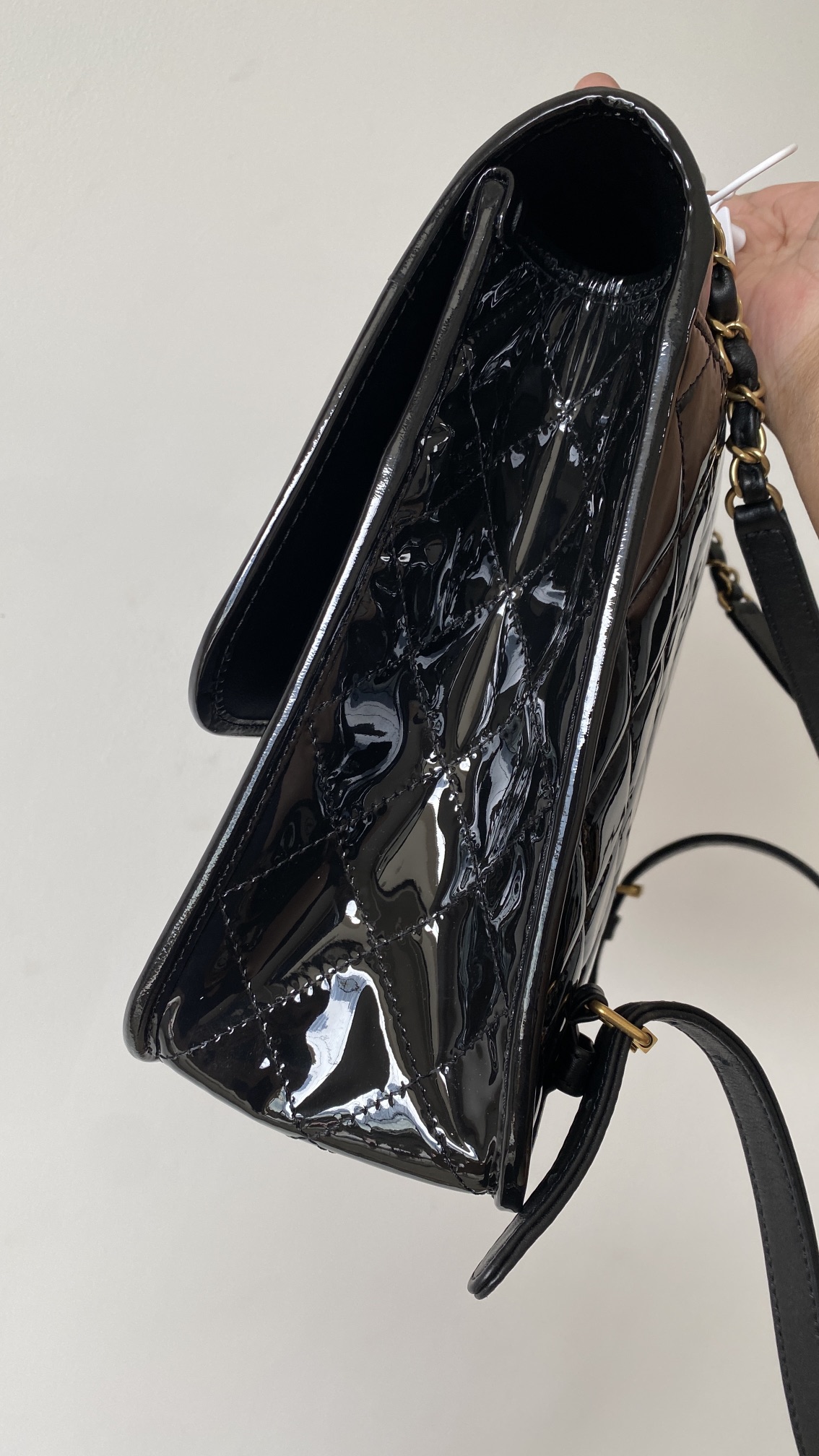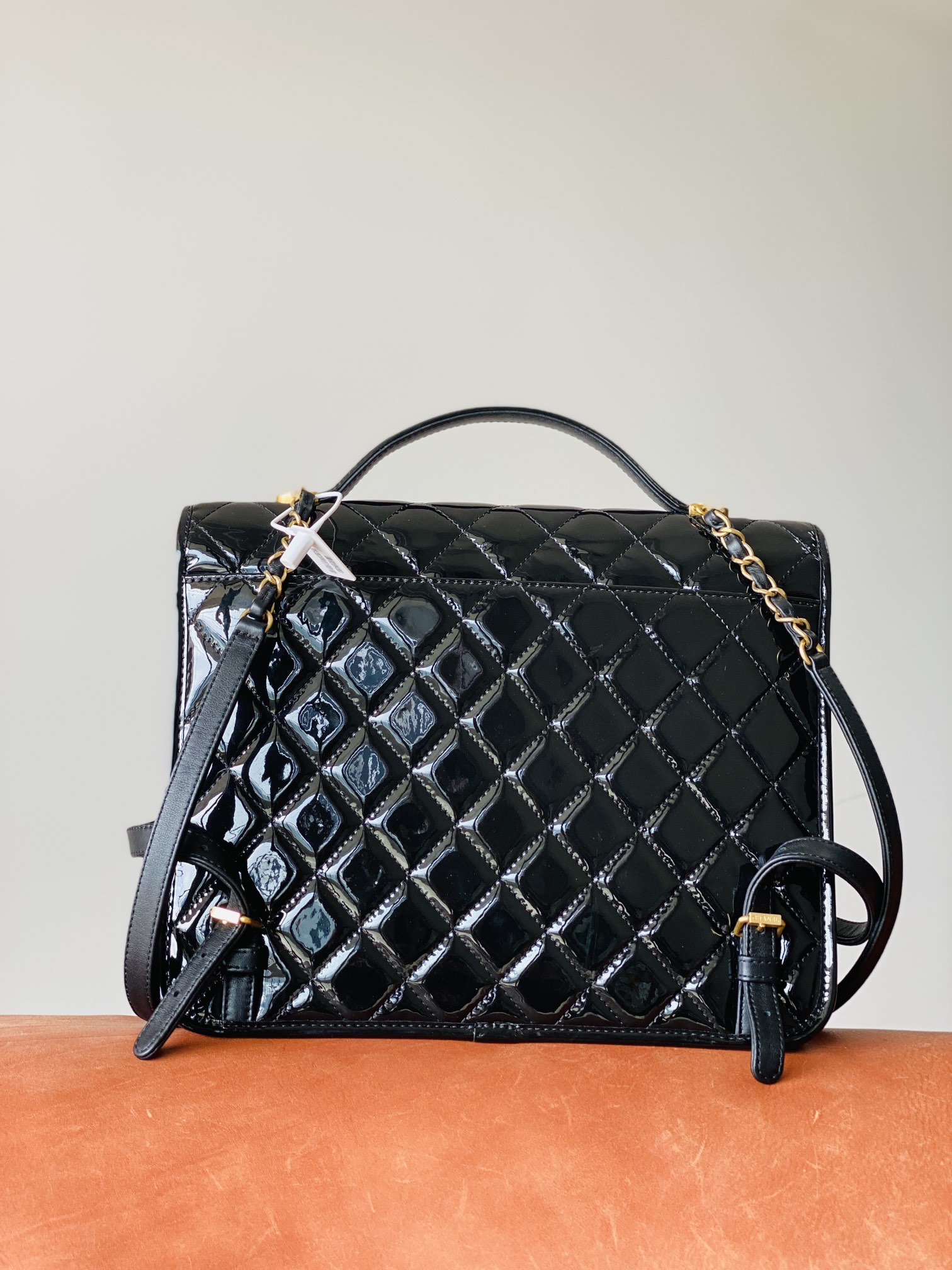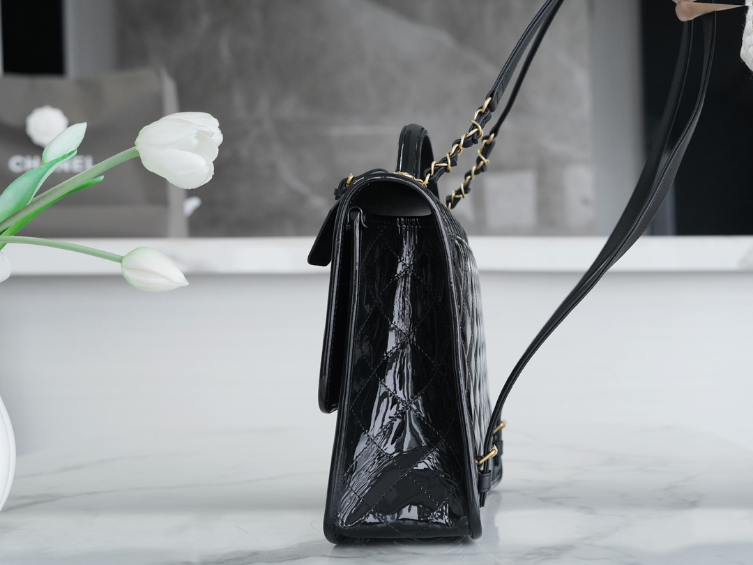 香奶奶 独家原厂大爆款;22K漆皮双肩包!“三只羊”小牛漆!做旧砂金扣!