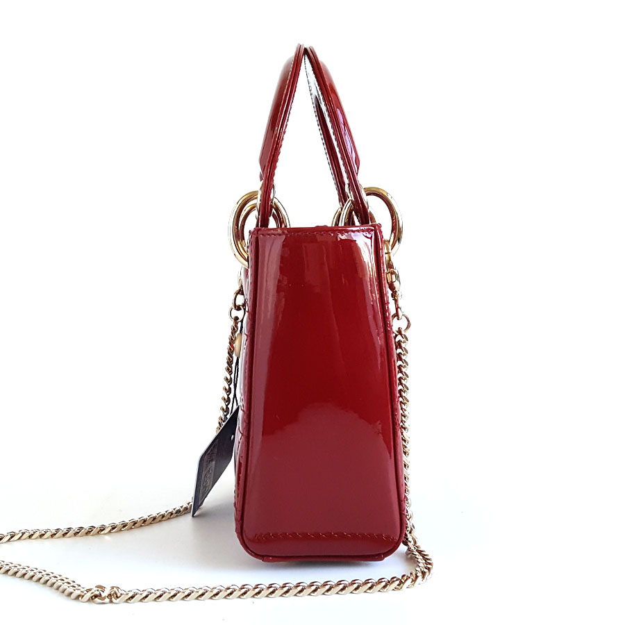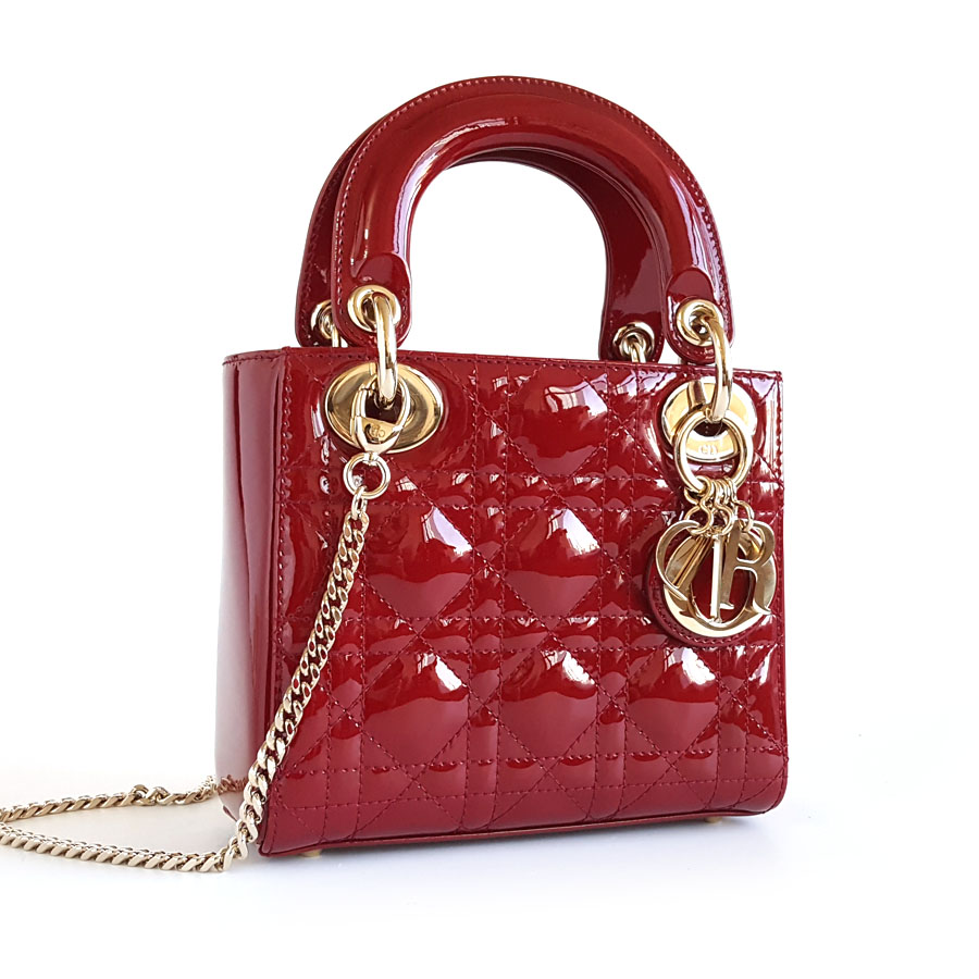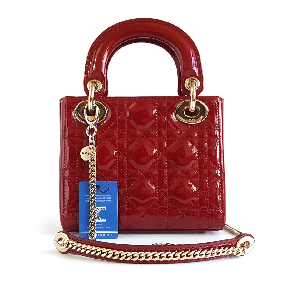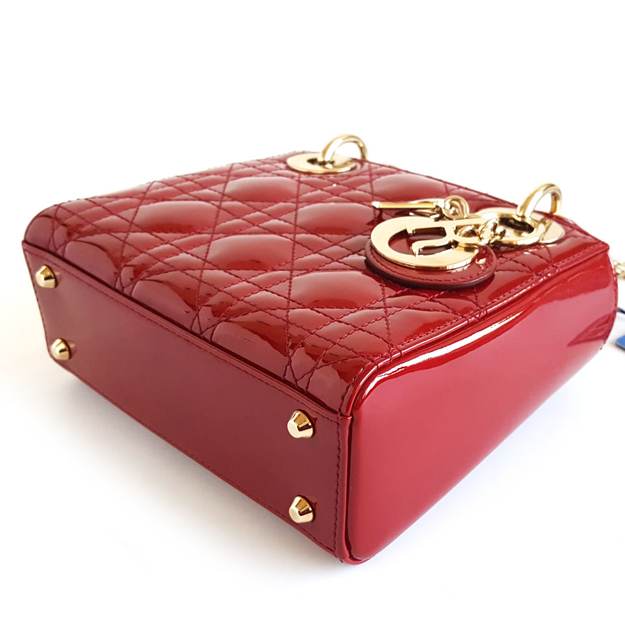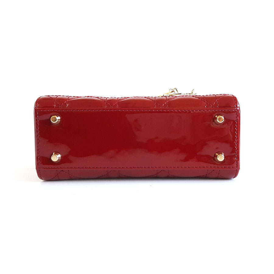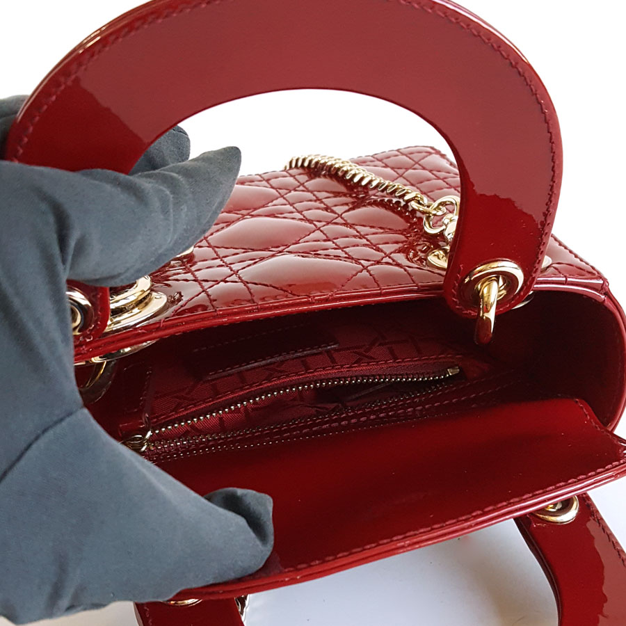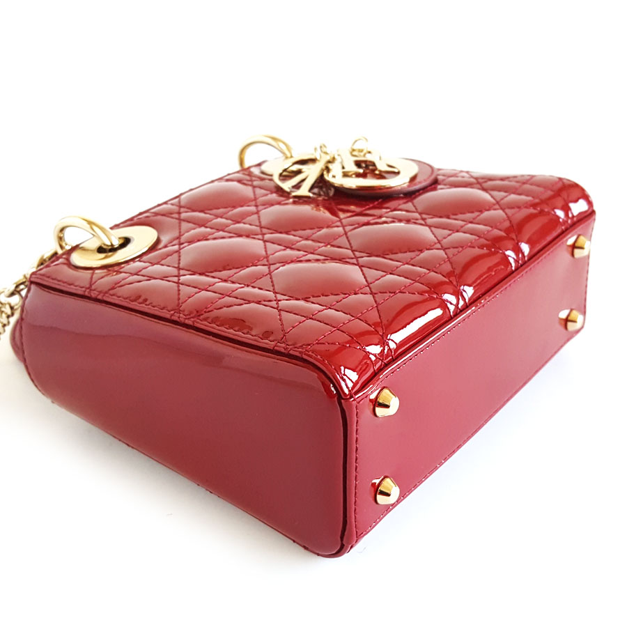 【95新】Dior迪奥迷你LADY DIOR手袋红色金扣三格漆皮戴妃链条包手提单肩包女士261125NJT07