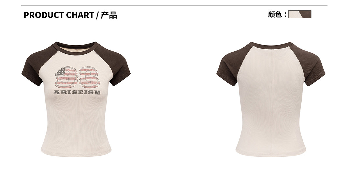 Ariseism 美式复古数字图案短袖T恤女夏季新款修身上衣
