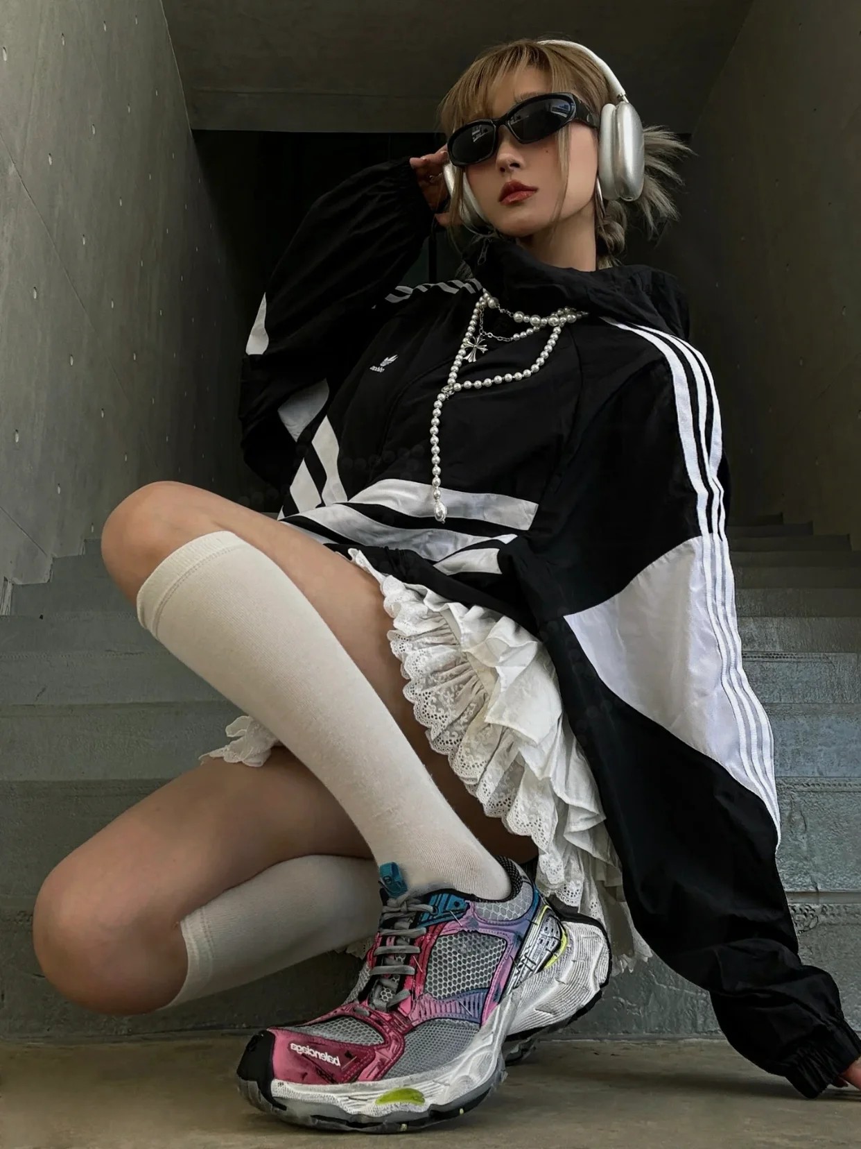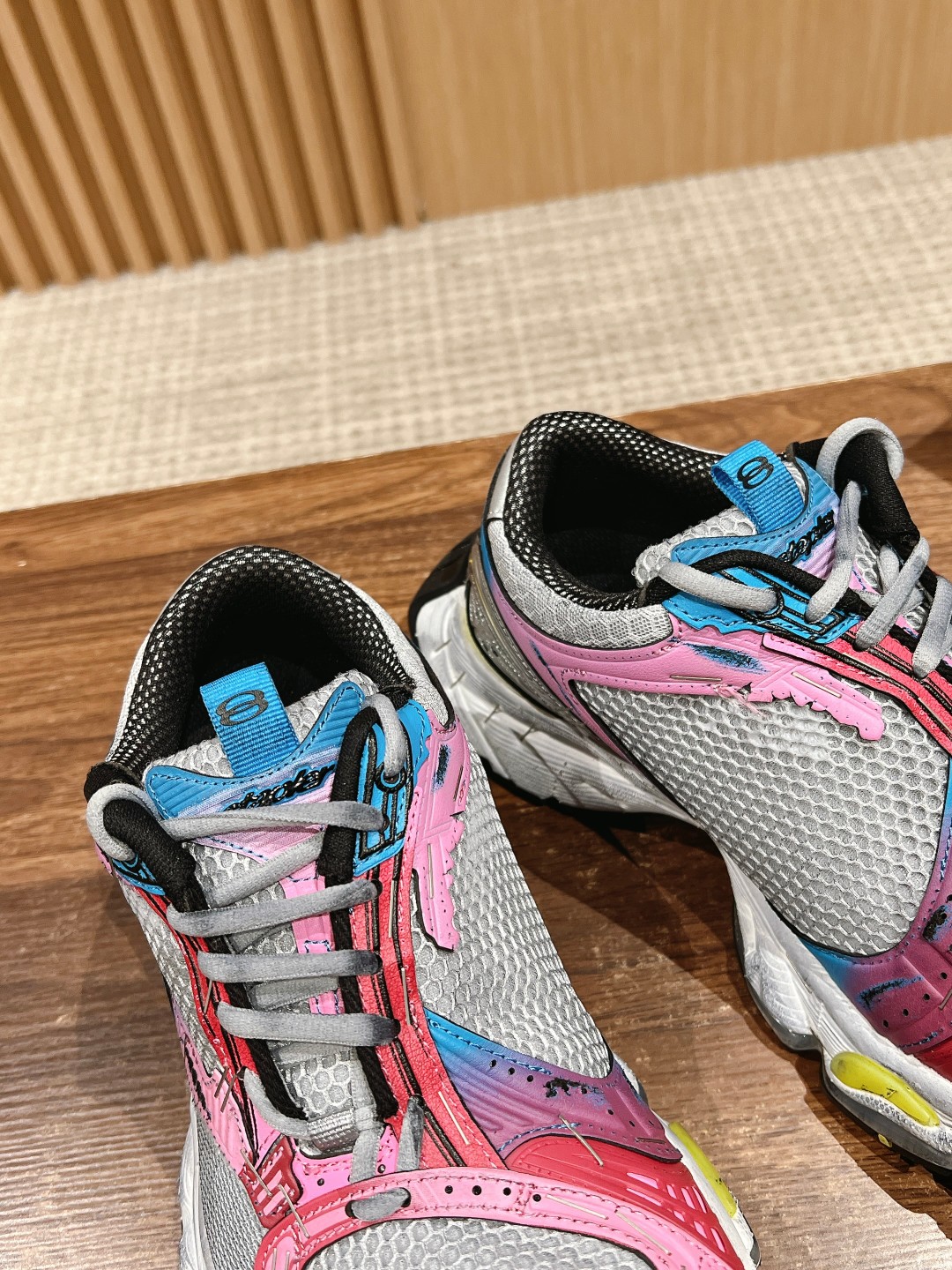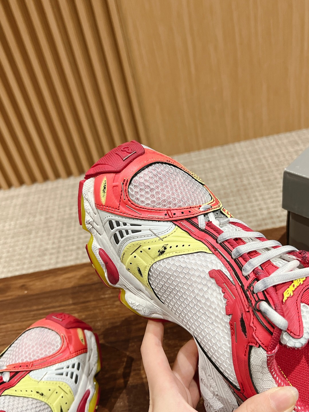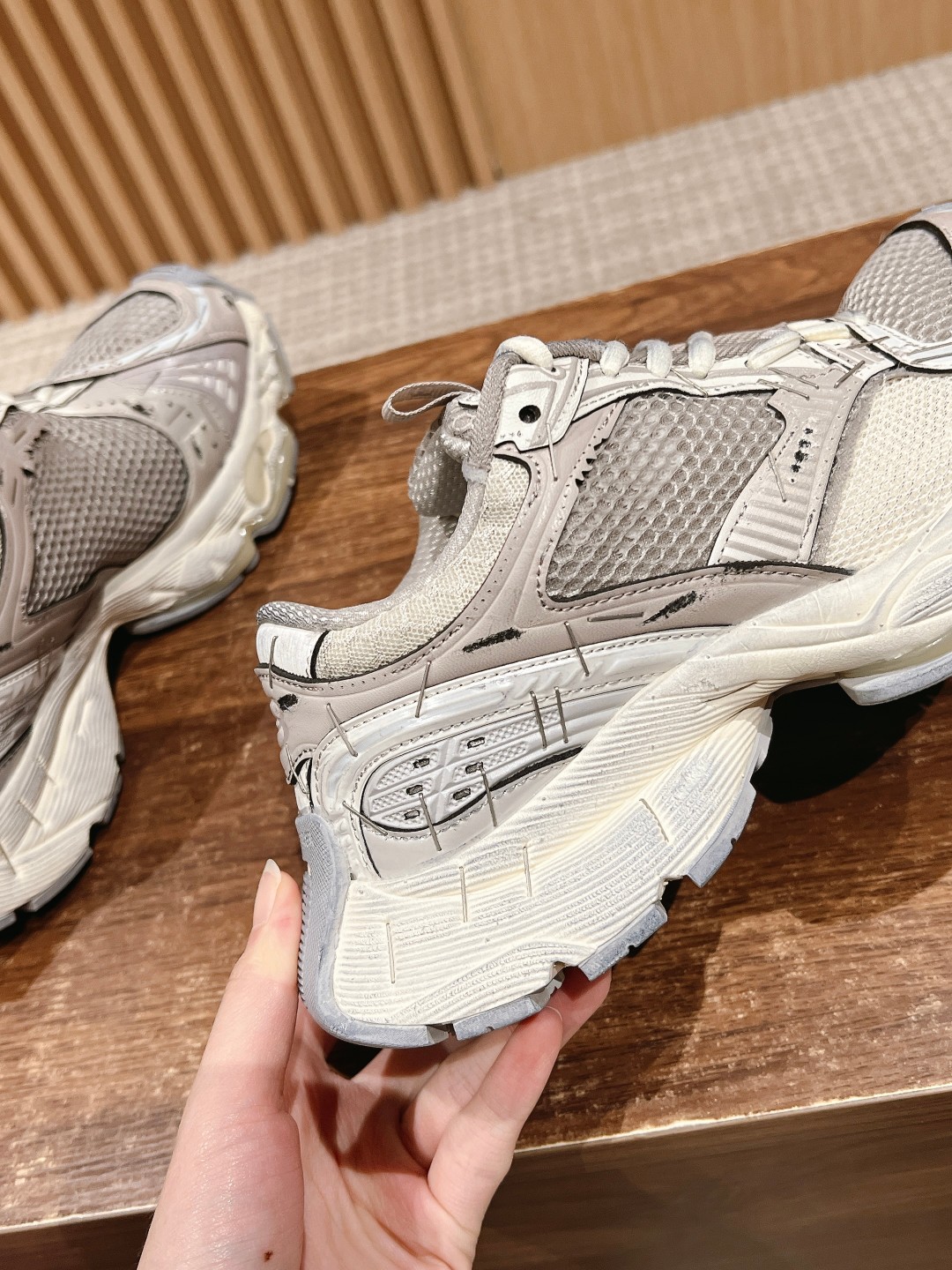 整体造型上接近 circuit,鞋头翘起来,工艺拼接上接近3xl。采用订书钉代替走线固定鞋身,或许这是订书钉和潮流单品最近的一次