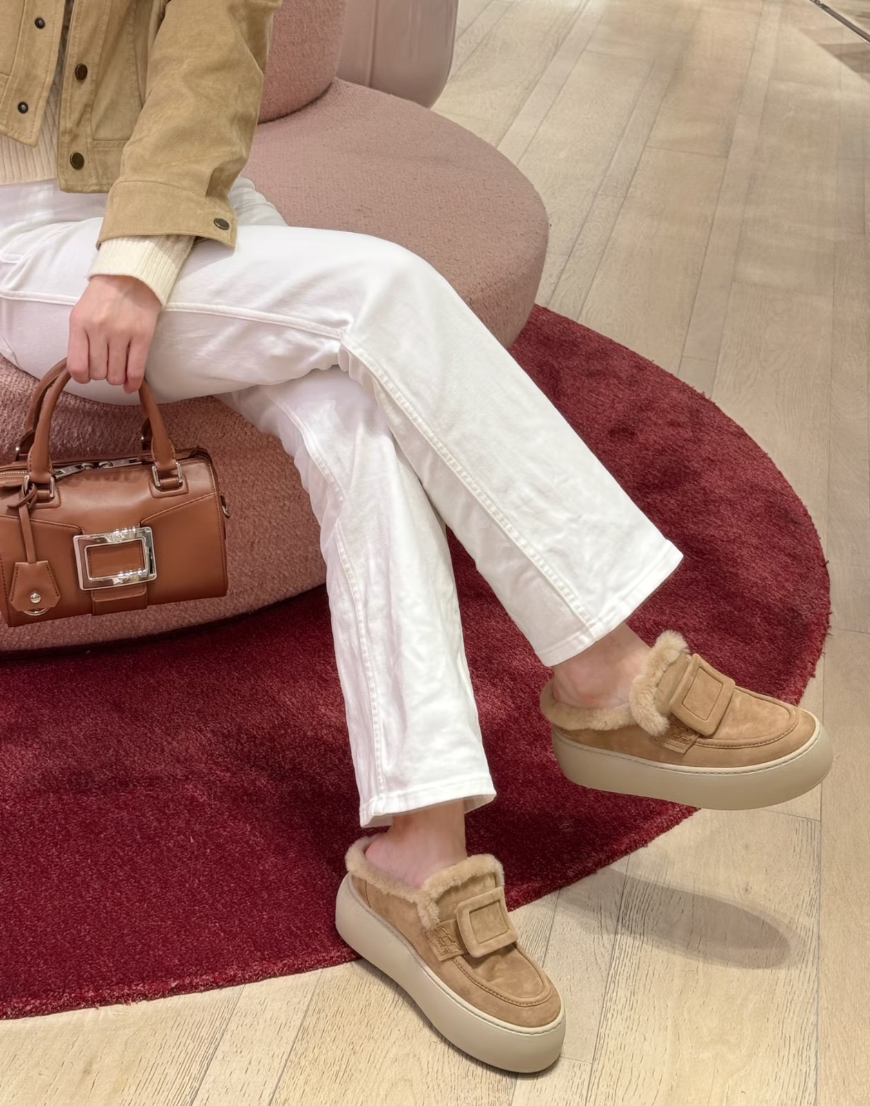 𝐑𝐨𝐠𝐞𝐫 𝐕𝐢𝐯𝐢𝐞𝐫 𝐑𝐕 𝐕𝐢𝐯' 𝐔𝐩 罗杰维维亚穆勒毛毛鞋 本款穆勒毛毛鞋 ·采用羊皮革和羊毛皮,提供柔软和保暖的穿着体验 ·5厘米高的外底设计,柔韧舒适,类似瑜伽垫 ·鞋面搭配同色系扣饰,增添优雅感 ·适合休闲及正式场合,易于搭配,增添时尚感 ·轻盈质感与立体廓形,营造如履软垫般的穿着体验 这款鞋子是追求舒适与时尚的理想选择 Size:35-39(40定制不退换)