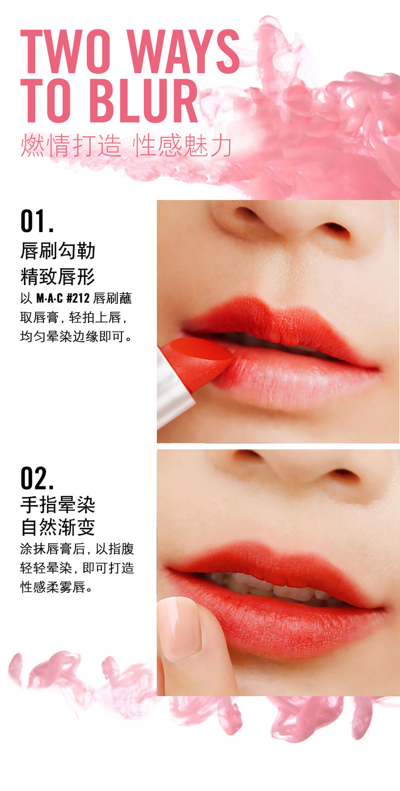使用唇刷涂抹,或将唇膏直接涂抹于唇部。