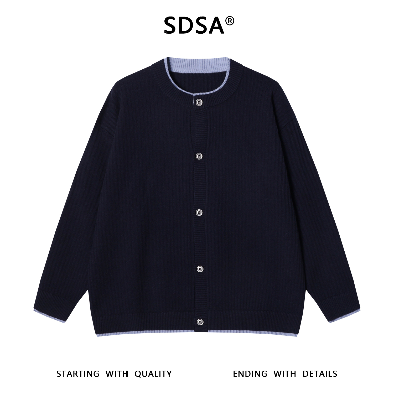259059SDSA秋冬新款痞帅男装慵懒风竖纹纽扣圆领假两件开衫针织毛衣百搭