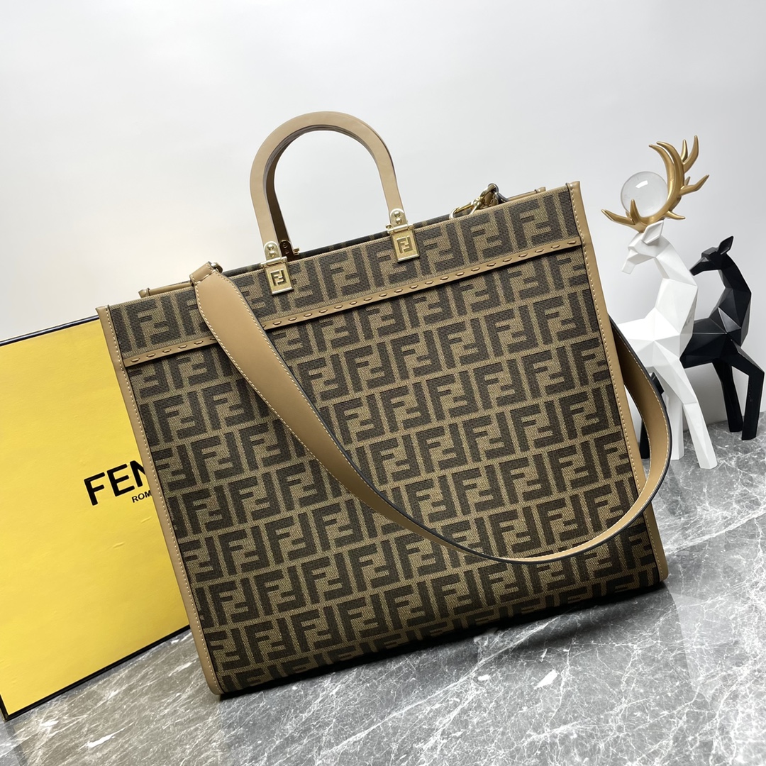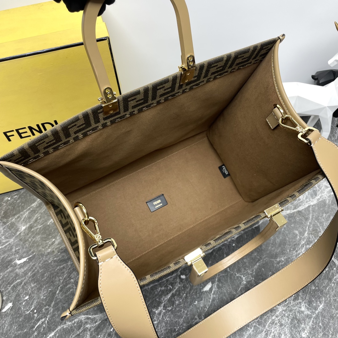 FENDI芬迪 Sunshine系列 压印老花Logo通勤大容量牛皮 阳光包托特包 购物袋 手提包 (LZ)