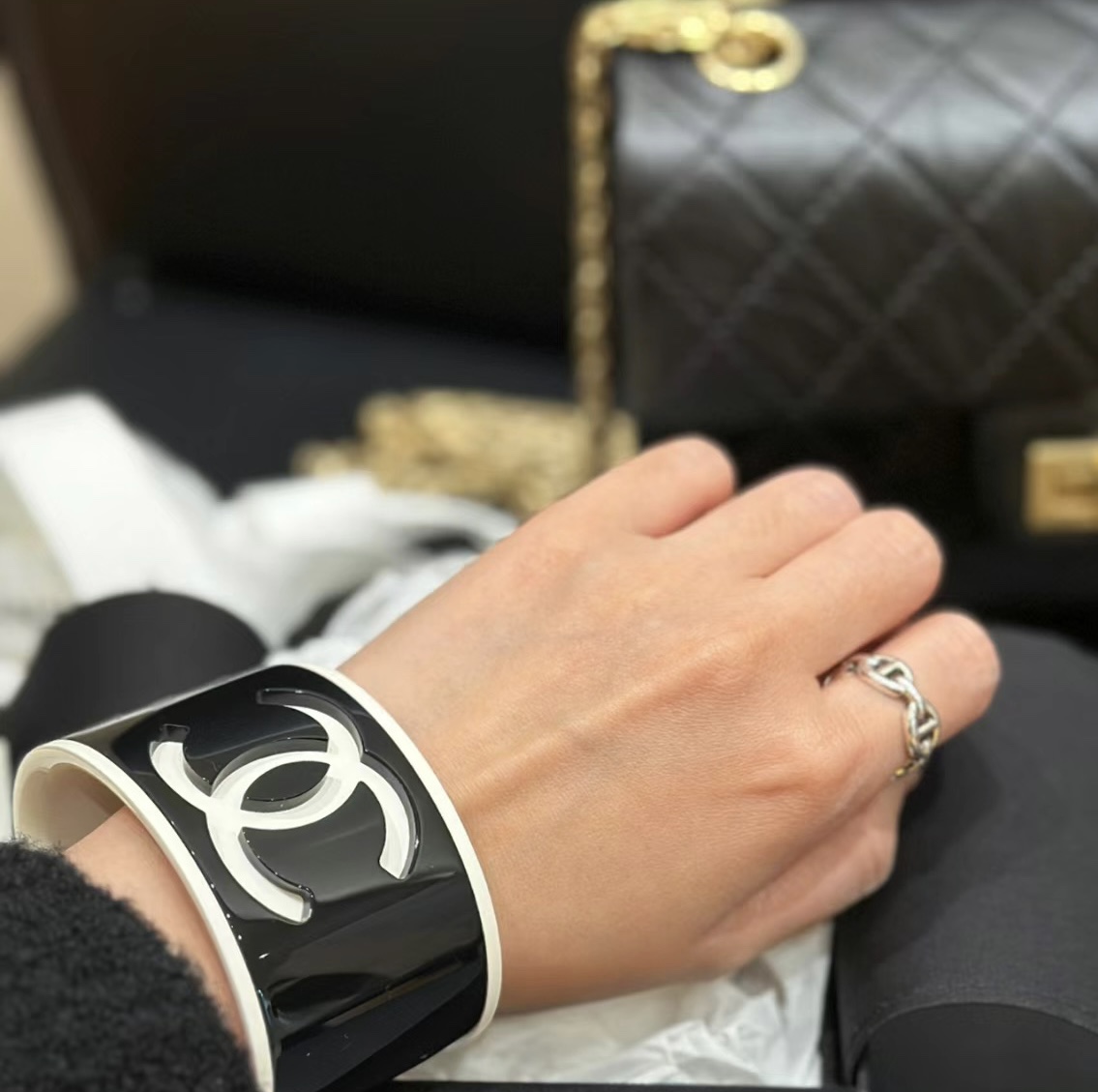 可以说真的是万人求的天花板亚克力手镯,经典的黑白配色!超级百搭,颜值yyds,很复古!我们家出品形状真的太太太太正了!首先我们家出品整个形状是非常饱满立体的,两侧弧度是鼓起来的,颜色也是特别对zp调制的,市面的货我看过了整个形状跟颜色都非常low,首先形状缩水,两侧弧度是凹进去的,整个收腰的那种效果!非常没形,再者白色颜色非常的死白,一眼假!包括小某书很多佩戴图都是一眼假,所以宝宝们可以根据这两个点去看别人发的货,一眼辨别!认准我们家出品!只对标zp。