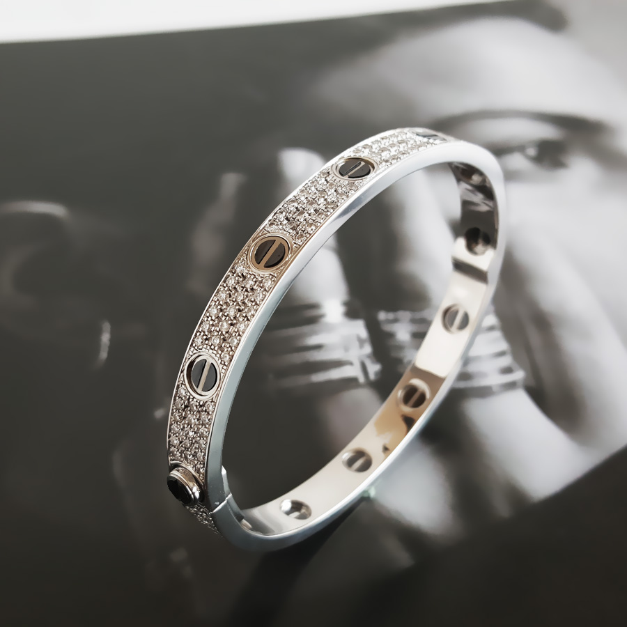【天然正品】AU750白金时尚简约高定定制款宽版满天星群镶钻石手镯18号(皆取最大值)280226NJS26