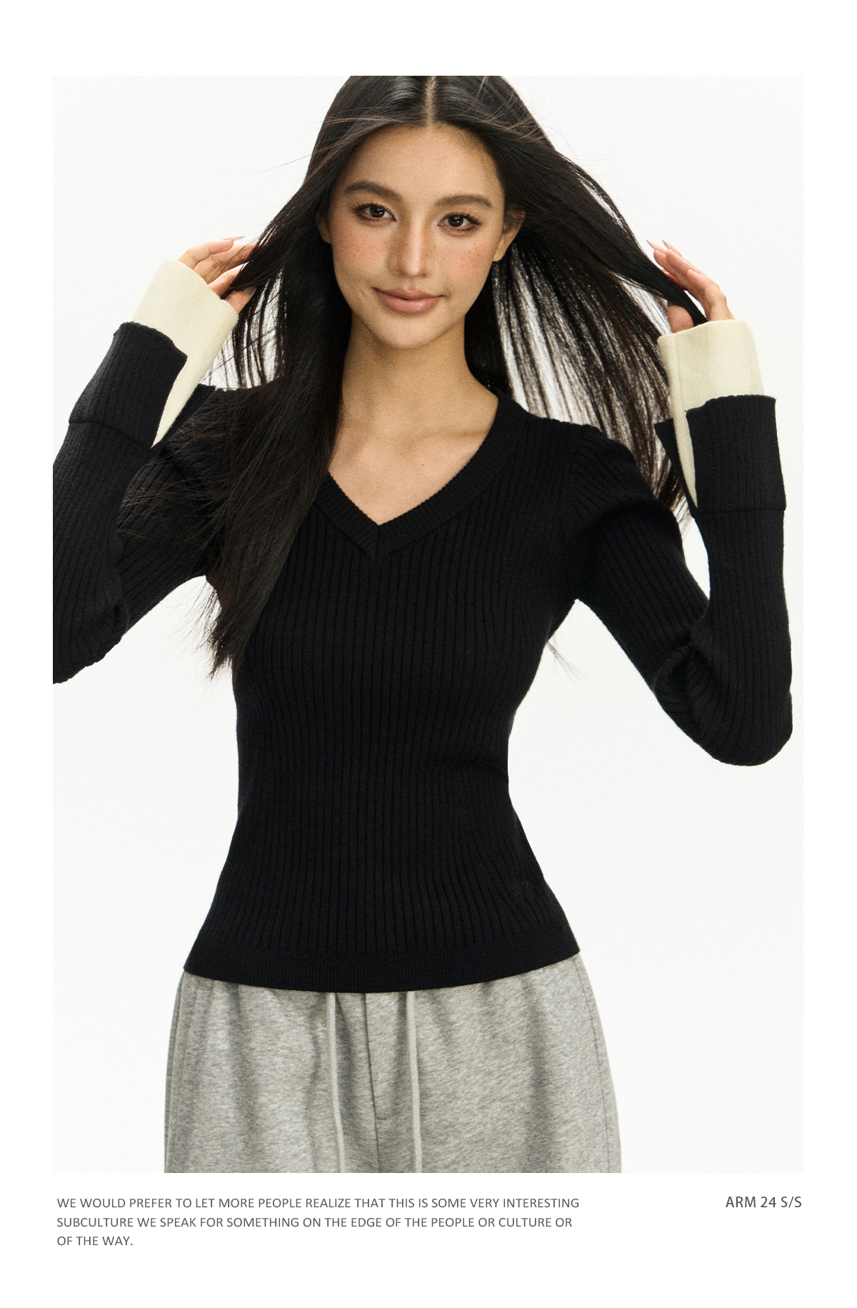 Ariseism 美式复古V领长袖针织衫女2025秋季新款辣妹内搭打底上衣