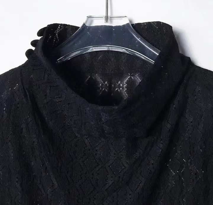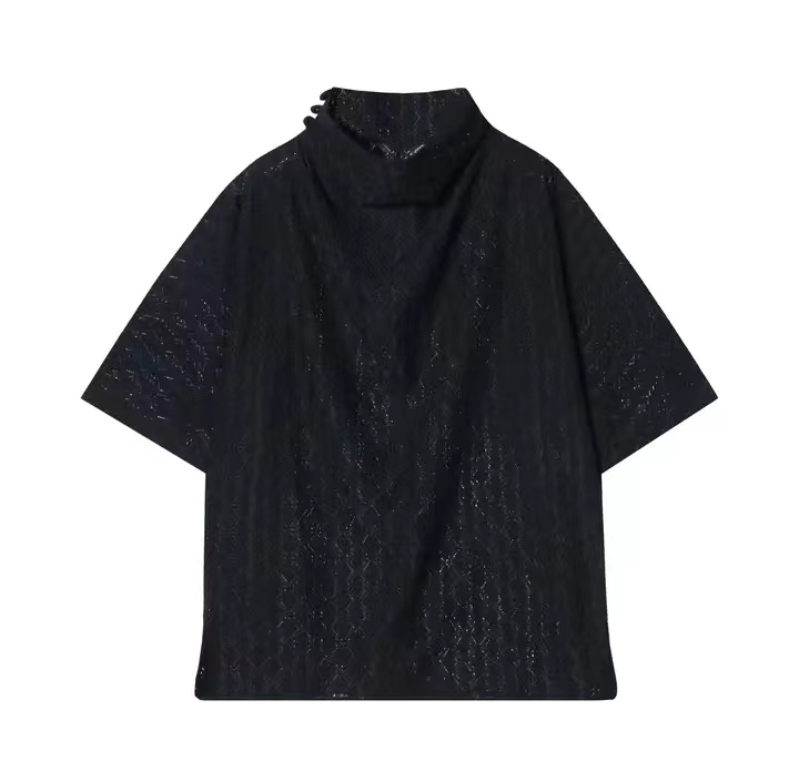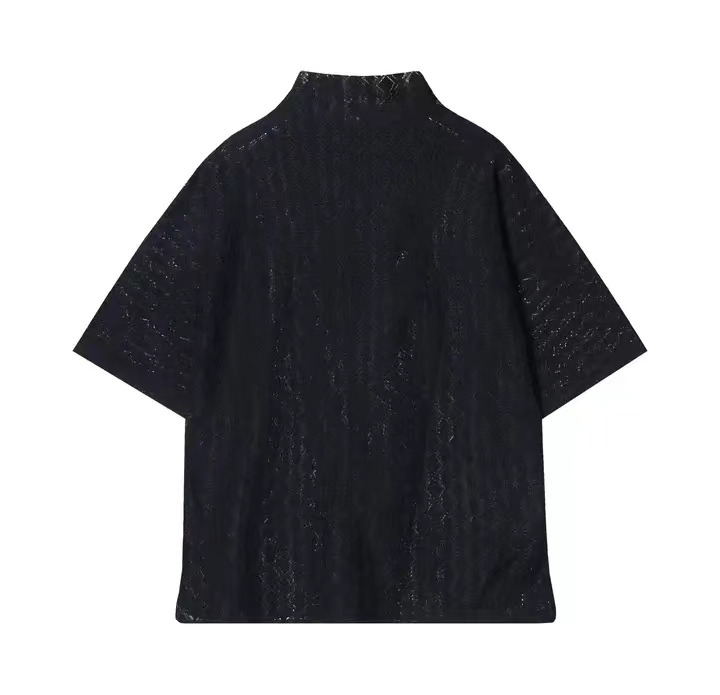 T1186新款黑色高领镂空男士短袖百搭潮流宽松上衣时尚休闲复古T恤