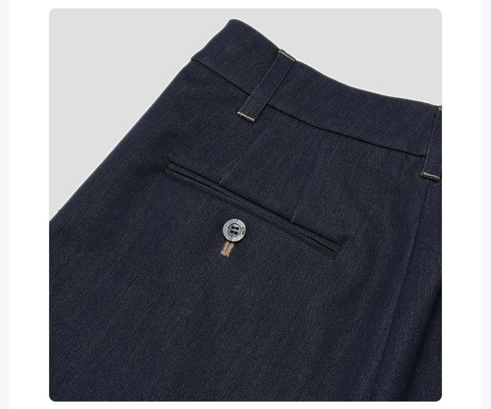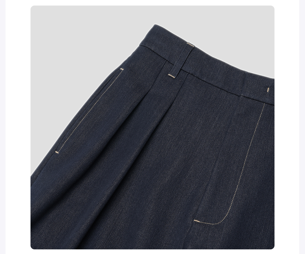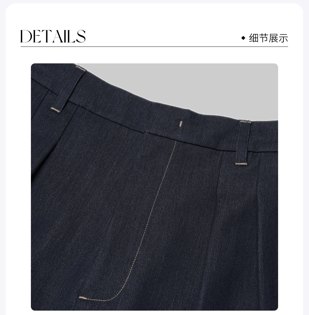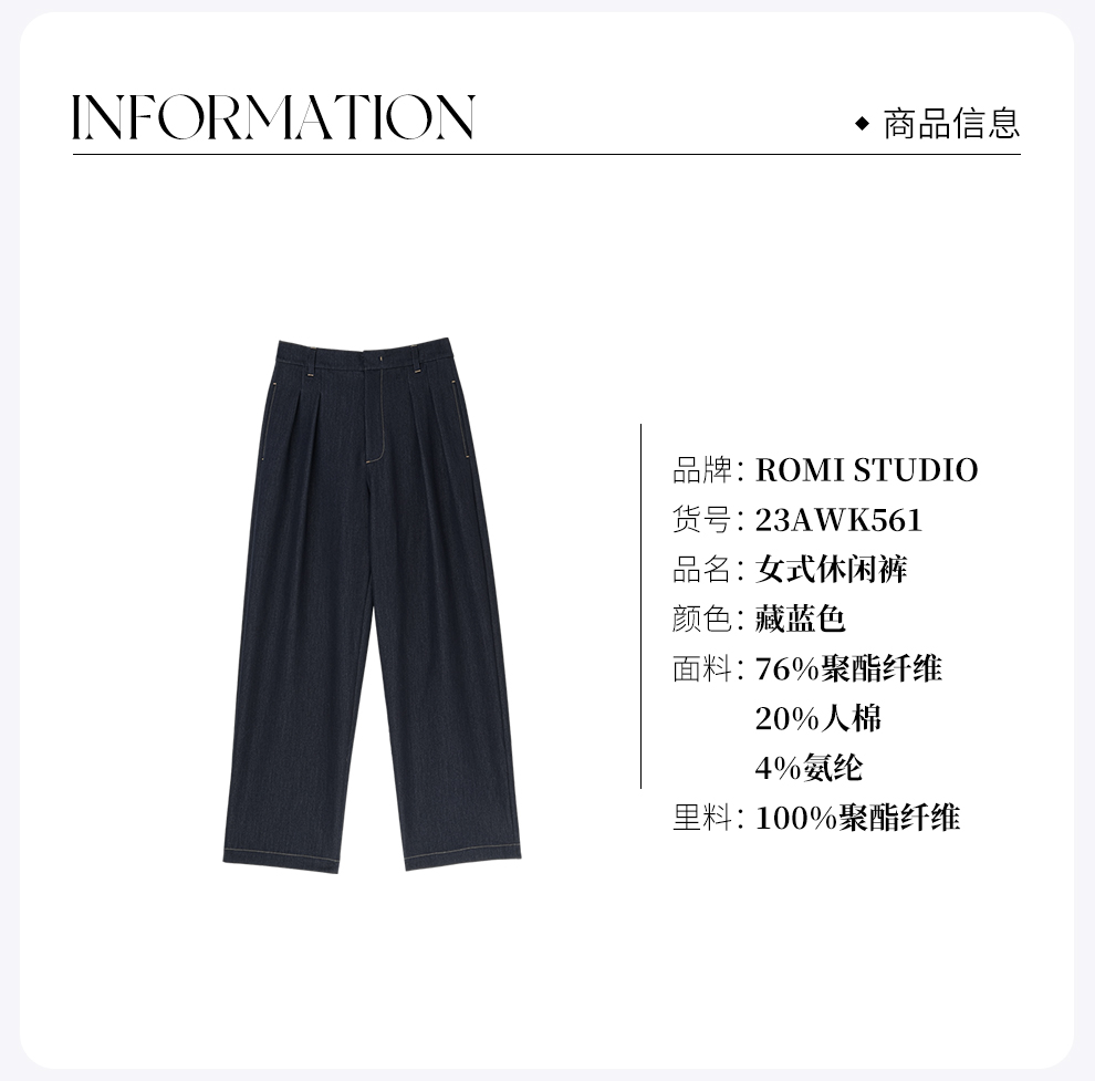 ROMI STUDIO“棕标系列”复古撞色高腰直筒牛仔藏蓝色西裤23AWK561
