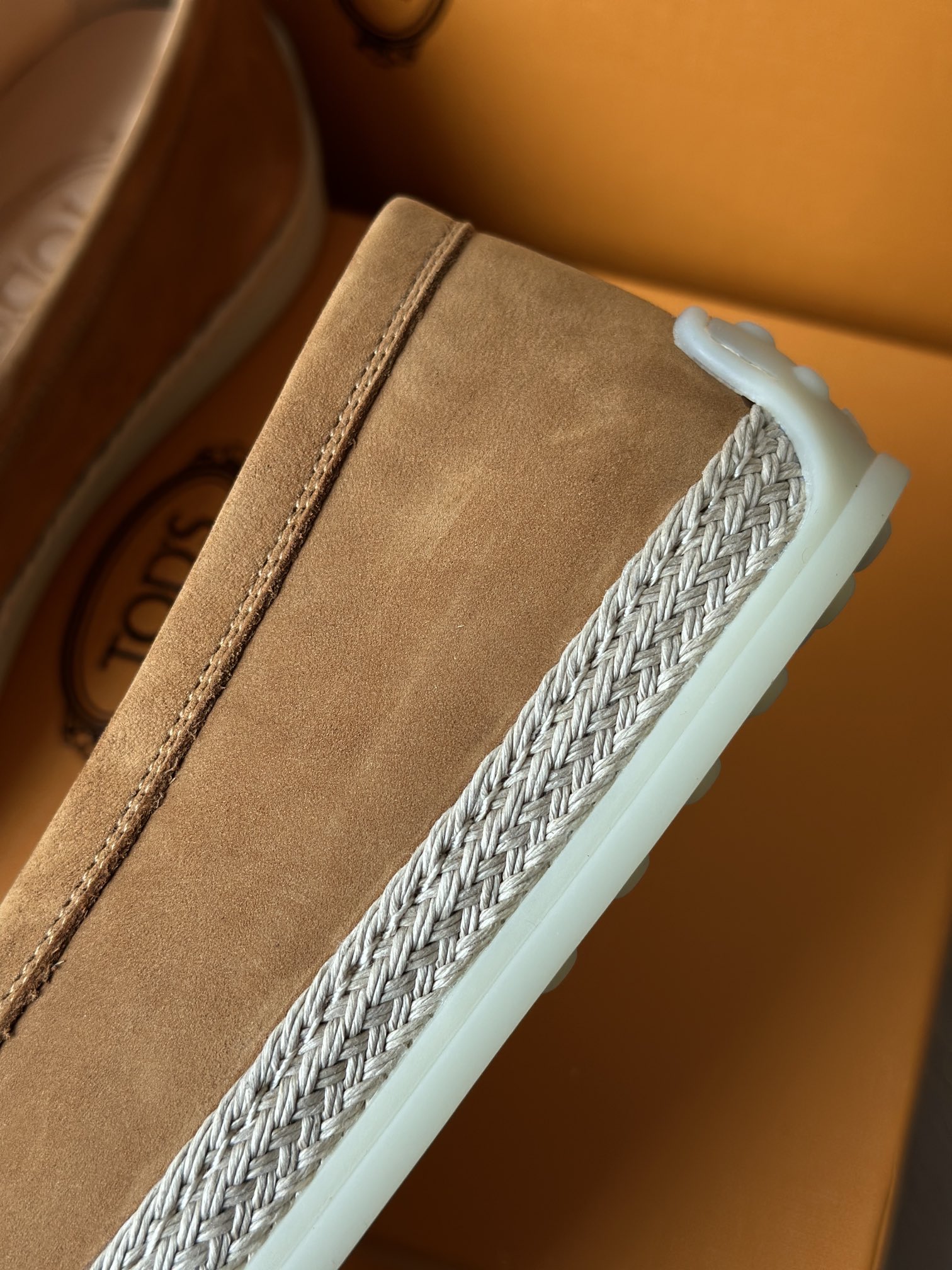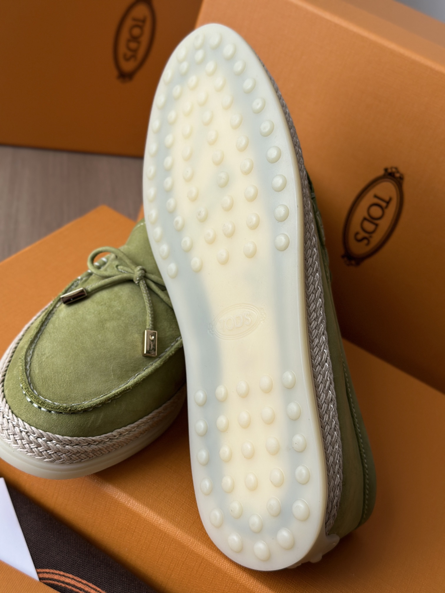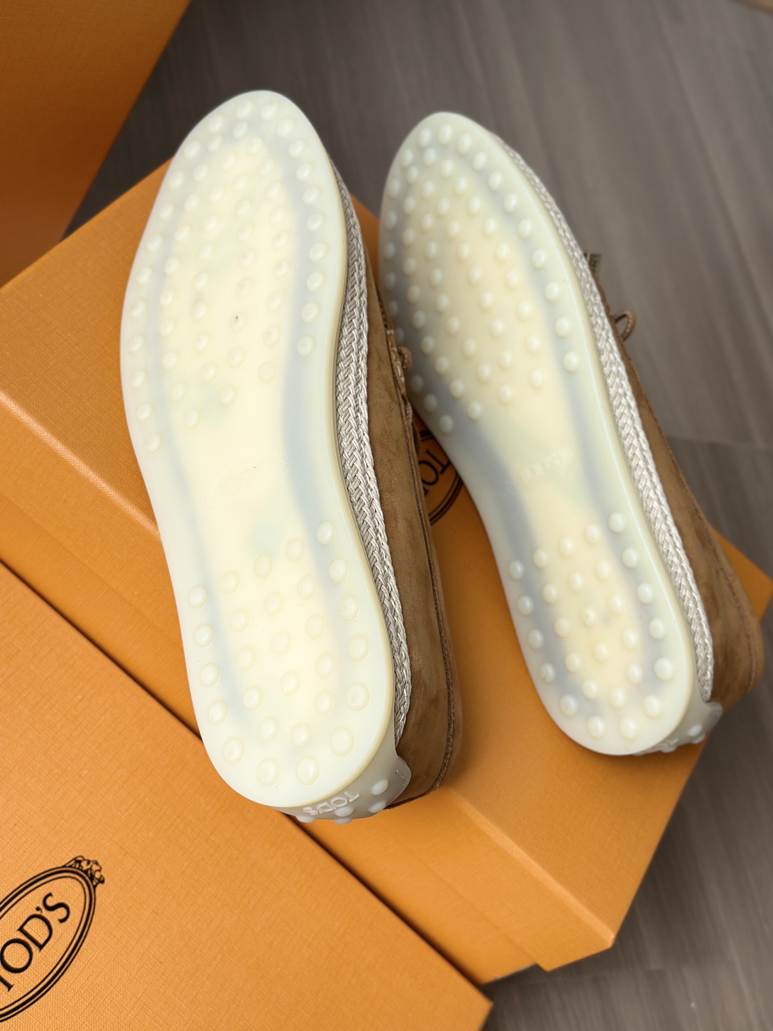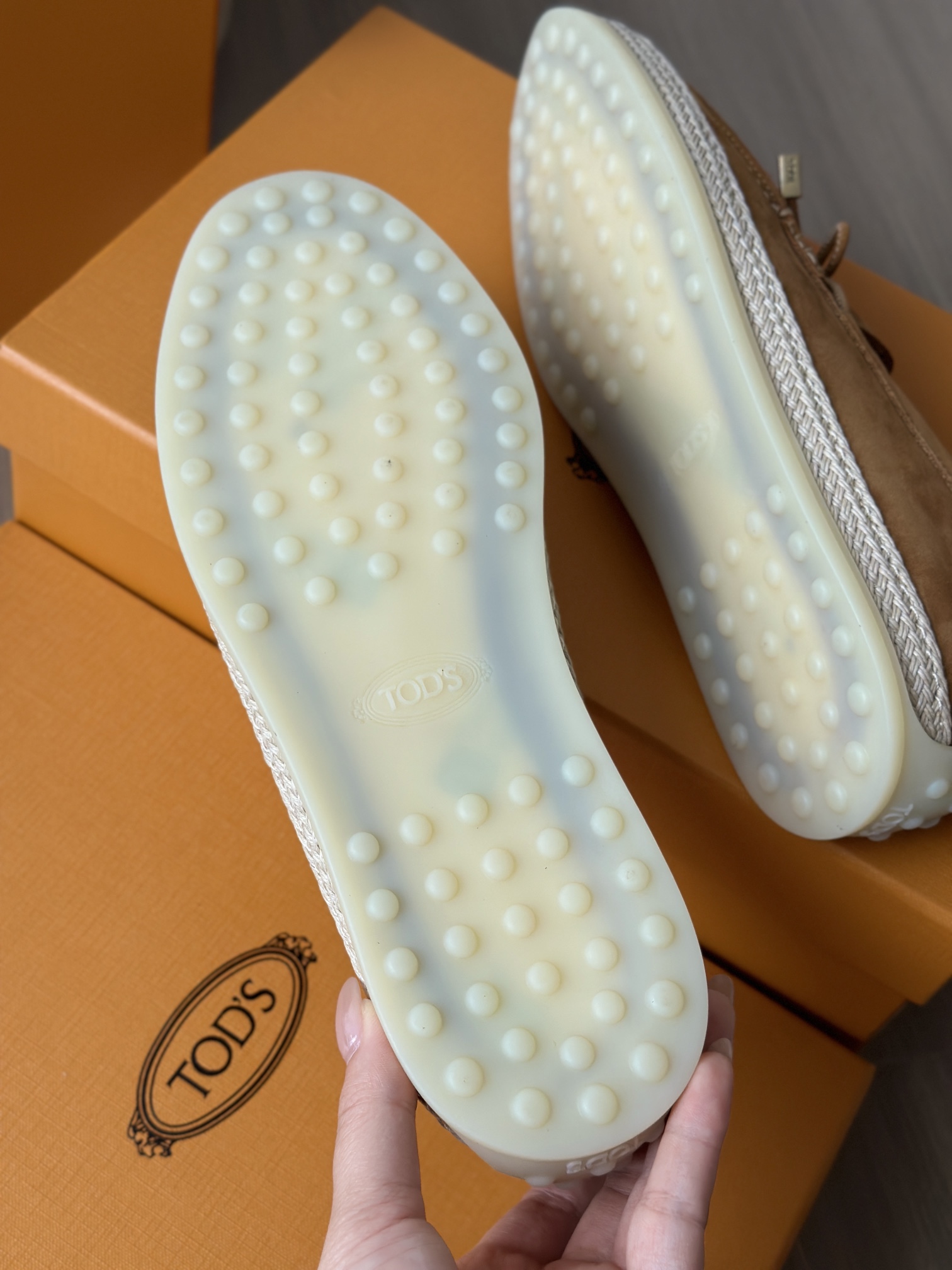 Tods独家生胶豆豆大底 看似挺硬的鞋底,实则轻便柔软,捏在手上都能感受到柔软和Q弹!上脚也是更是意外的轻盈,让穿上它的脚感,来的更舒适好穿