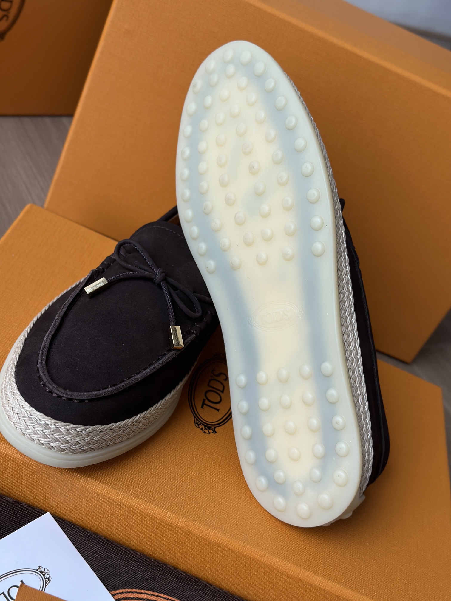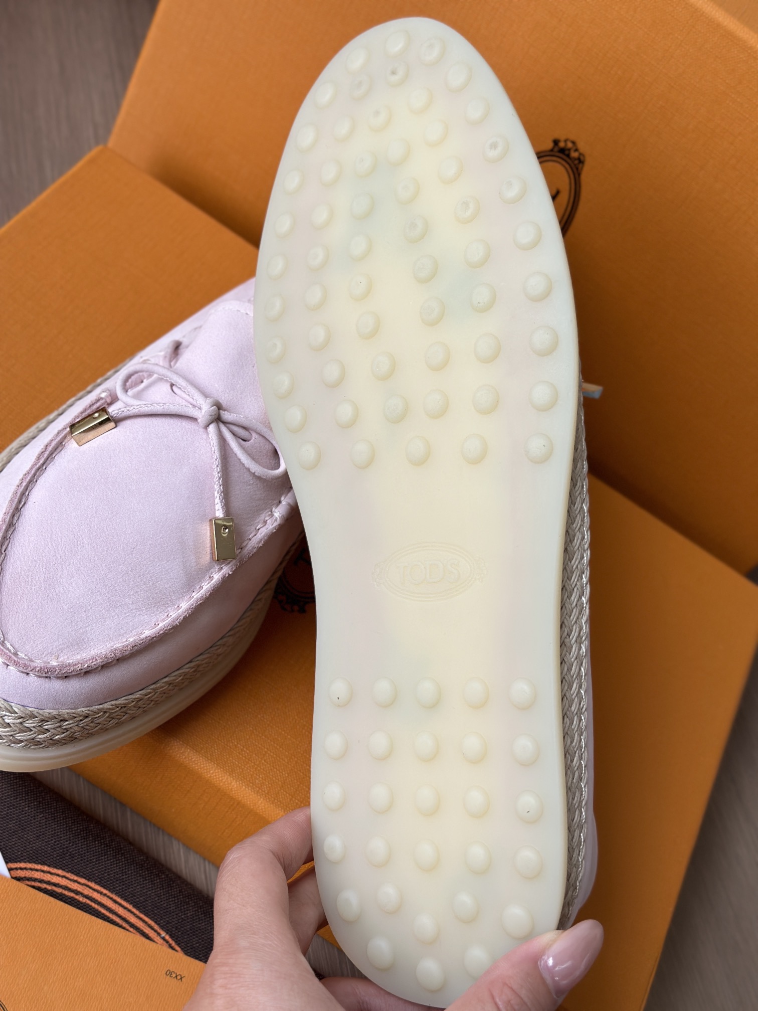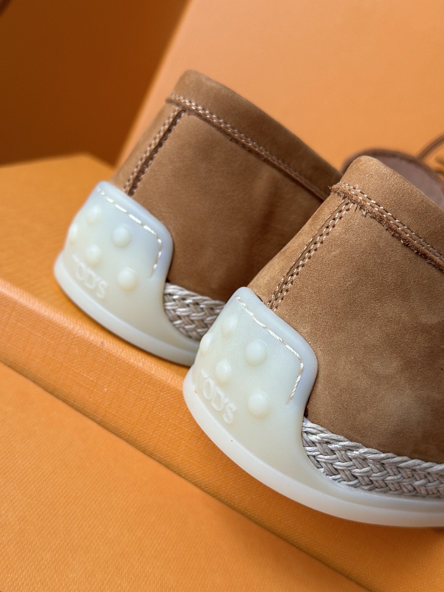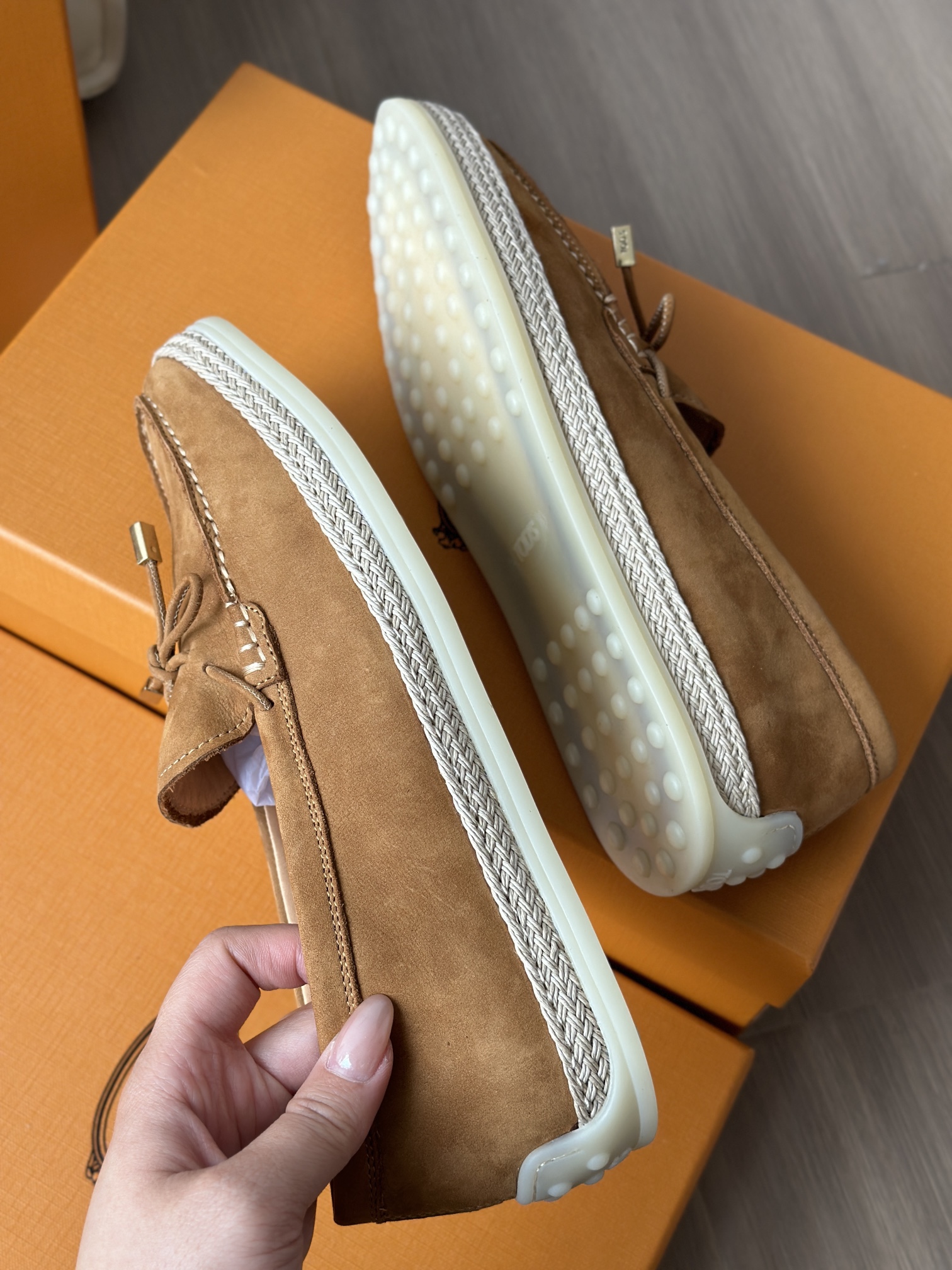 Tods独家生胶豆豆大底 看似挺硬的鞋底,实则轻便柔软,捏在手上都能感受到柔软和Q弹!上脚也是更是意外的轻盈,让穿上它的脚感,来的更舒适好穿