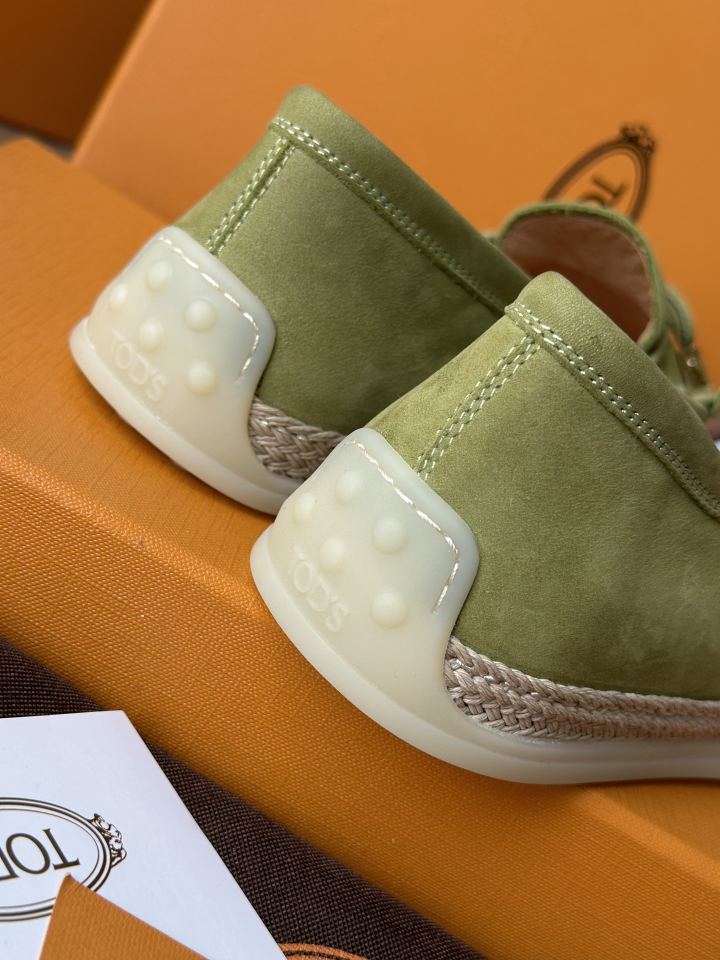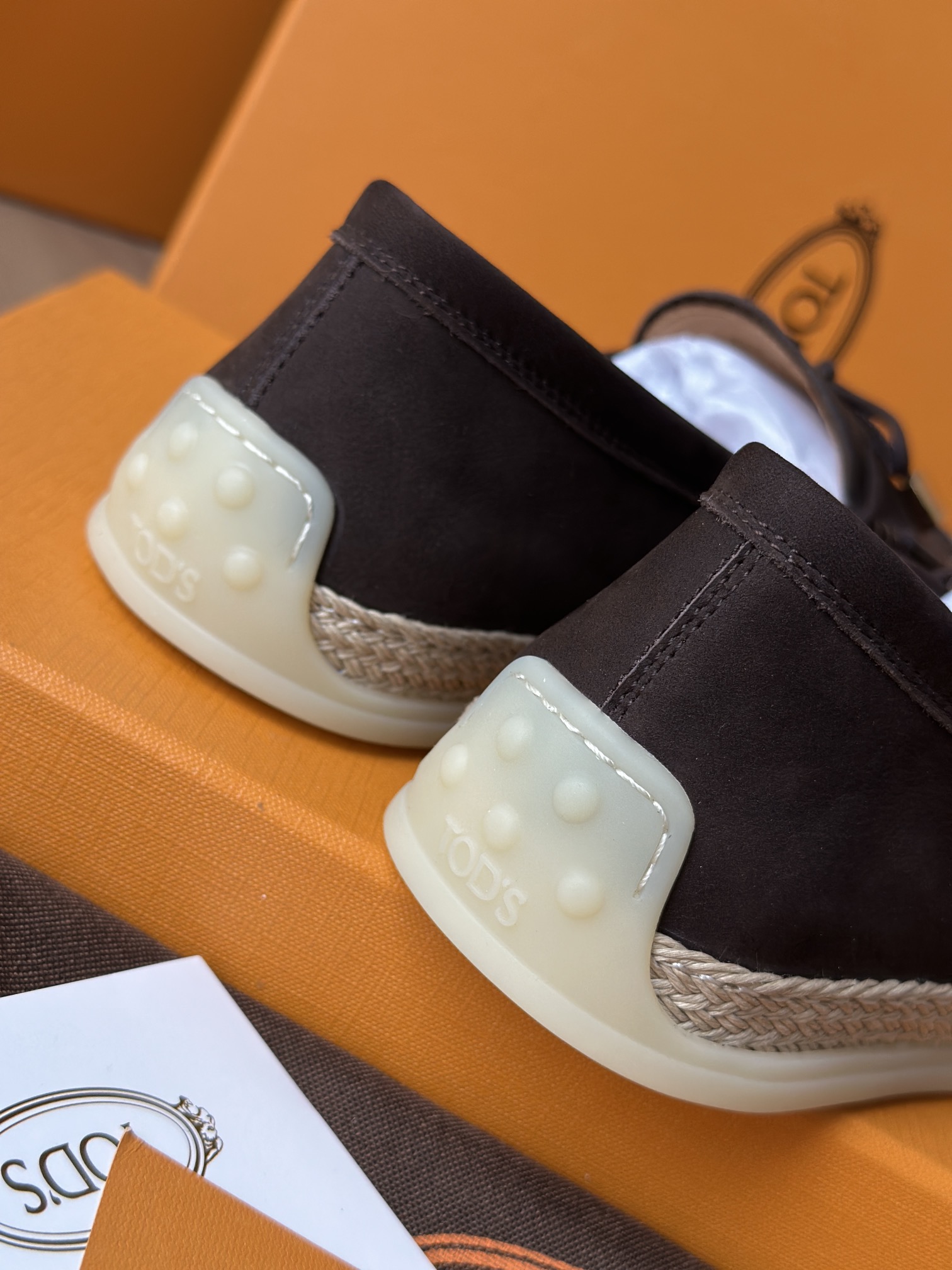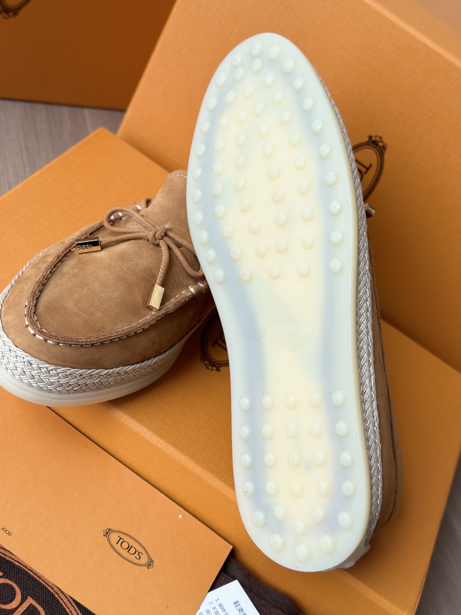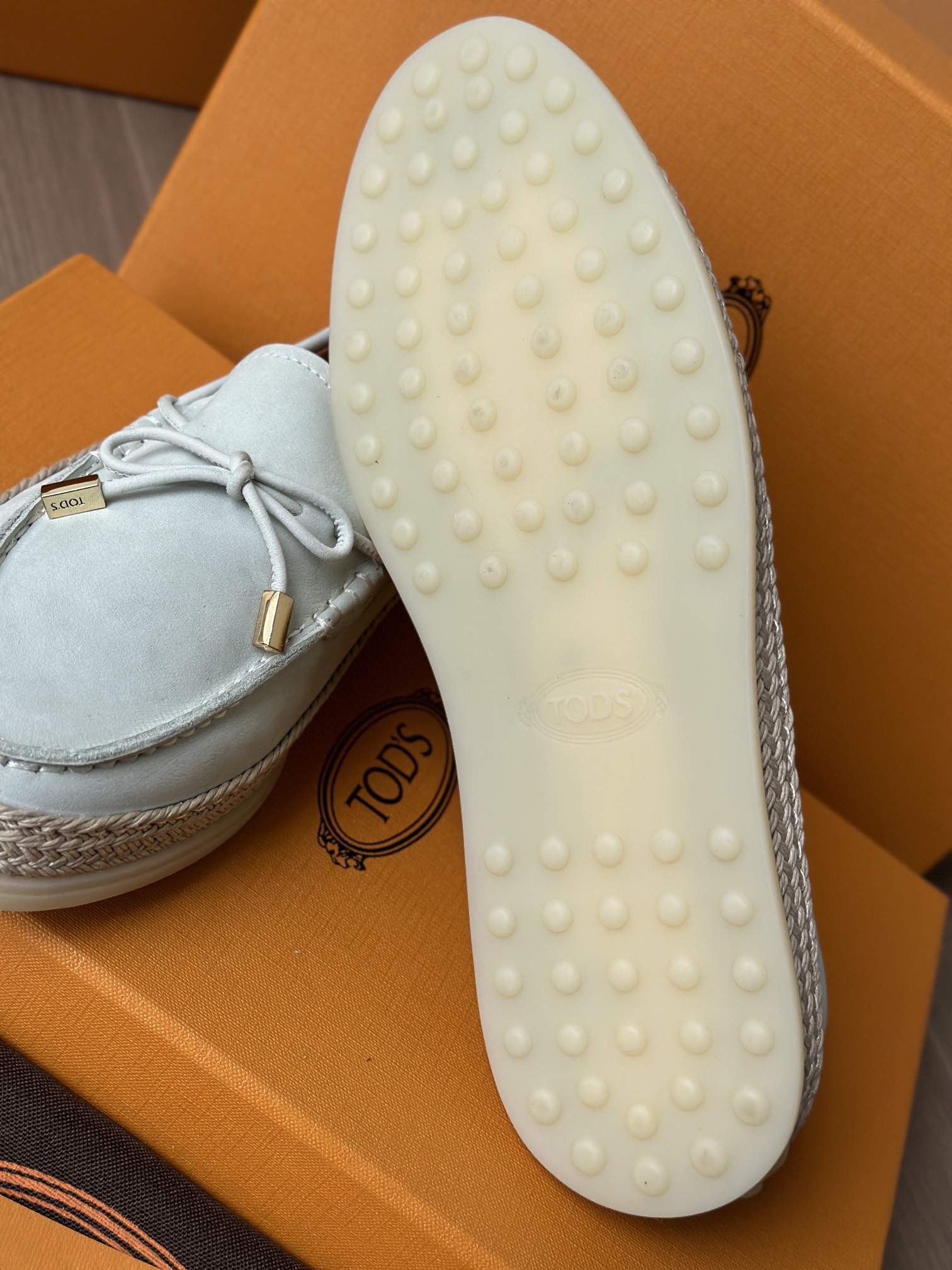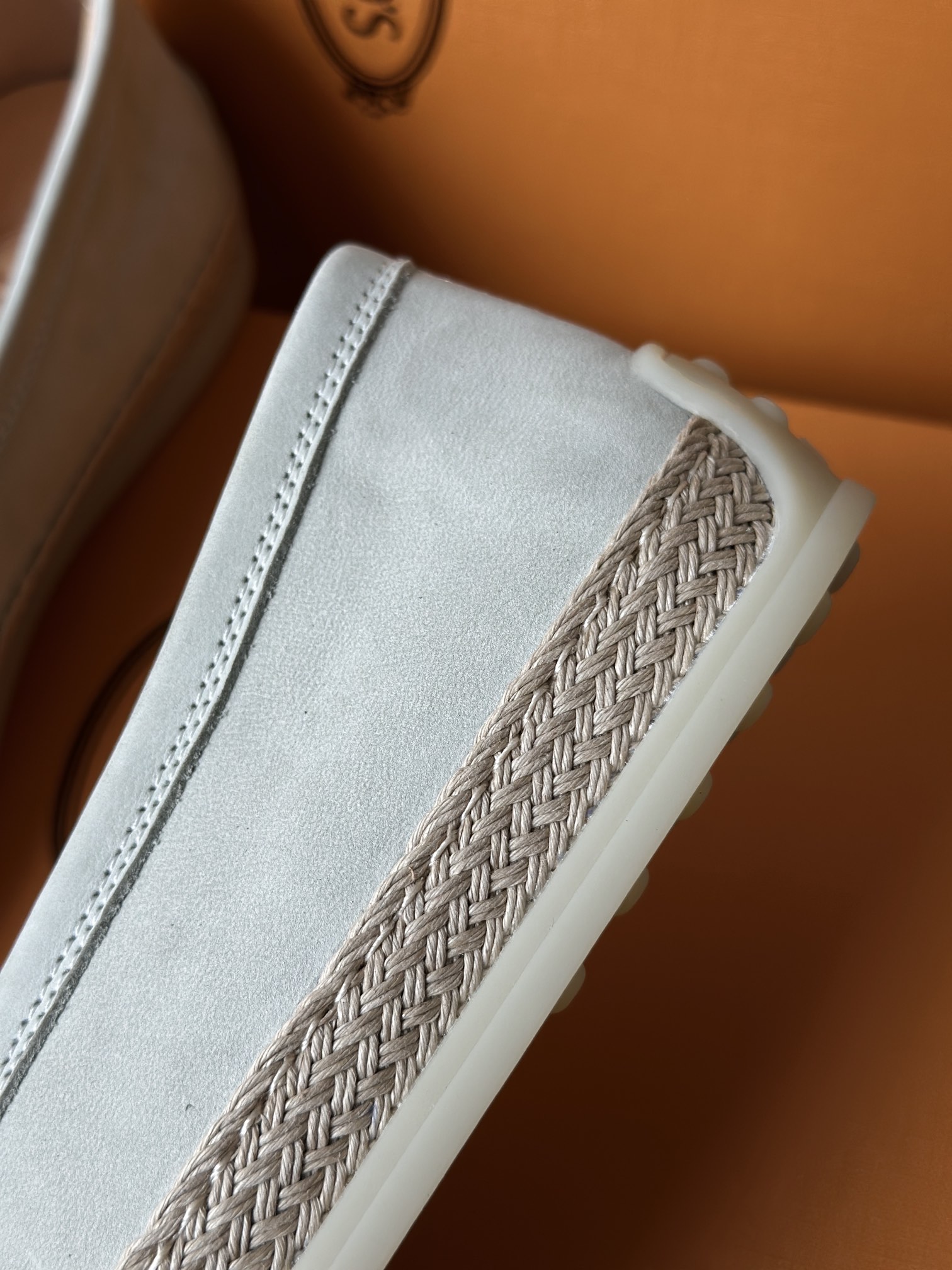 Tods独家生胶豆豆大底 看似挺硬的鞋底,实则轻便柔软,捏在手上都能感受到柔软和Q弹!上脚也是更是意外的轻盈,让穿上它的脚感,来的更舒适好穿