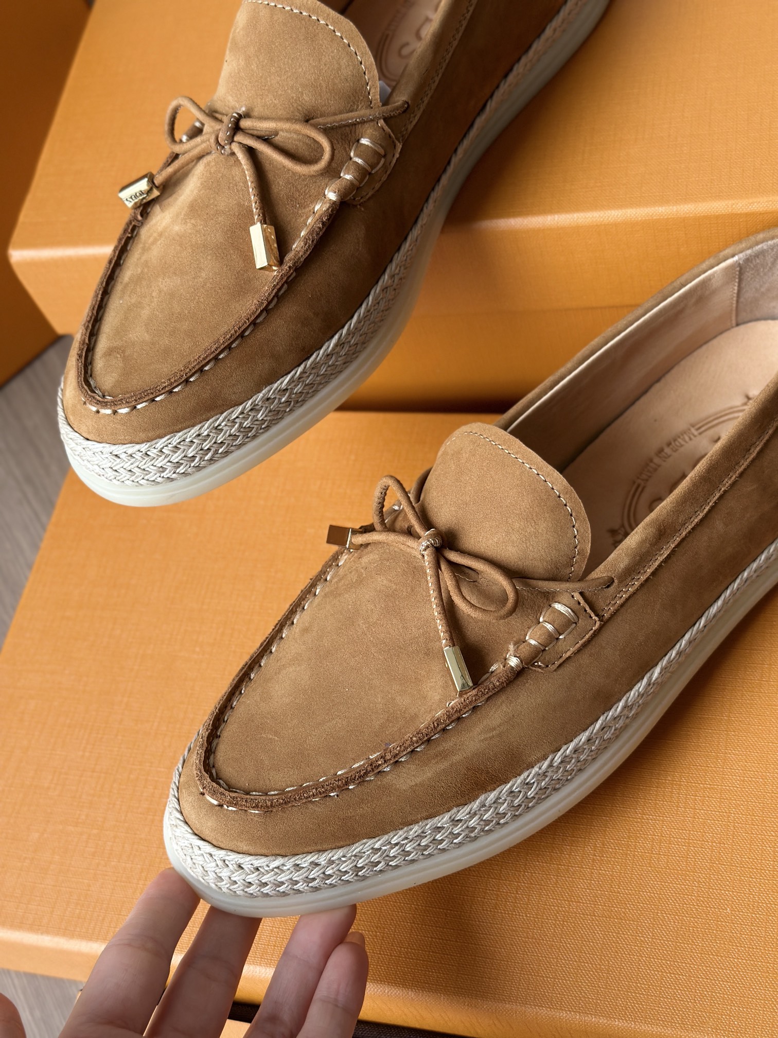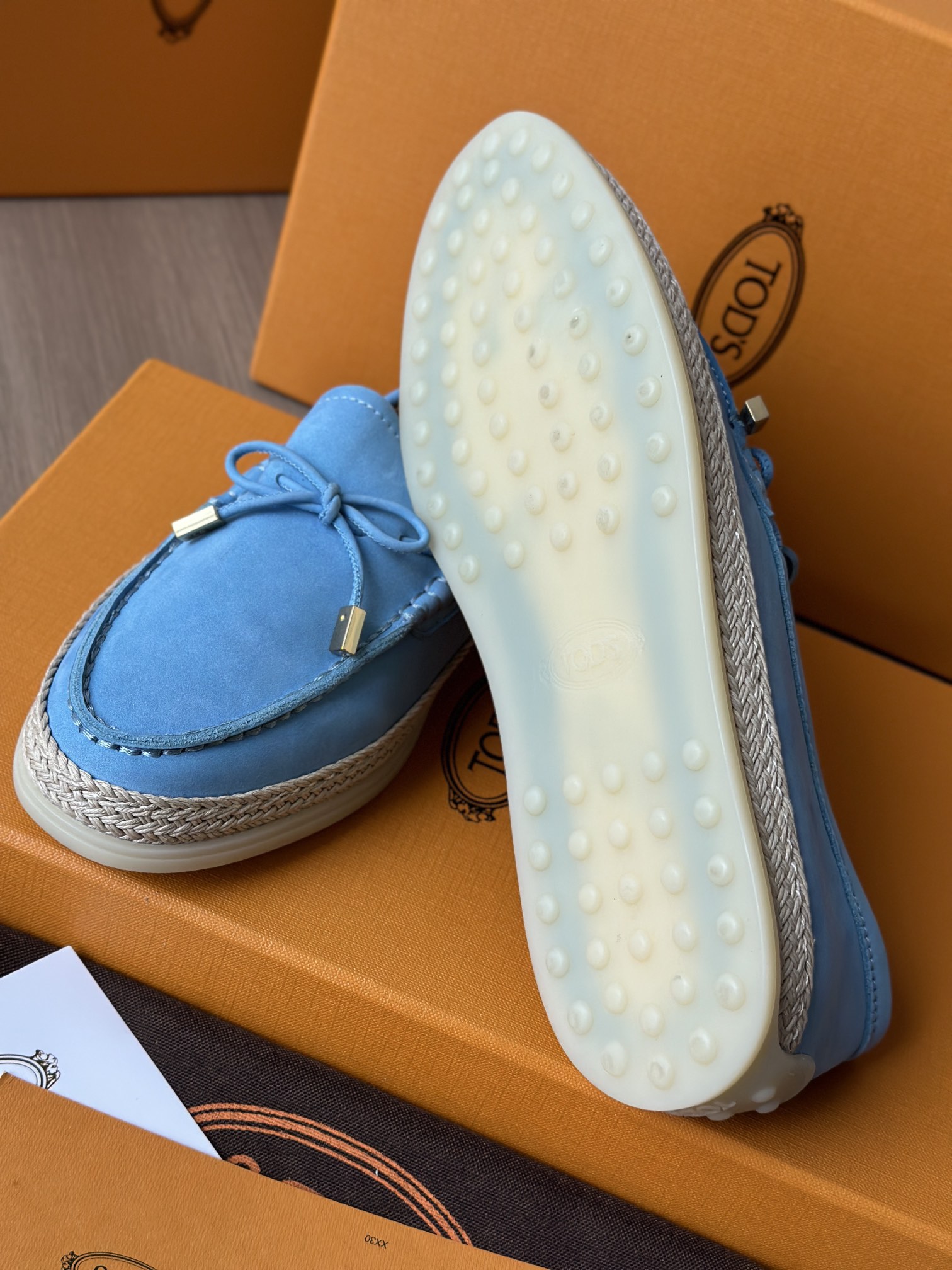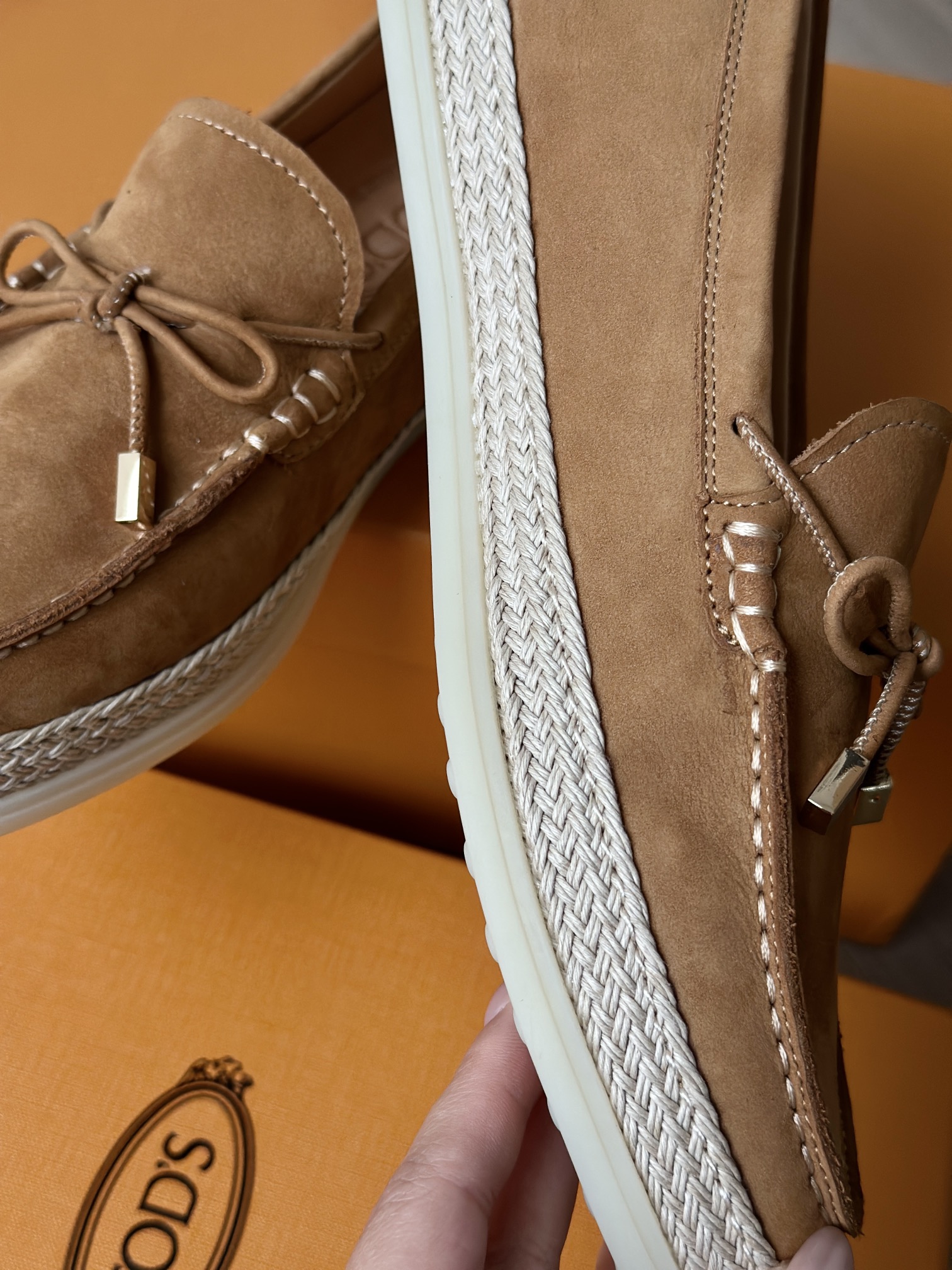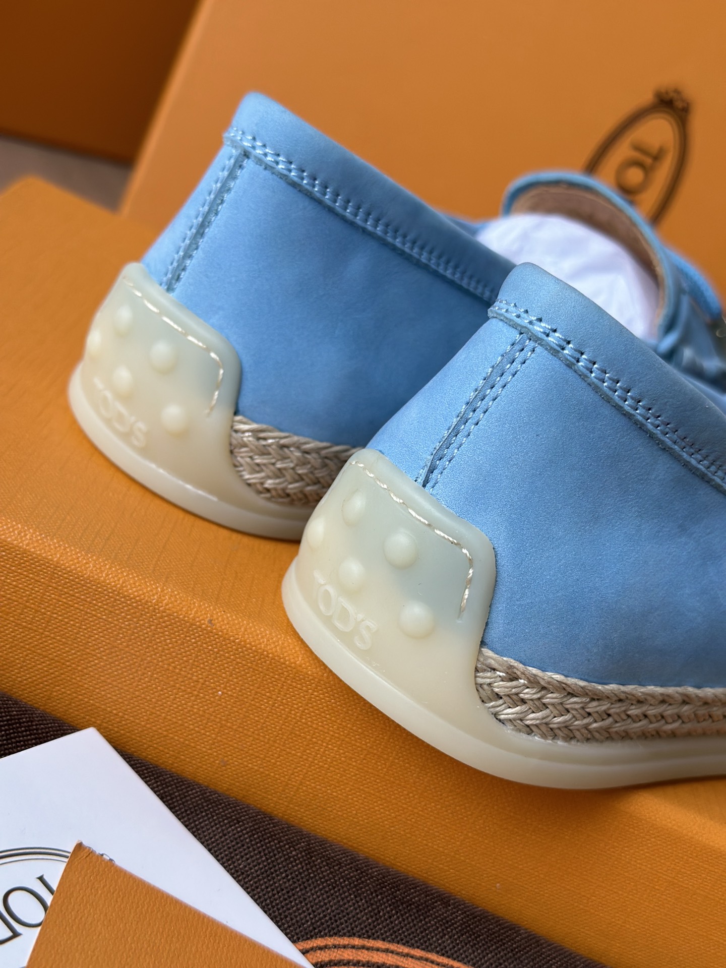 Tods独家生胶豆豆大底 看似挺硬的鞋底,实则轻便柔软,捏在手上都能感受到柔软和Q弹!上脚也是更是意外的轻盈,让穿上它的脚感,来的更舒适好穿