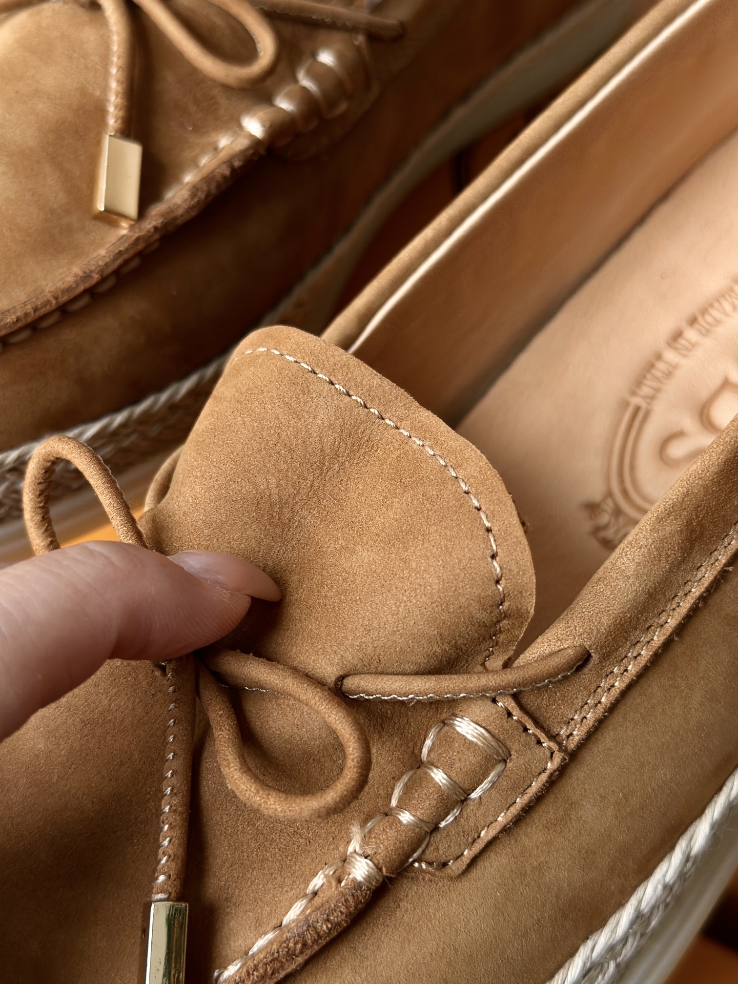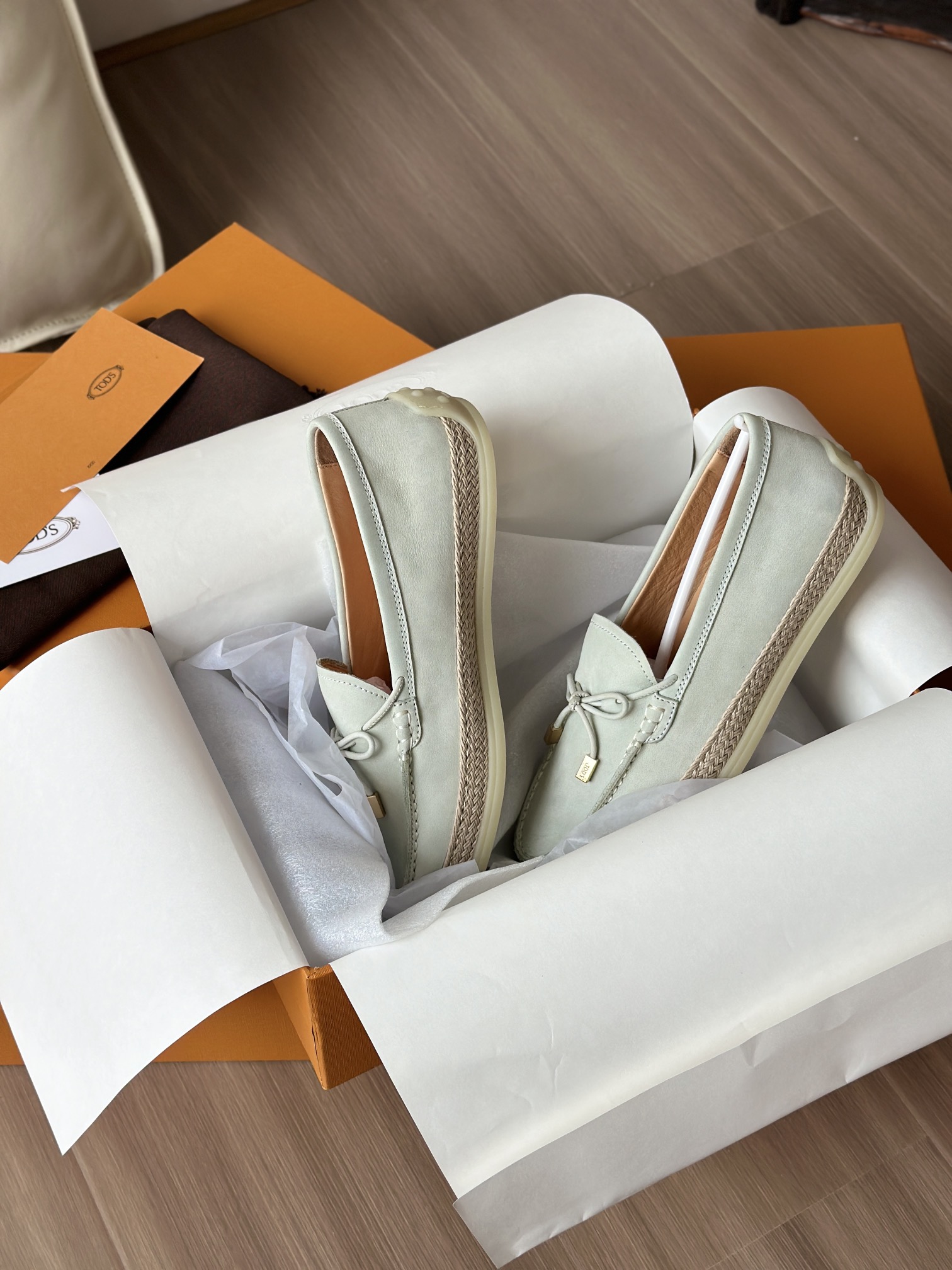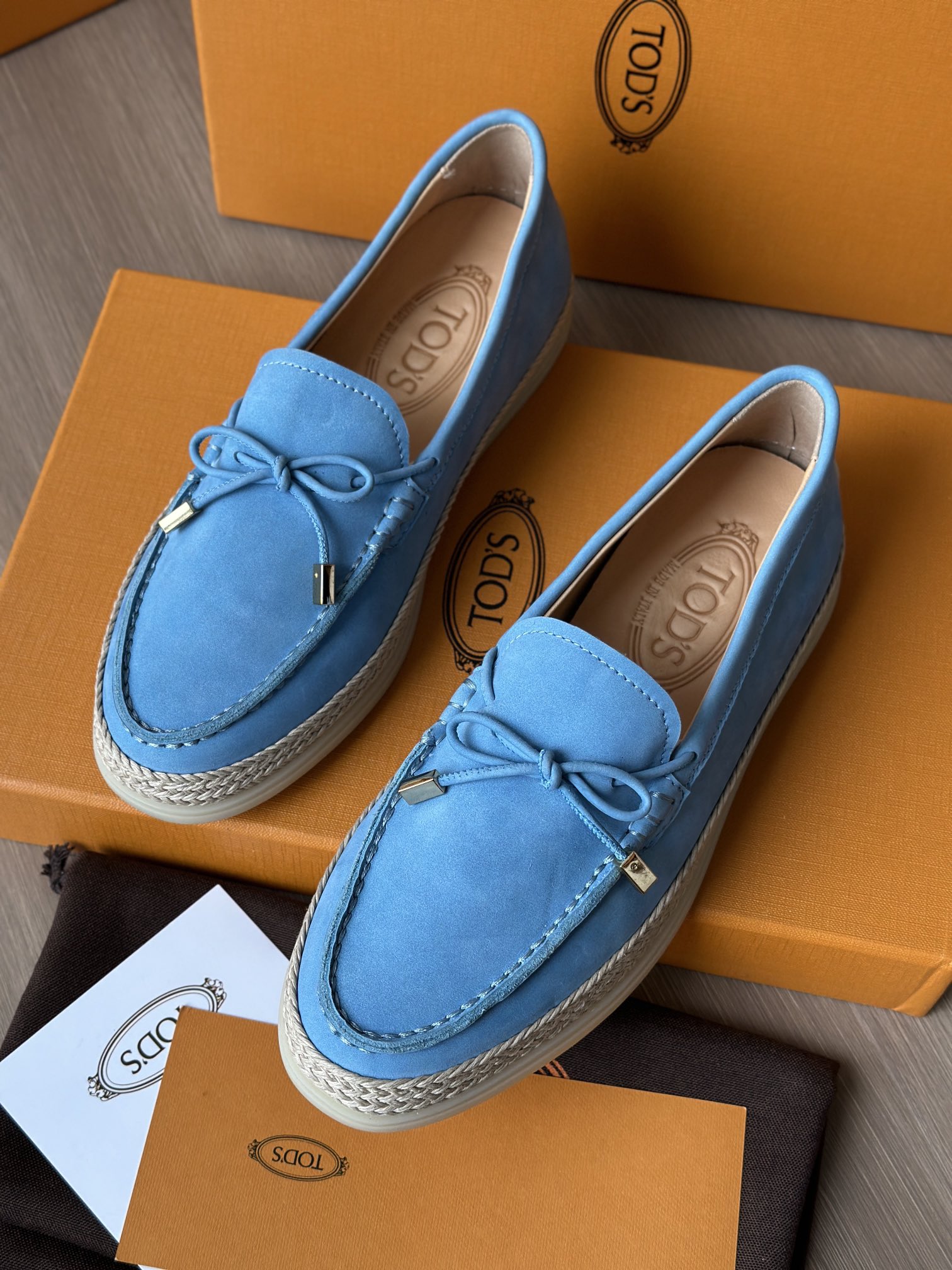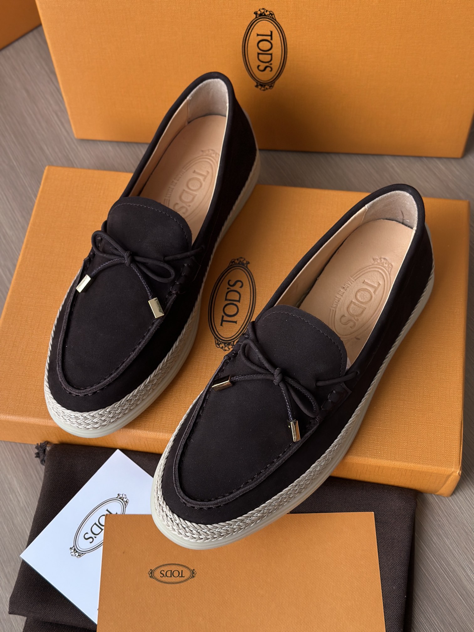Tods独家生胶豆豆大底 看似挺硬的鞋底,实则轻便柔软,捏在手上都能感受到柔软和Q弹!上脚也是更是意外的轻盈,让穿上它的脚感,来的更舒适好穿