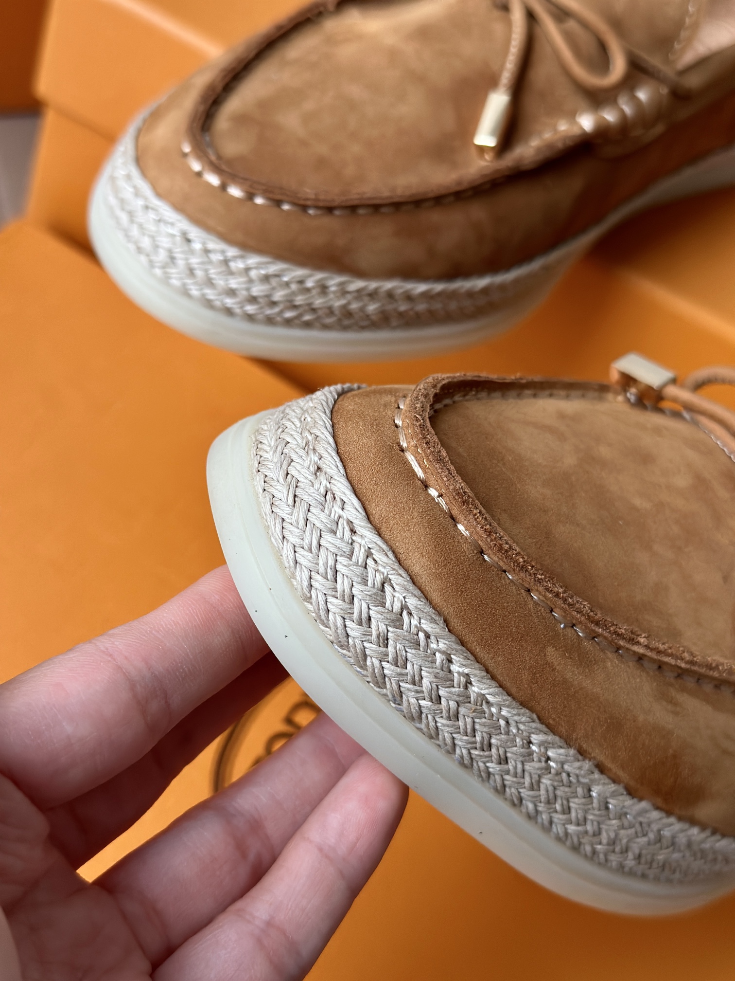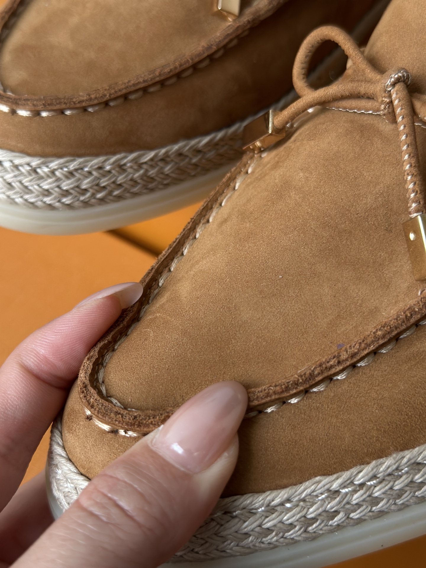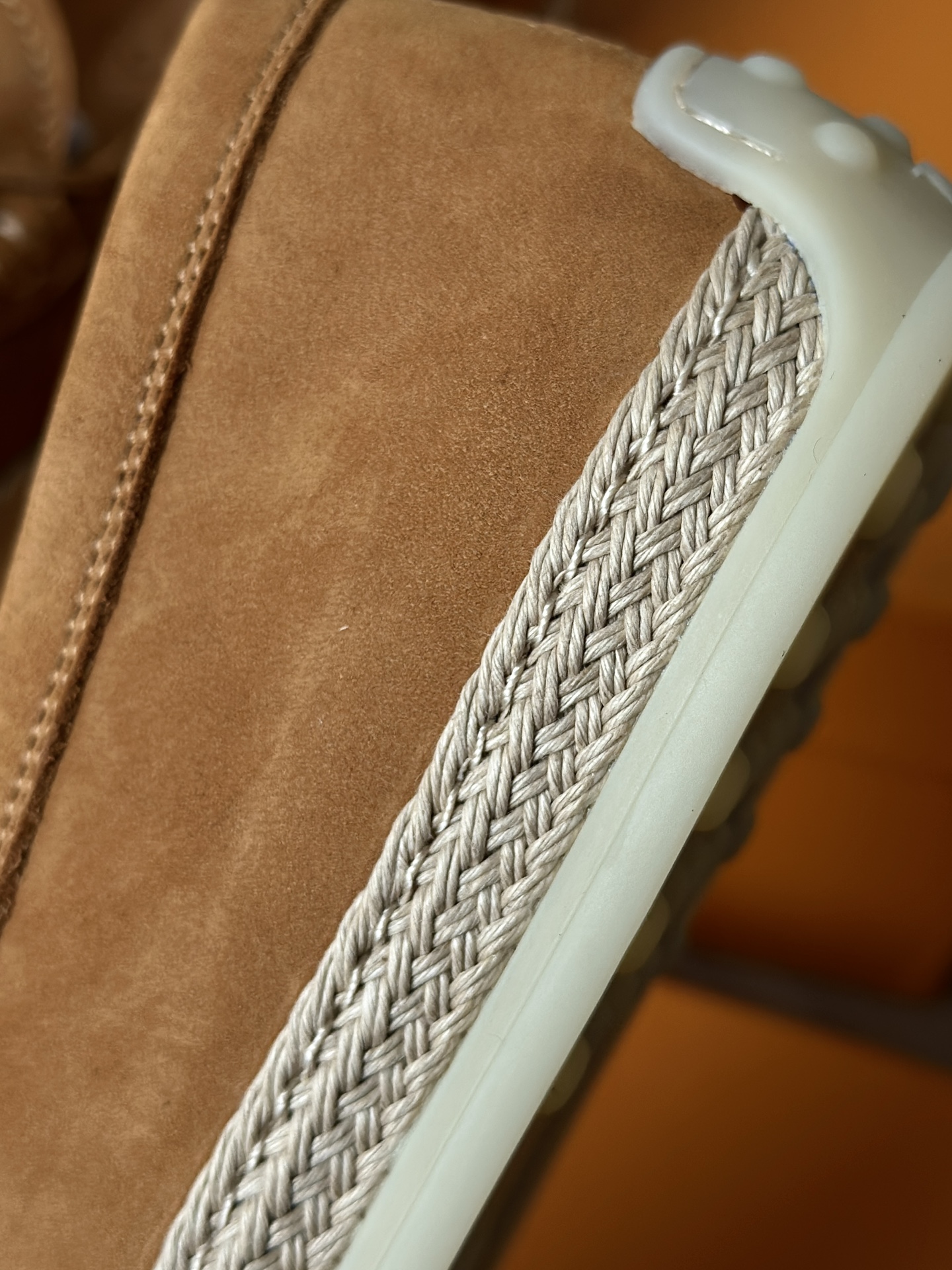 品牌指定拉菲草编织拼接中底! 交接处非常整洁!不会杂乱不堪 整体的手感是有韧性的,抗造不易坏! 也不是那种很僵尸的硬草感!
