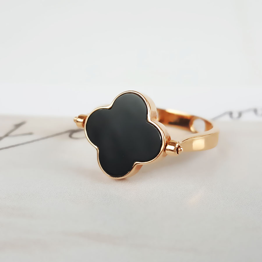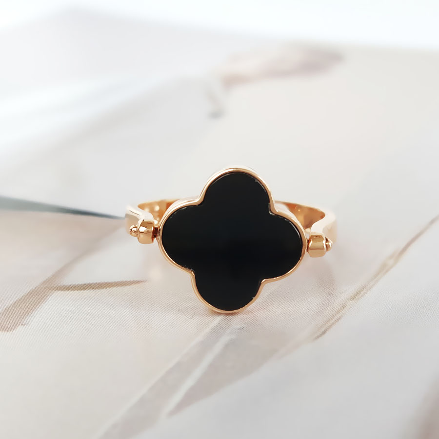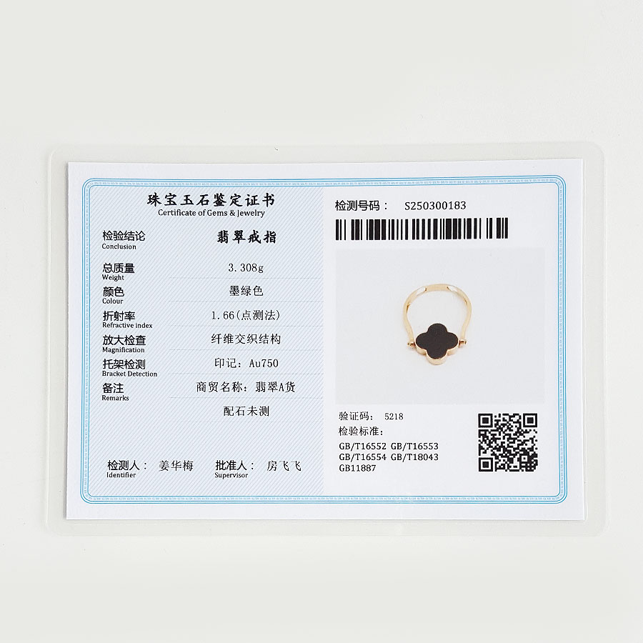 名称 | AU750黄金镶天然冰种幸运四叶草可翻转墨翠戒指 |