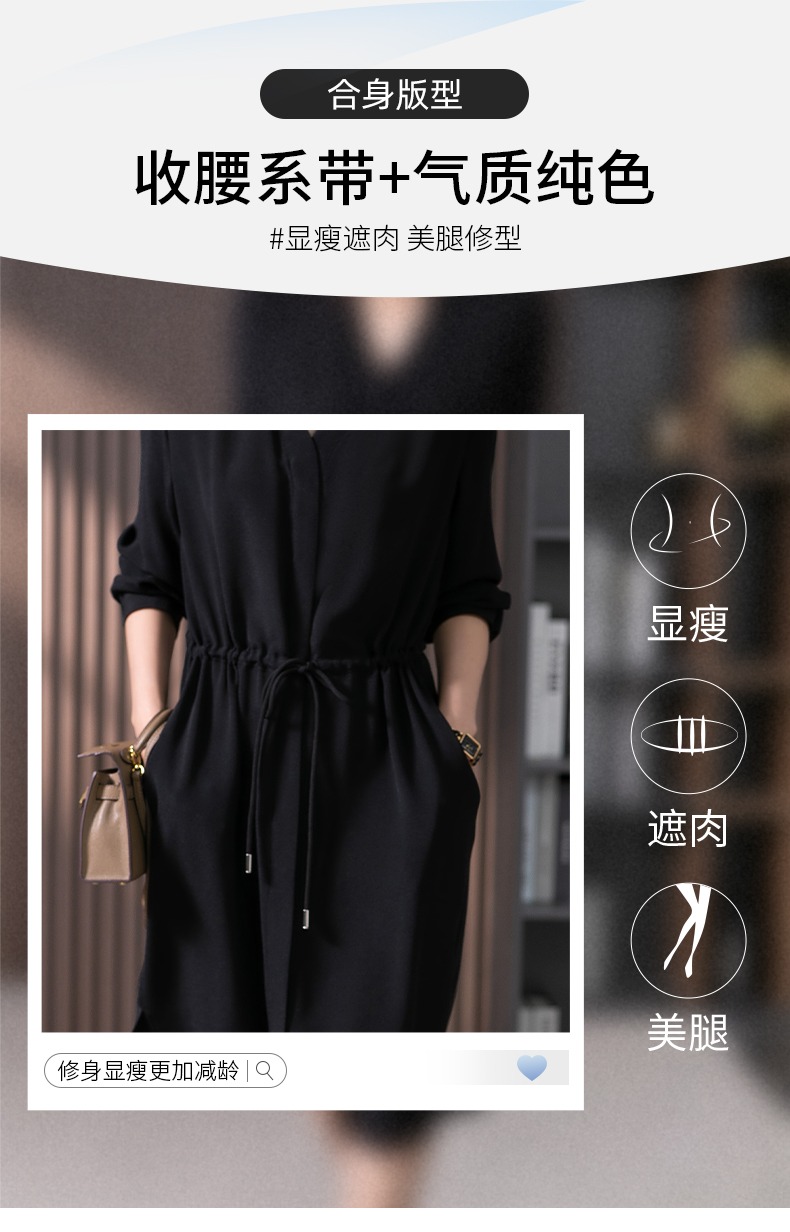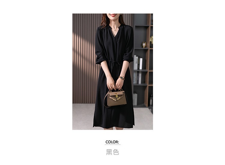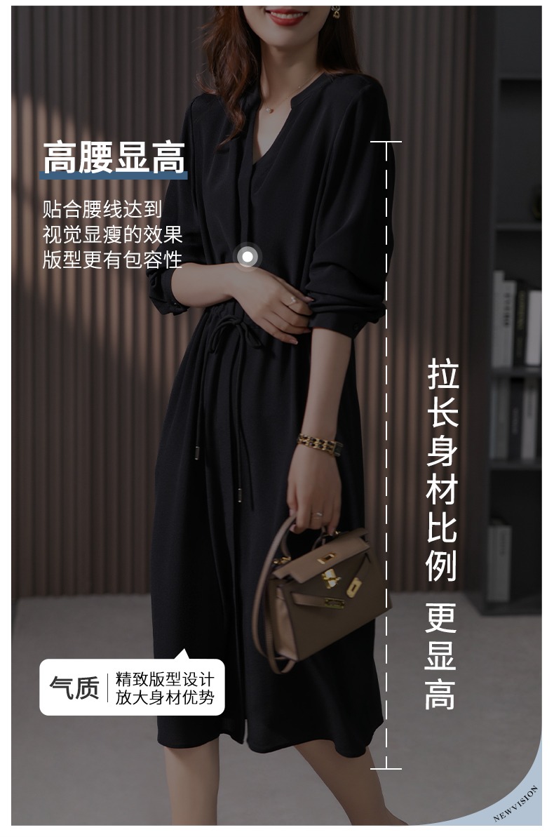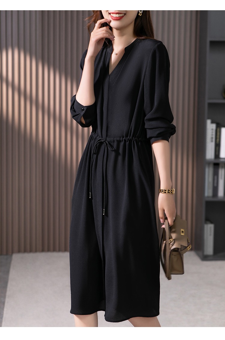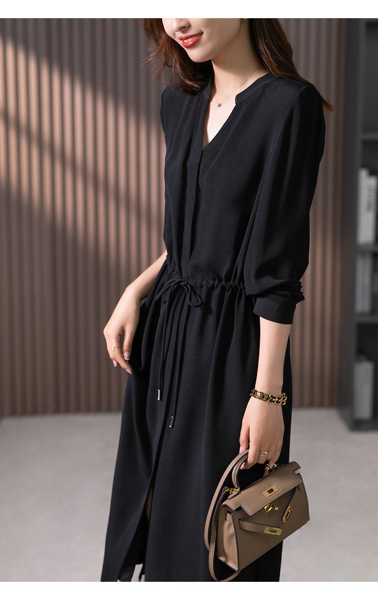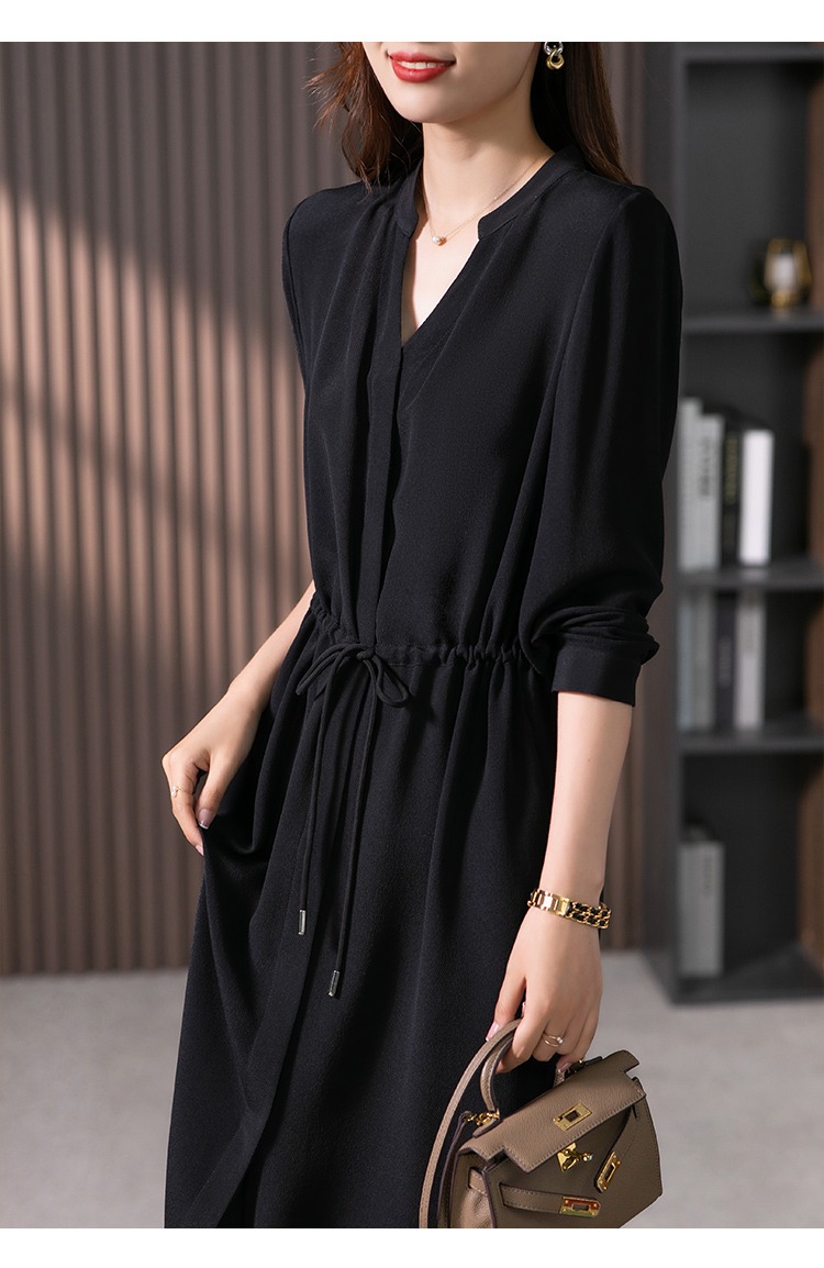 YX【现货7天】法式重磅鬼绉真丝连衣裙女2024秋季新款高级感桑蚕丝衬衫裙子