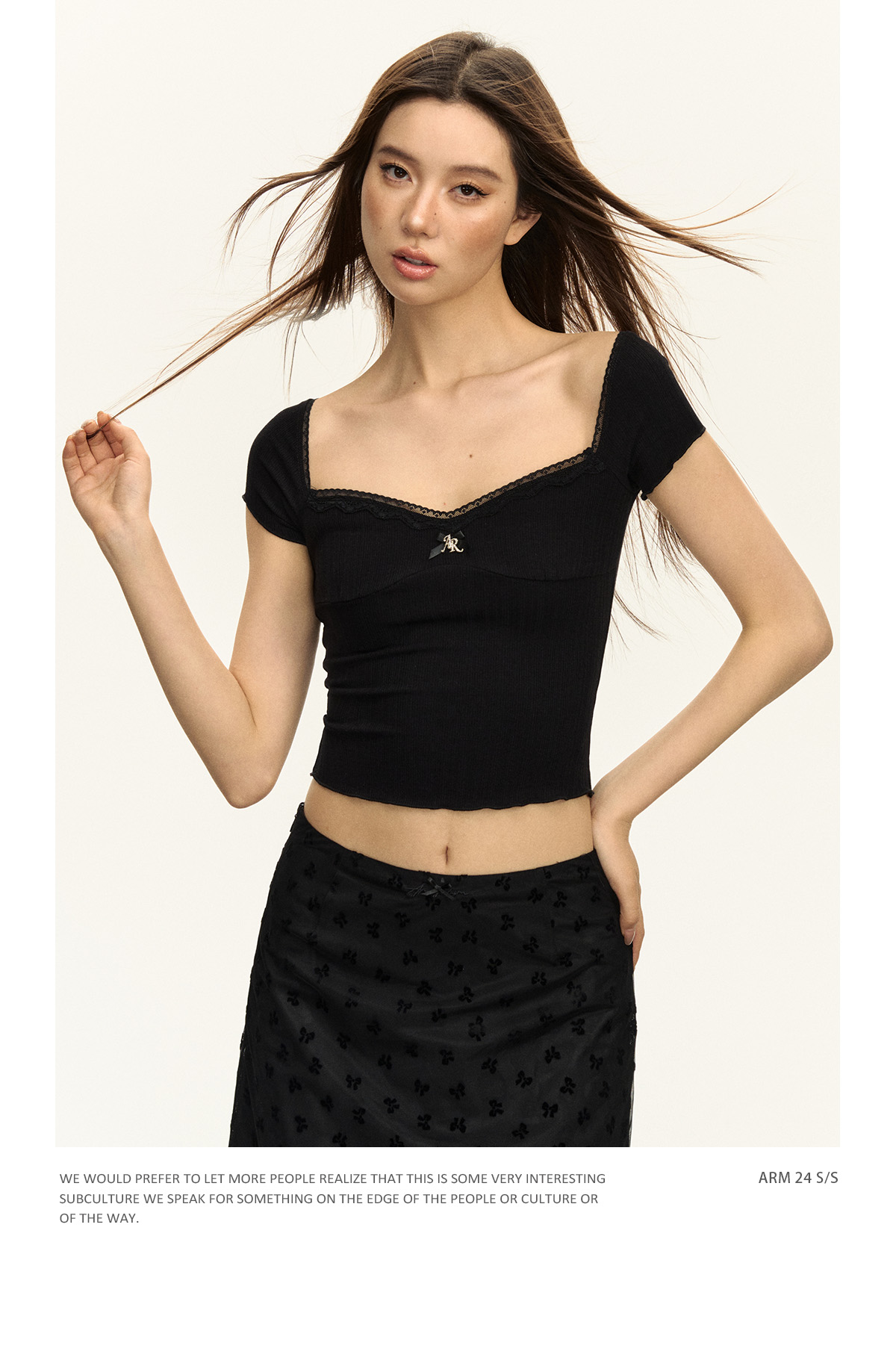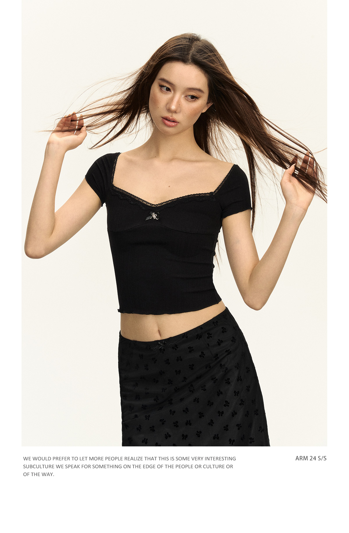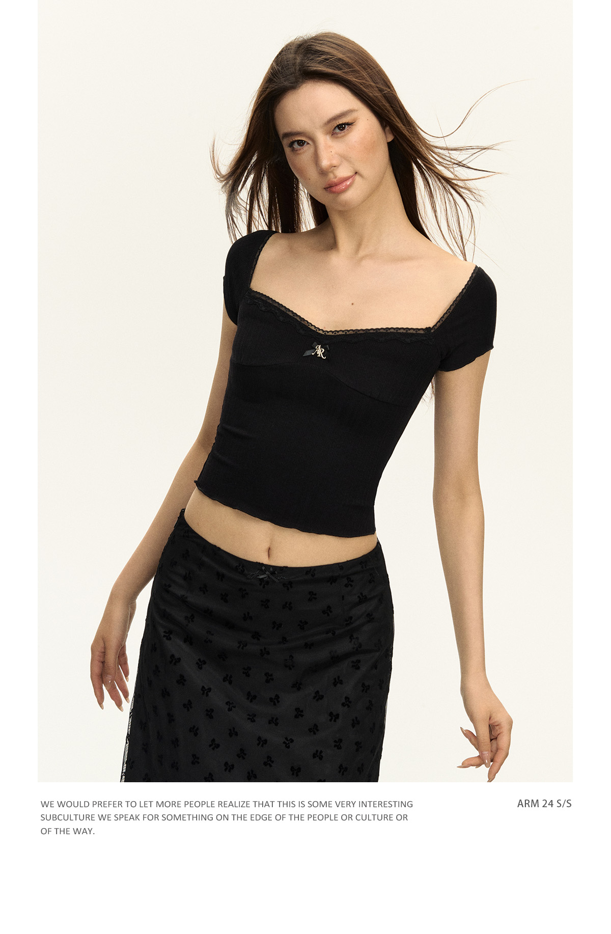 Ariseism 美式复古黑色短款短袖T恤女2025夏季新款辣妹修身上衣