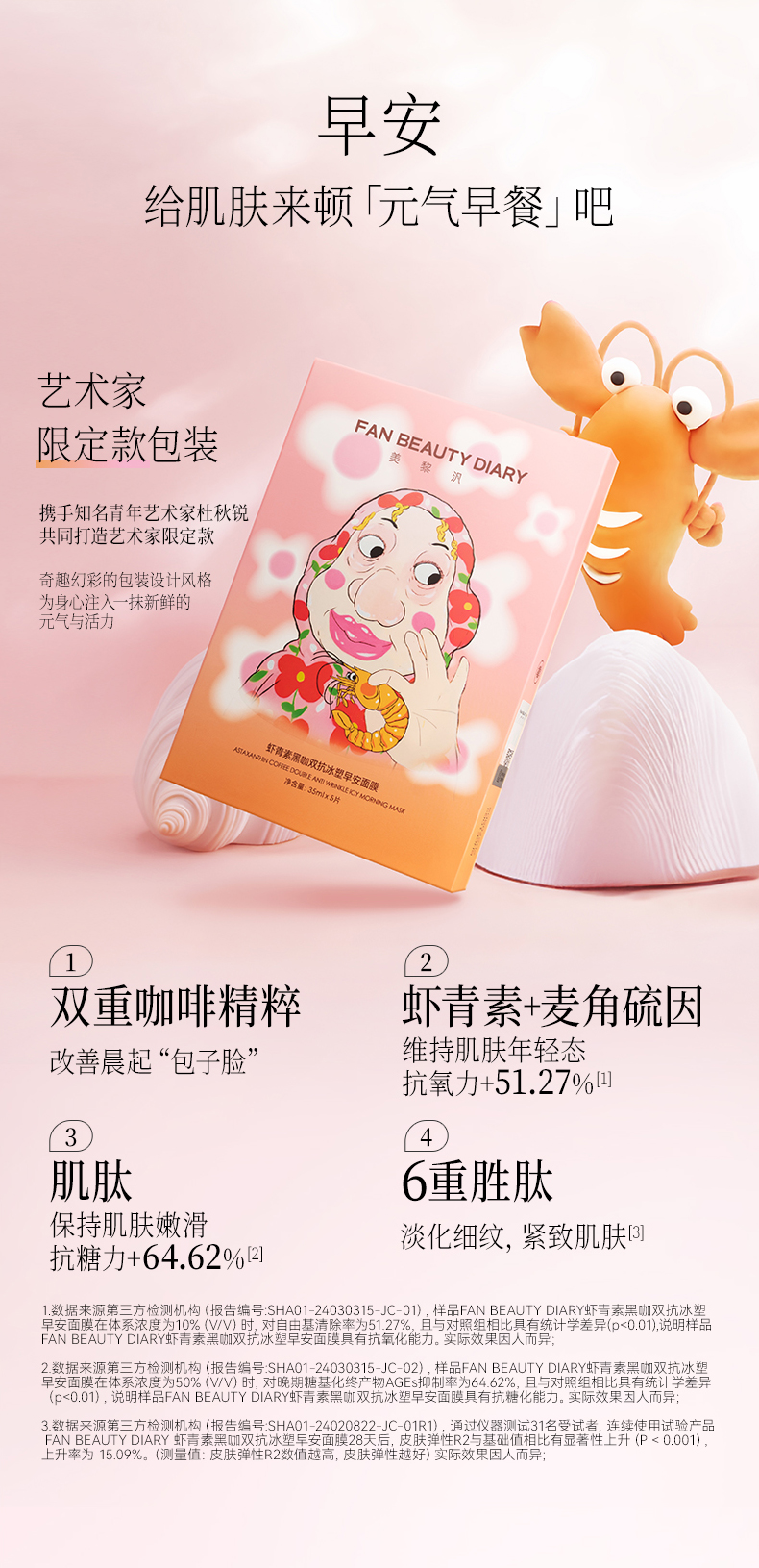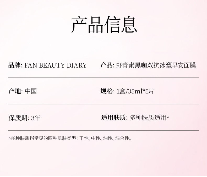 FAN BEAUTY DIARY 虾青素黑咖双抗冰塑早安面膜5片/盒(全英文标)