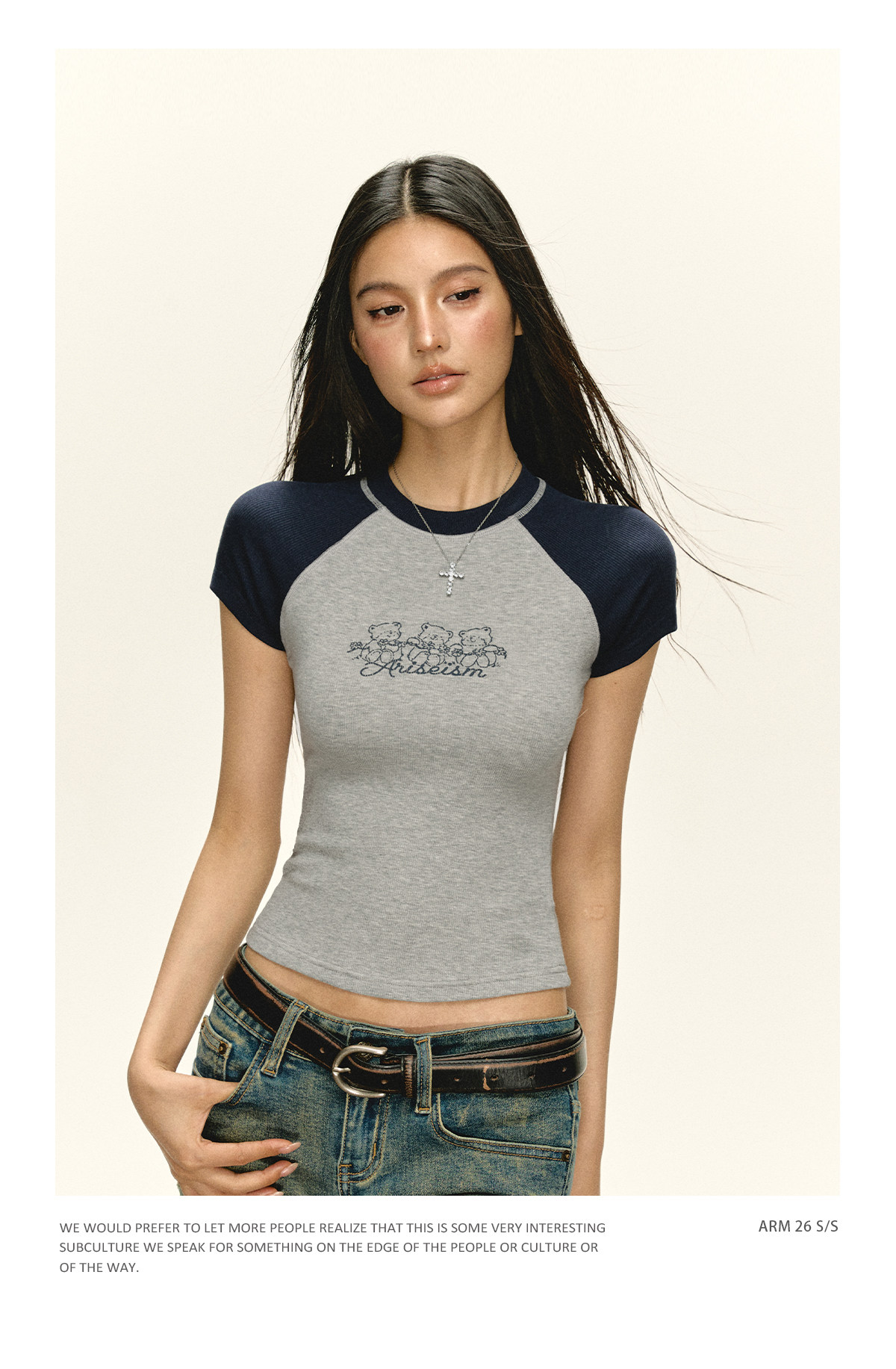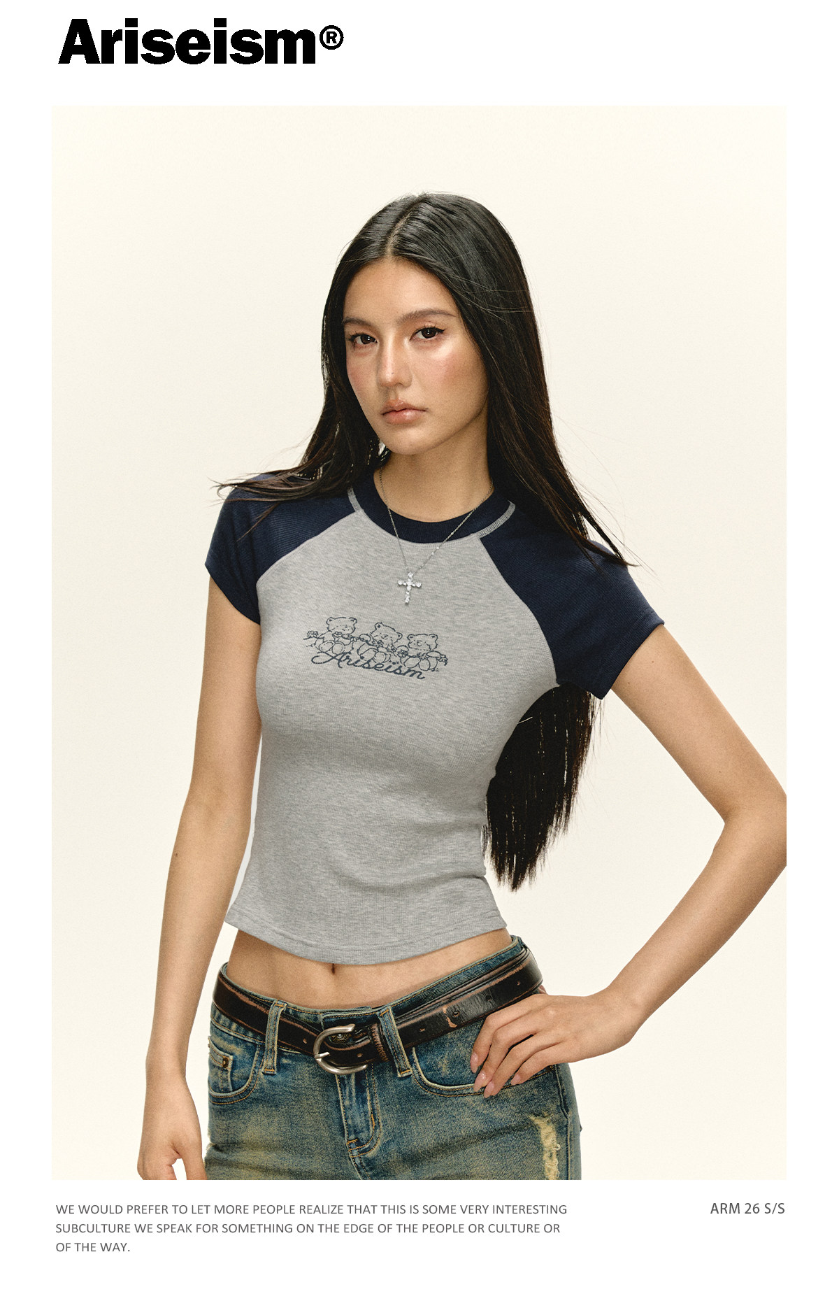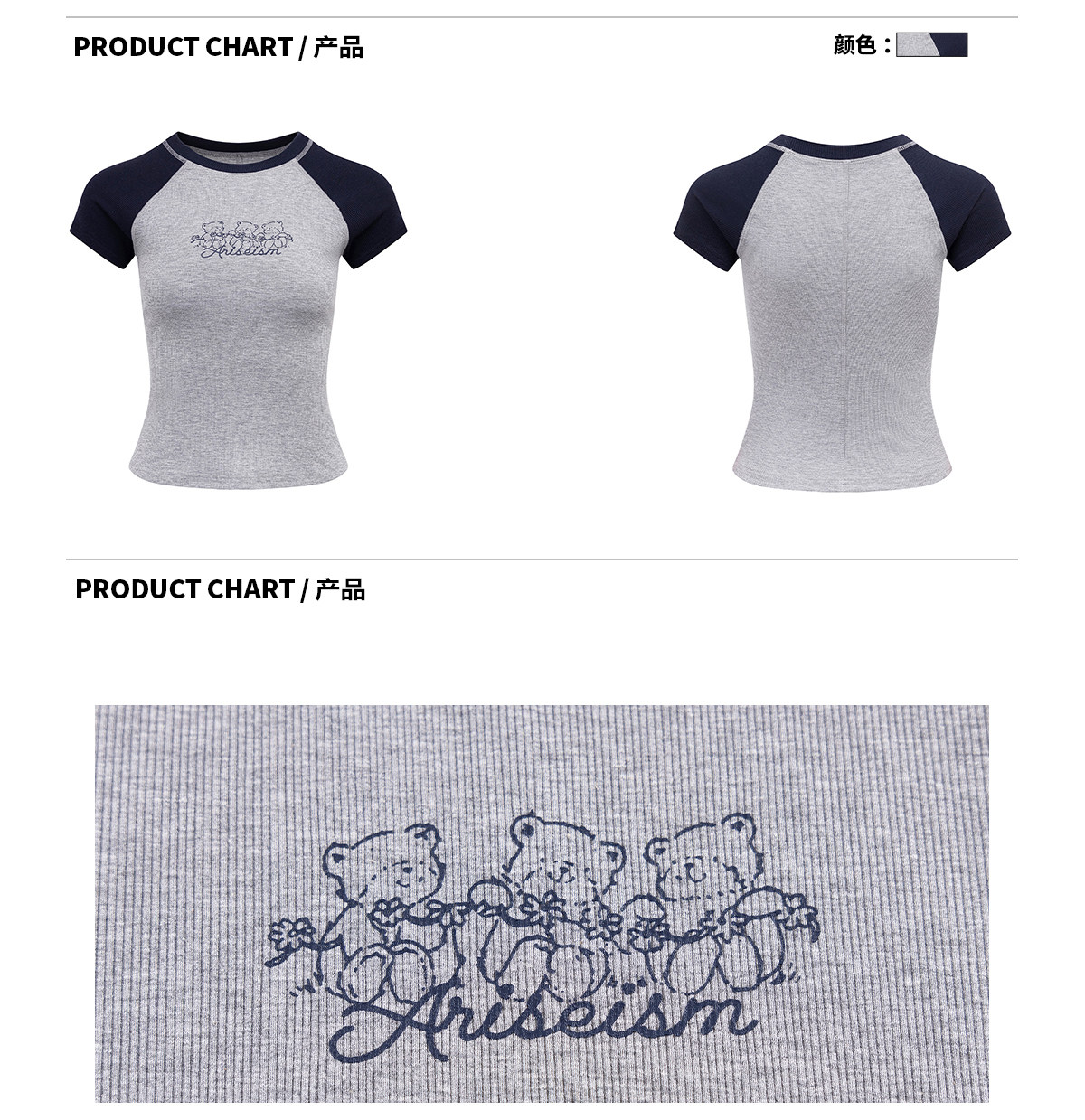 Ariseism 美式复古撞色插肩袖短袖T恤女夏季新款上衣