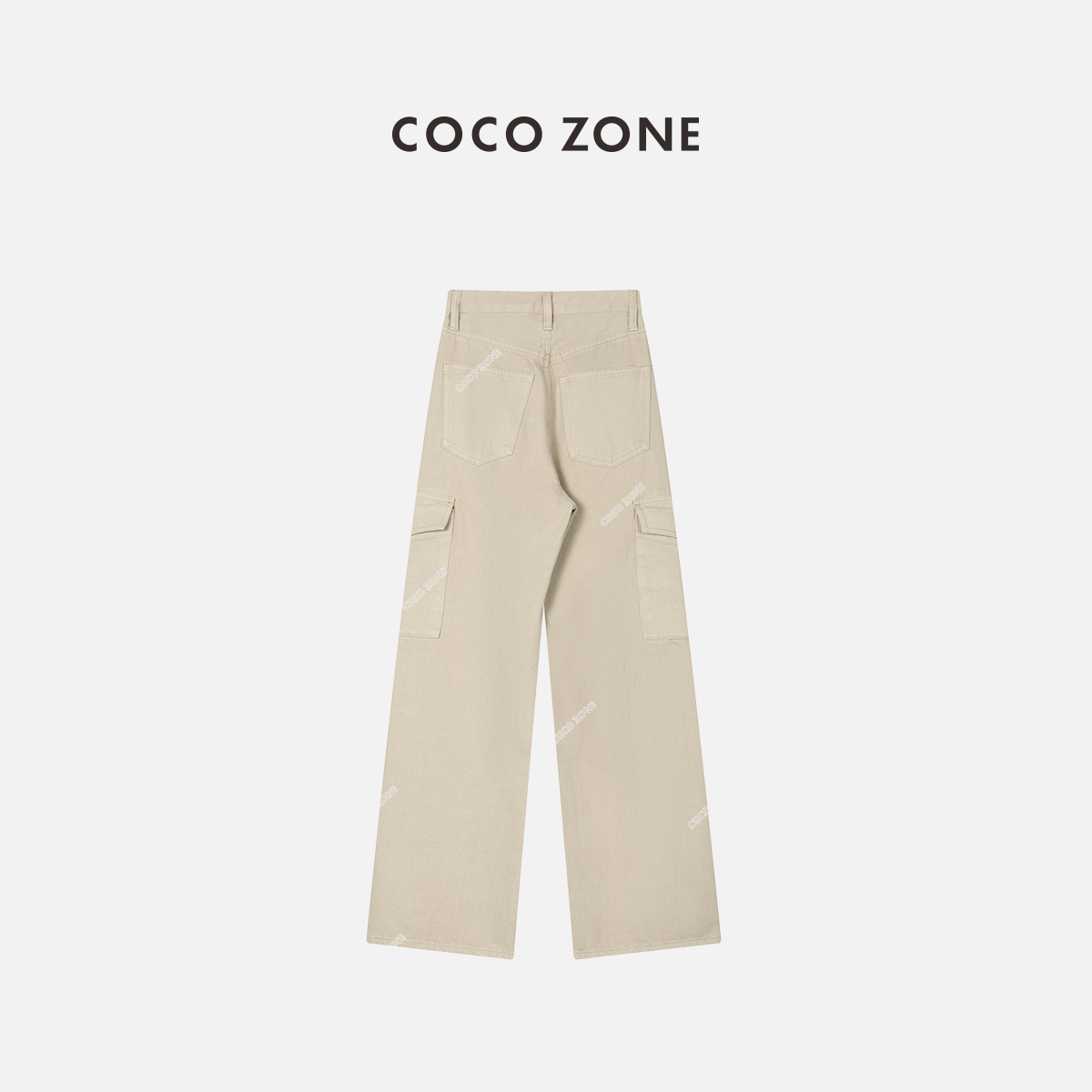 COCO ZONE100%棉直筒工装裤两侧百搭裤 23C19335潮牌女裤