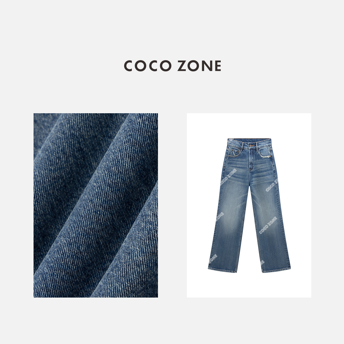 COCO ZONE 刘一一 美式复古水洗牛仔裤百搭显瘦直筒裤CC1C1751