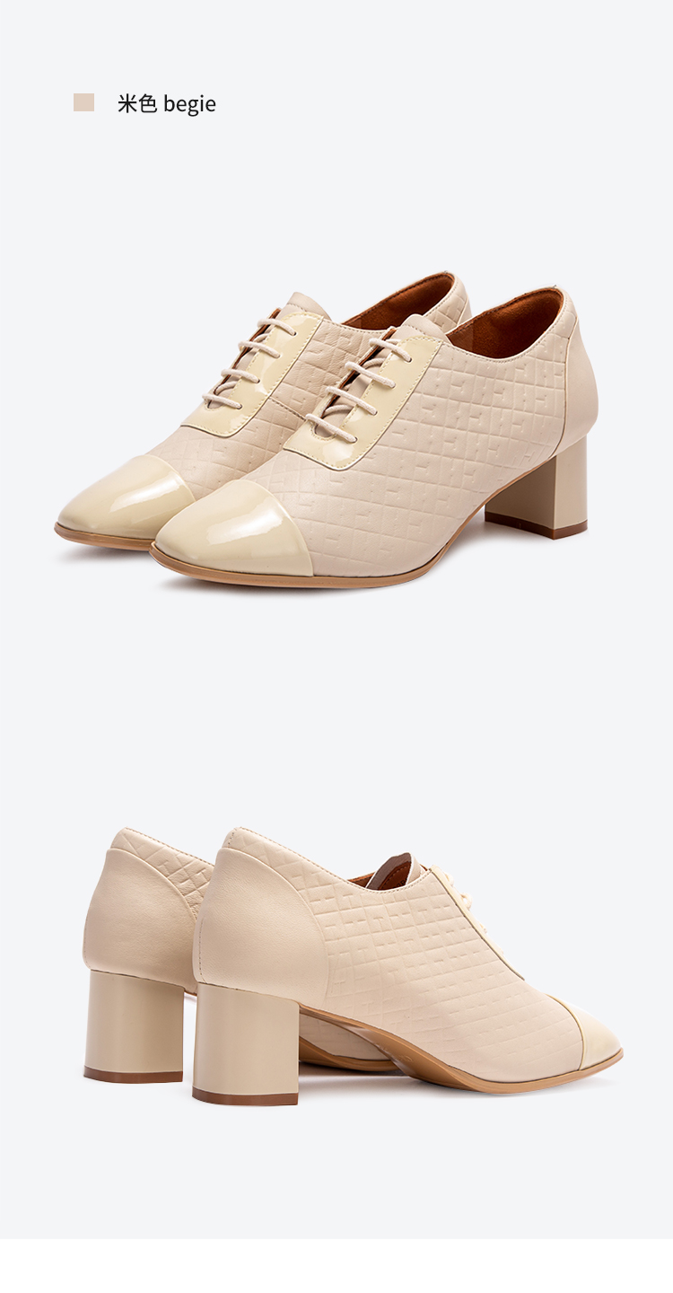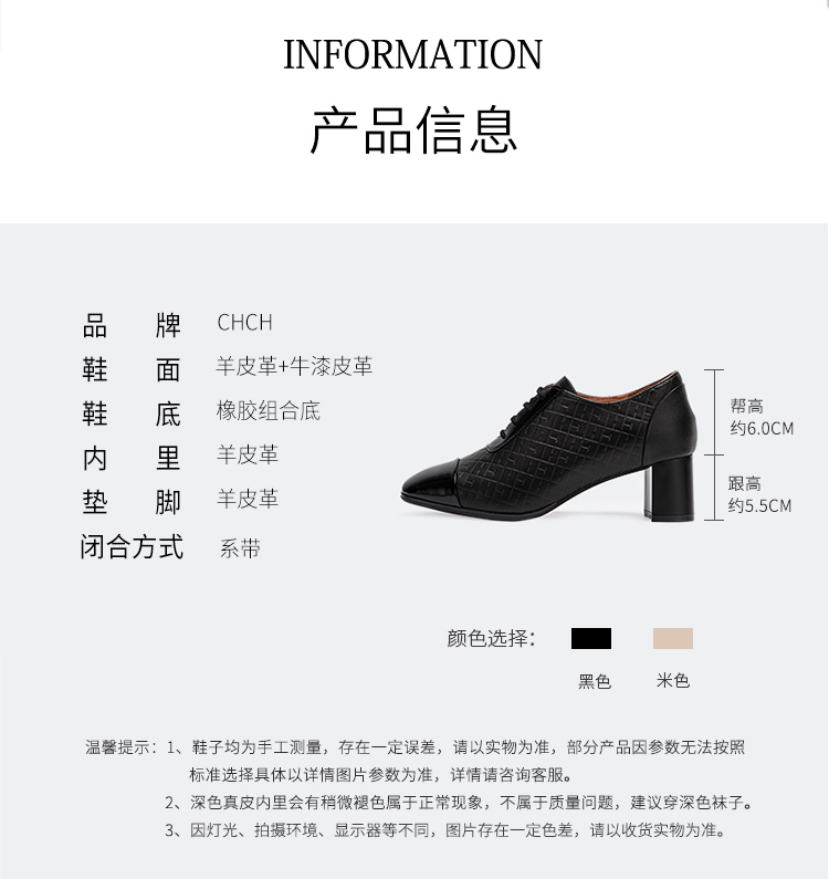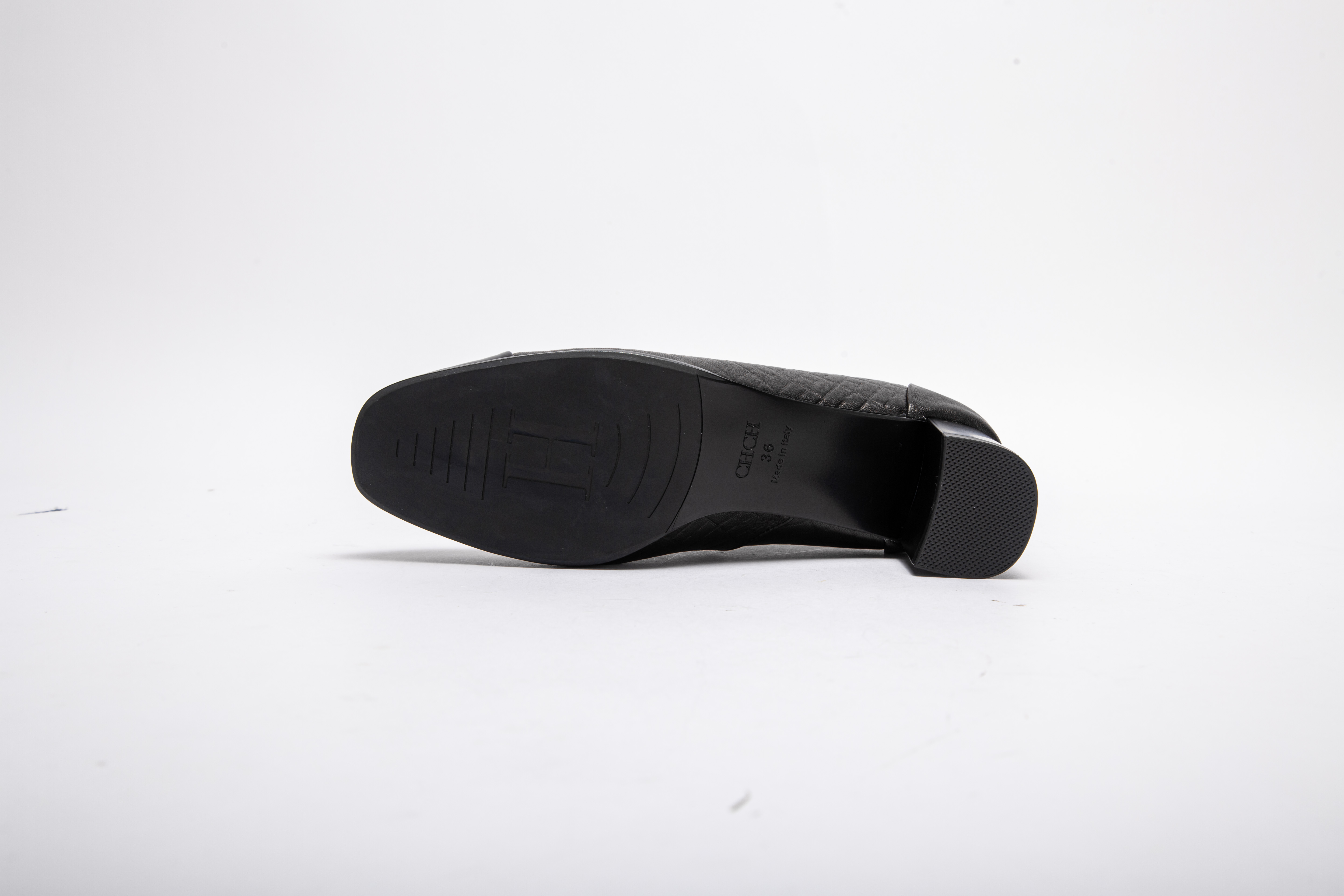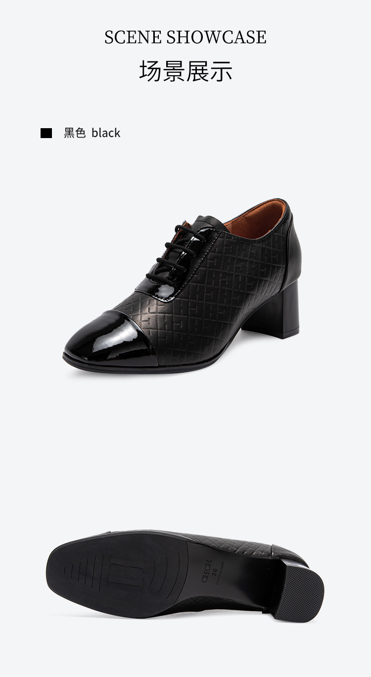 CHCH粗跟单鞋2024秋冬新品羊皮压纹深口女士通勤单鞋CO2B5011