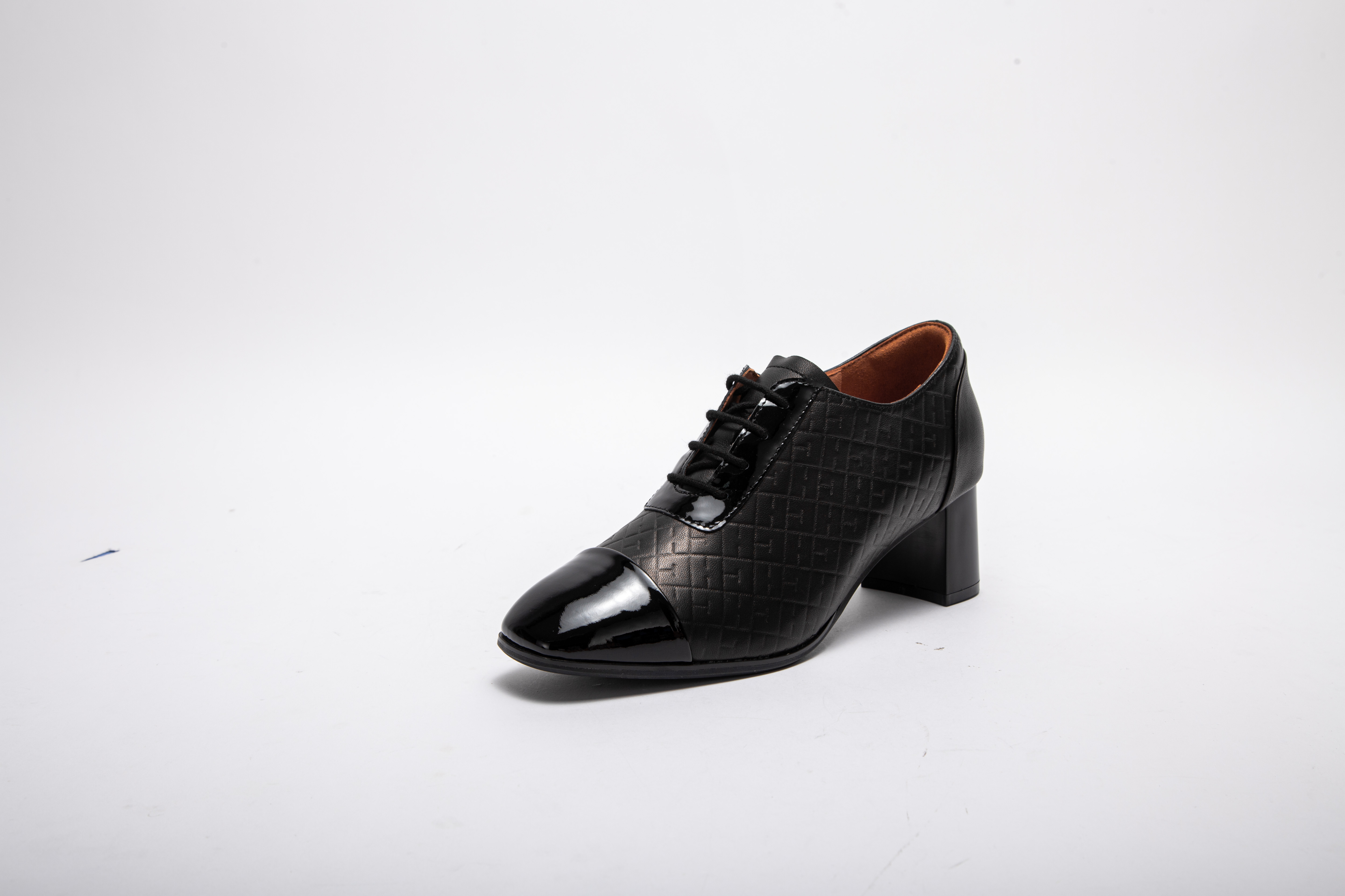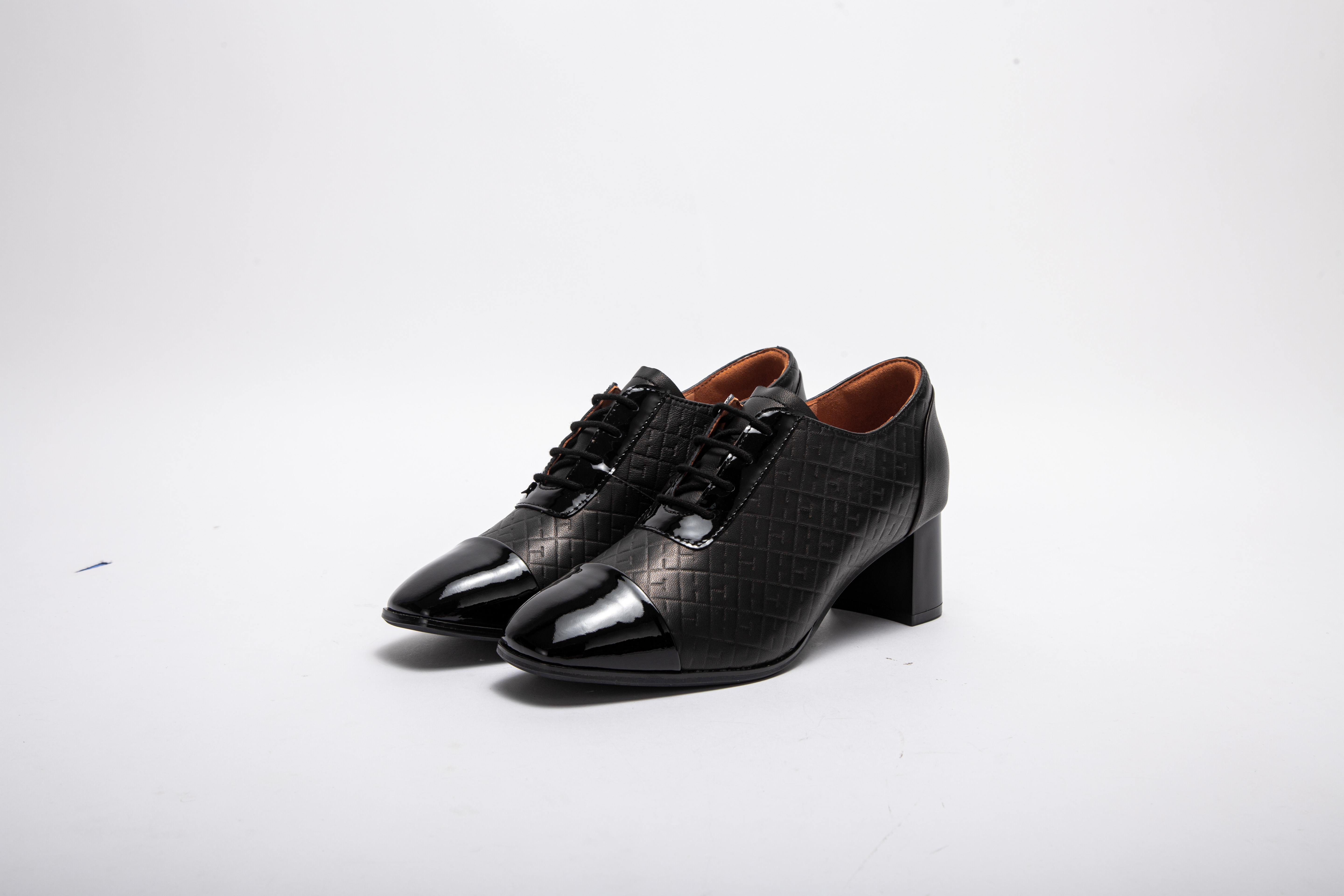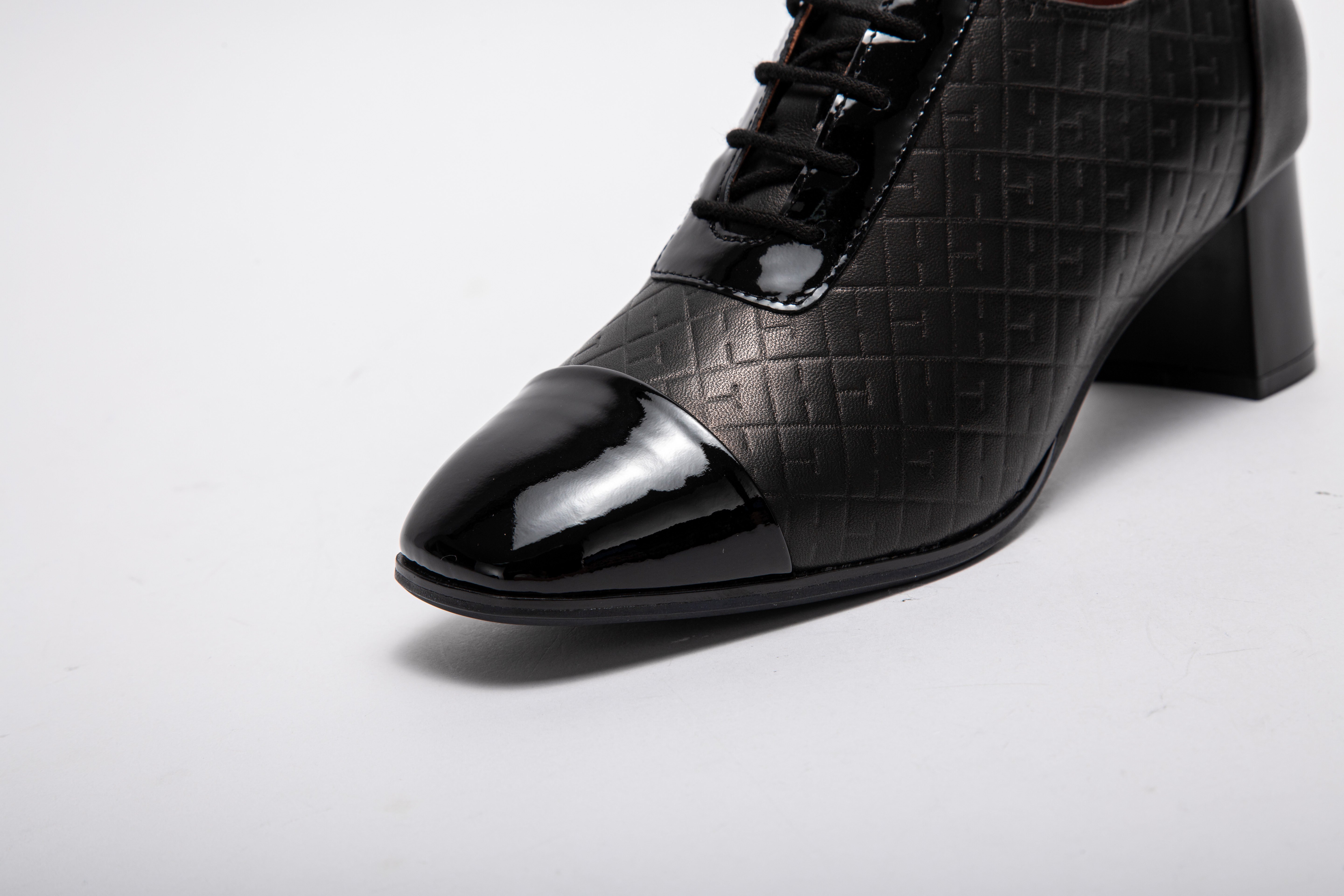 CHCH粗跟单鞋2024秋冬新品羊皮压纹深口女士通勤单鞋CO2B5011