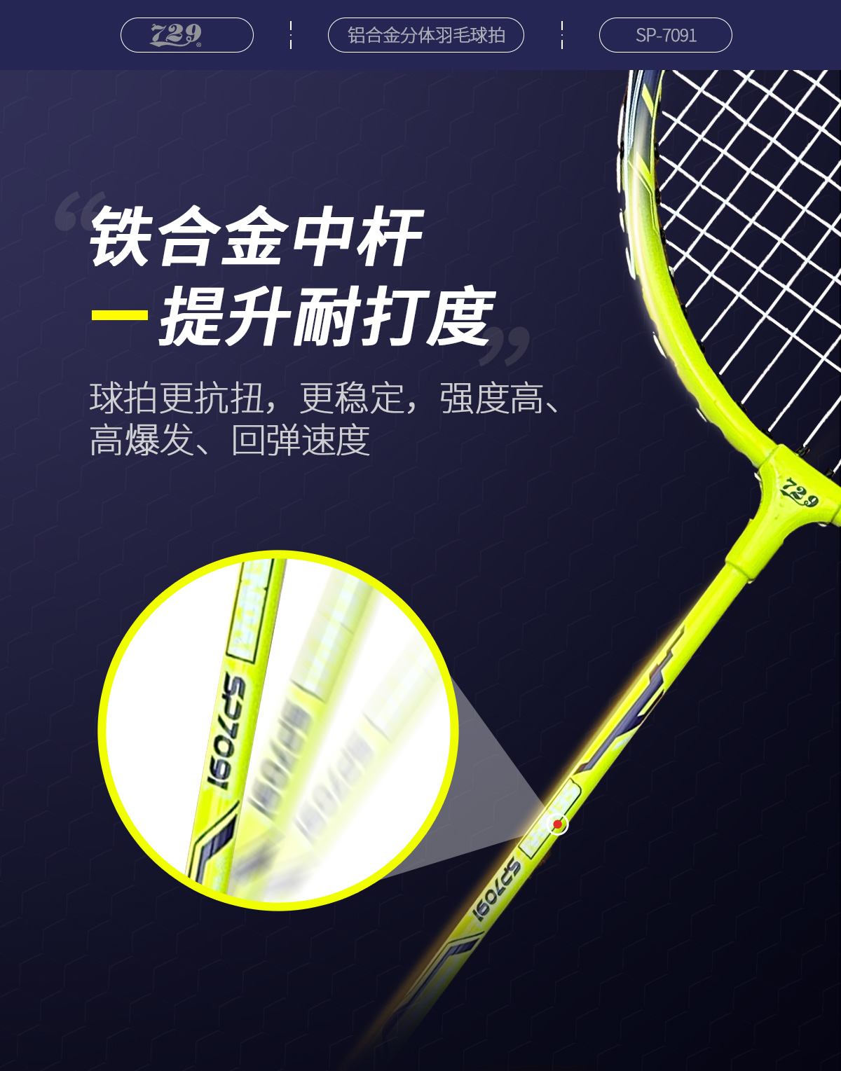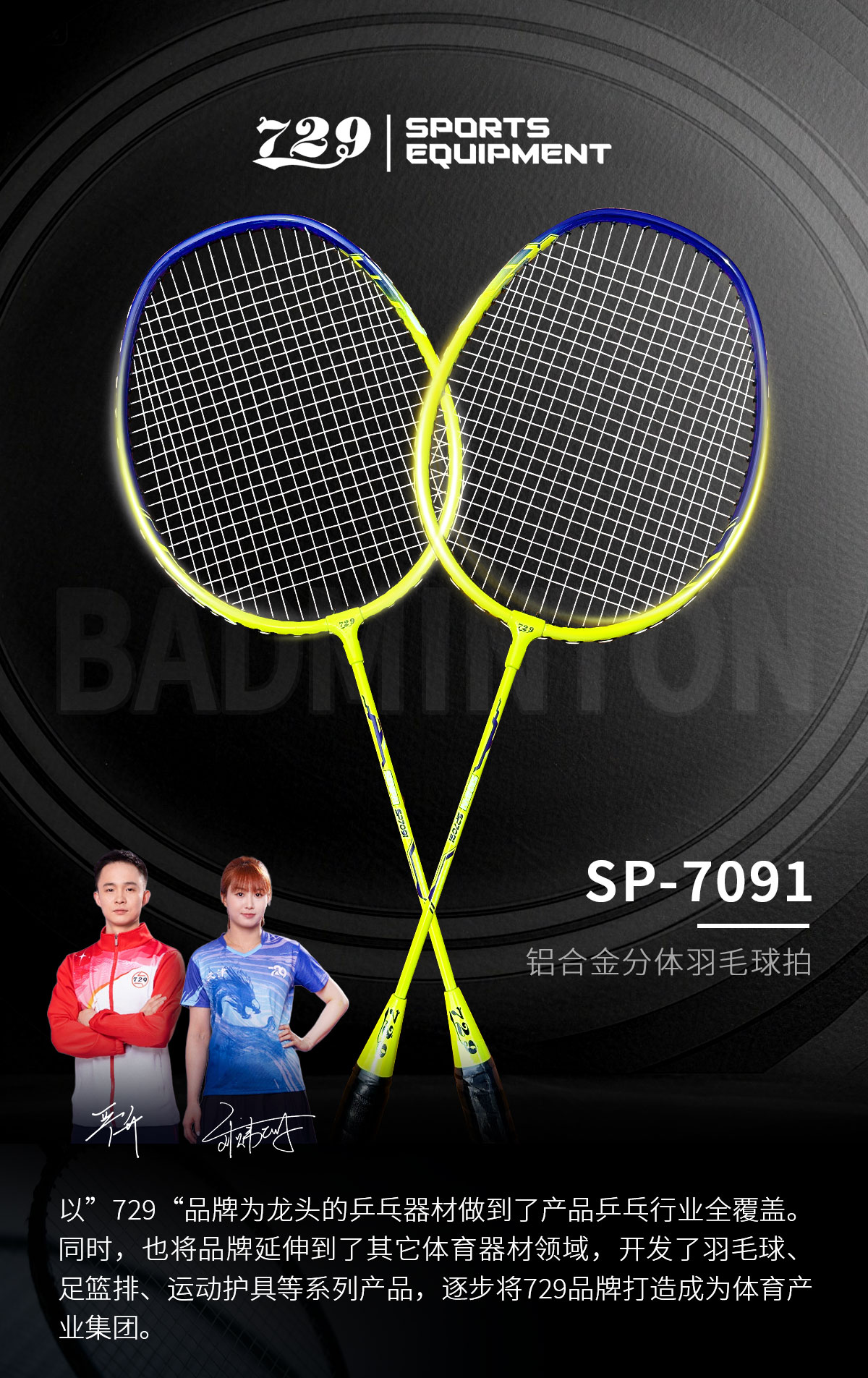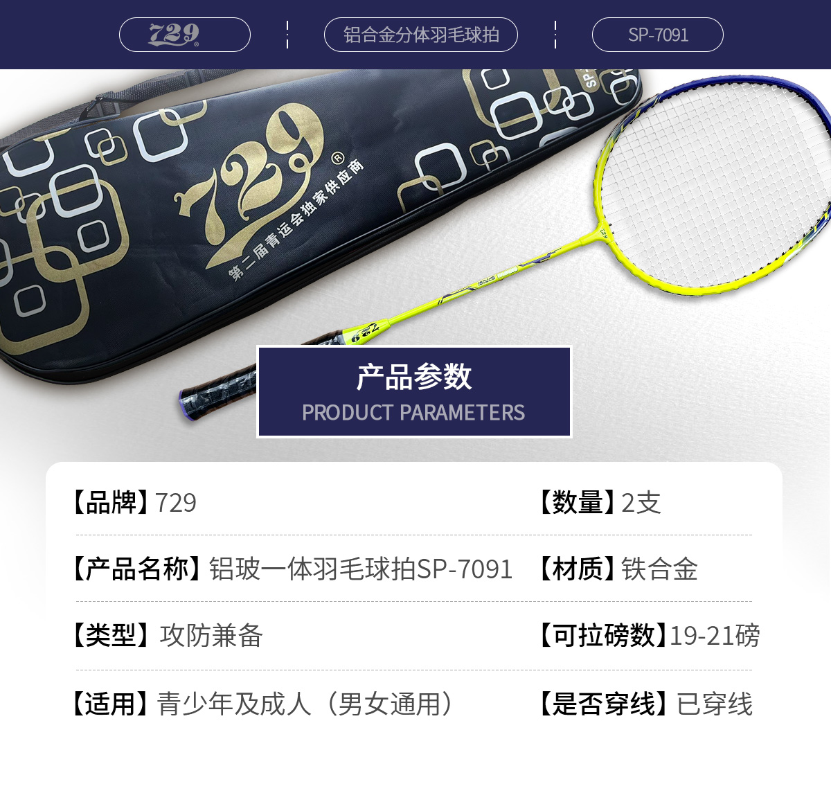 [新品·2只装] 友谊729 7091铝合金分体羽毛球拍 耐打耐磨专业羽毛球拍大童成人室内外通用套装