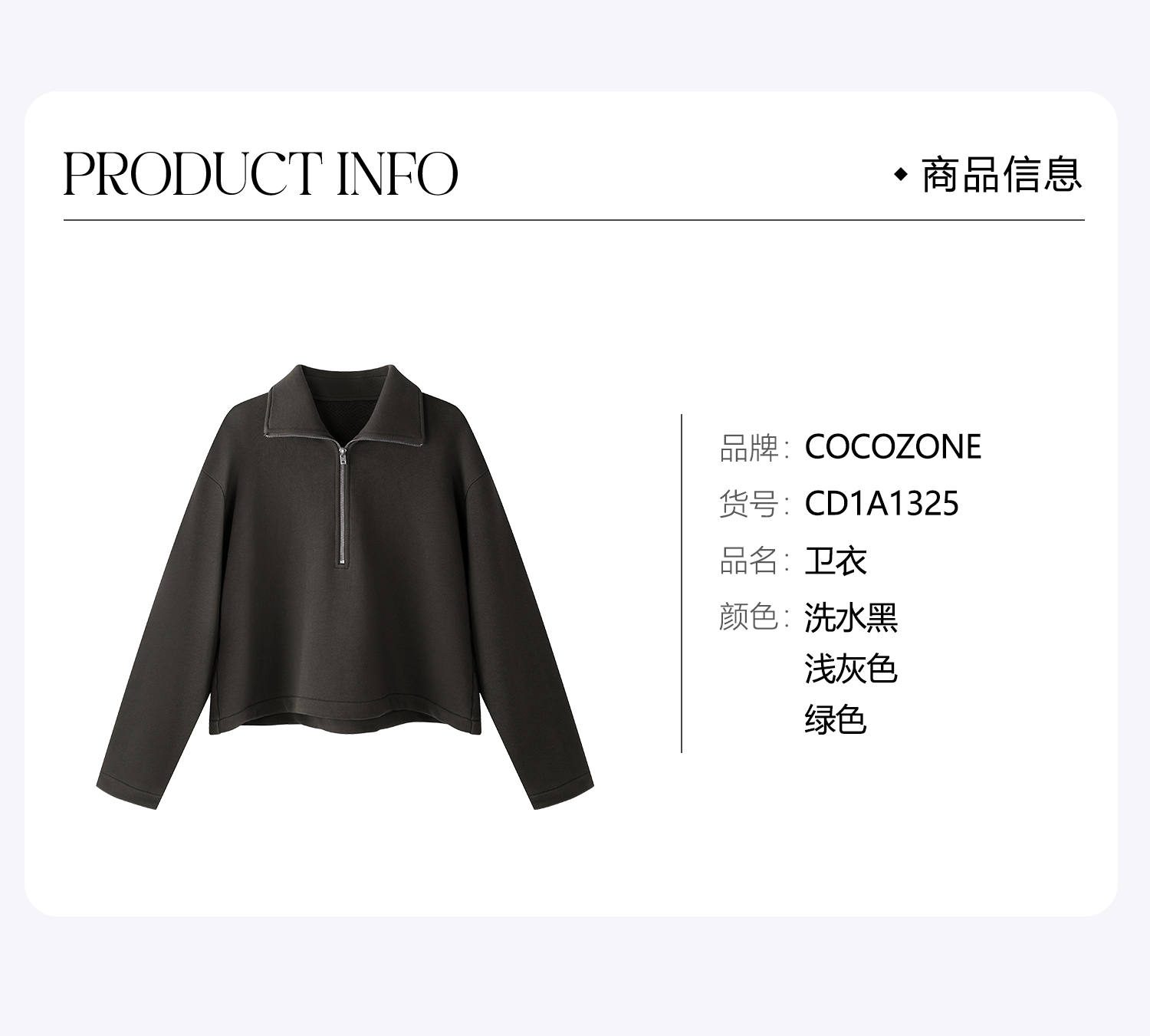 COCO ZONE 刘一一【100棉】立领纯色简约半开领卫衣 CD1A1325