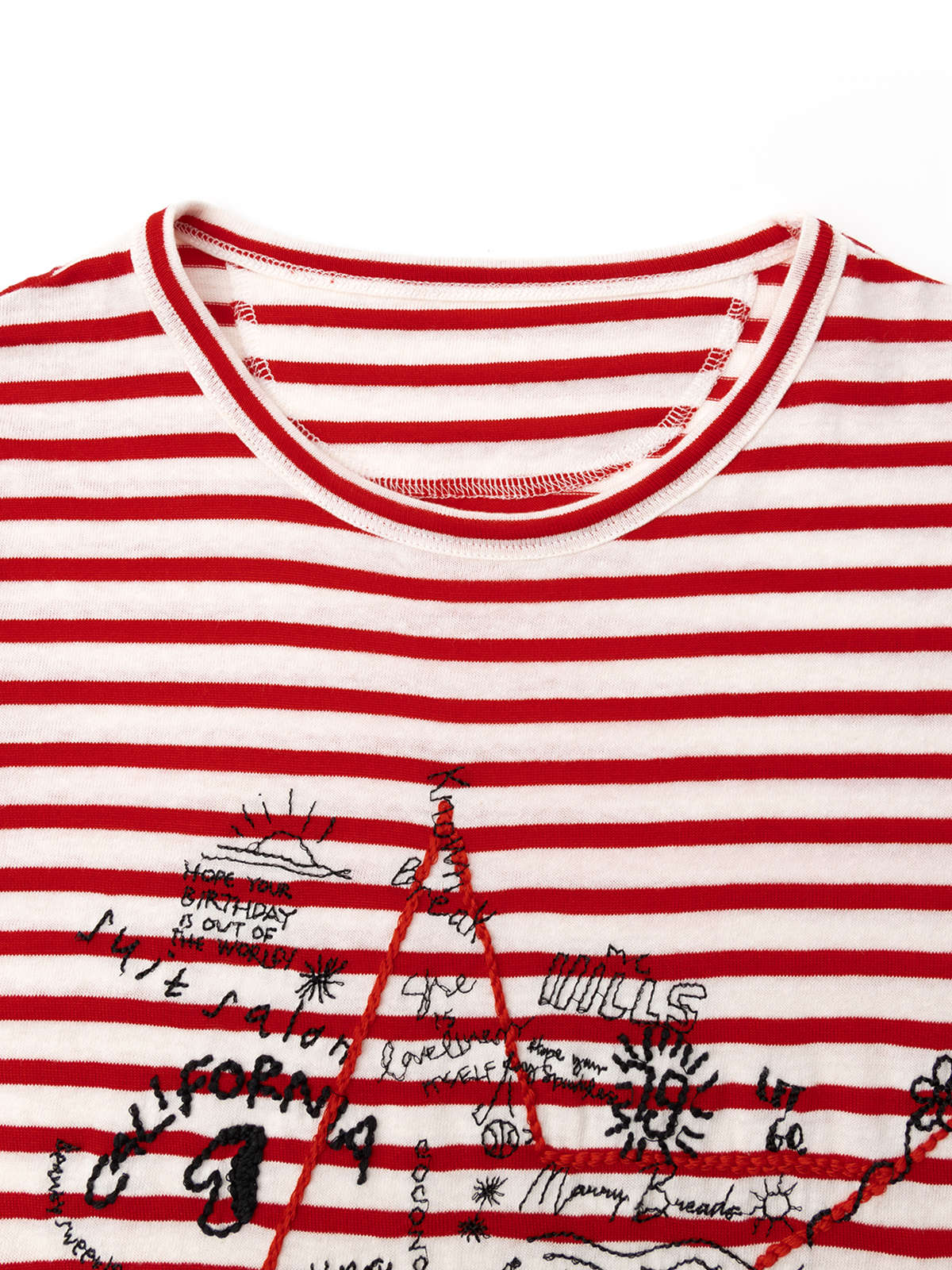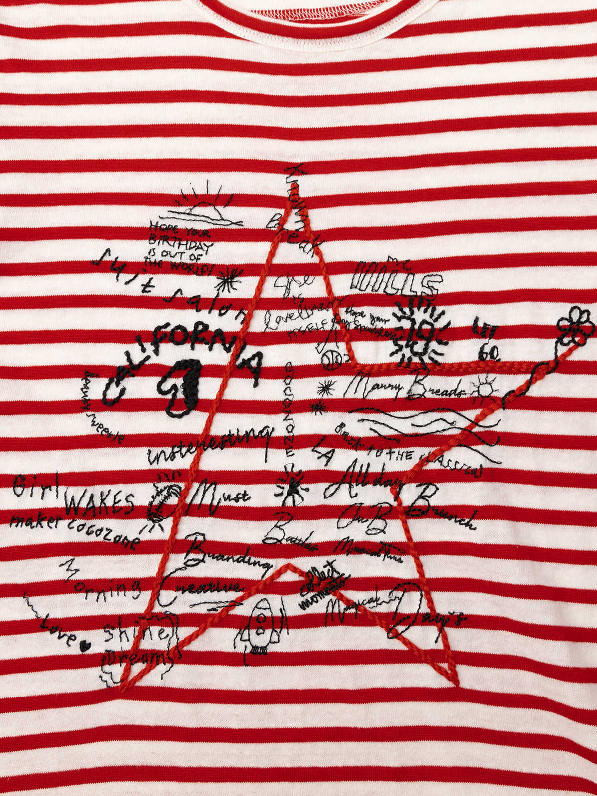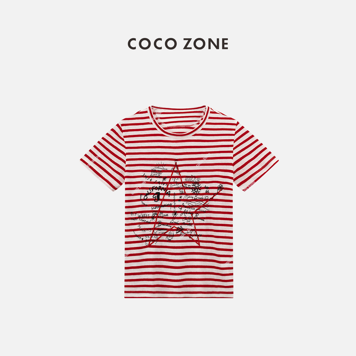 COCO ZONE 时尚星星绣花条纹短袖T恤圆领简约休闲上衣CC2B0599
