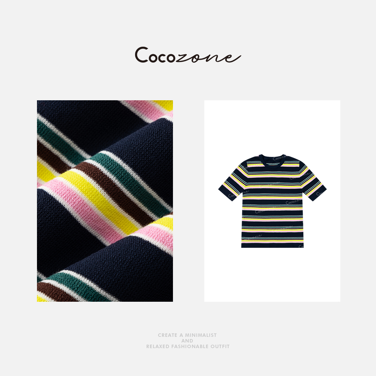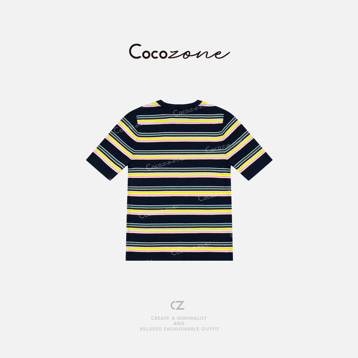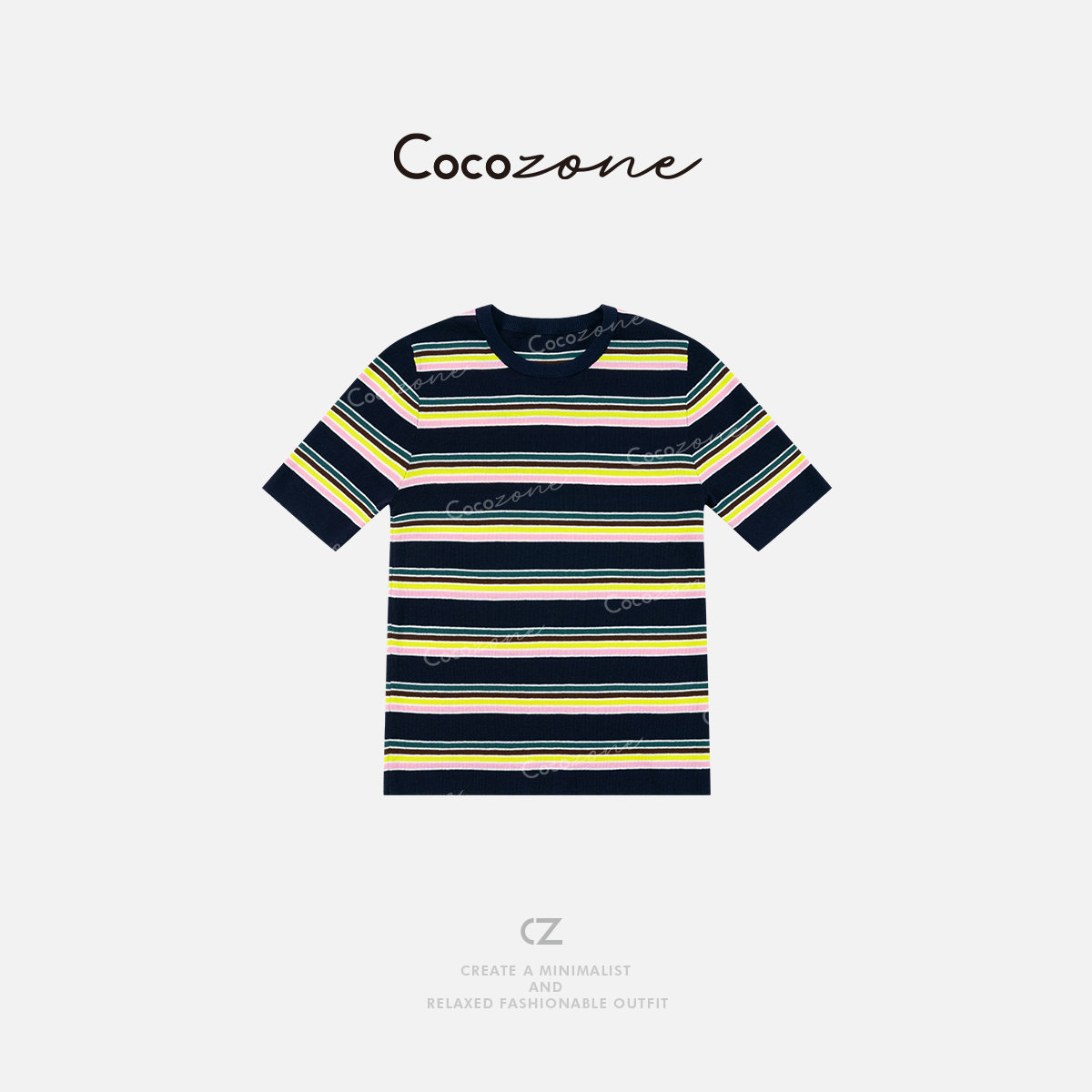 COCO ZONE 刘一一2025新款内搭上衣圆领条纹拼色短袖ACD2A0640