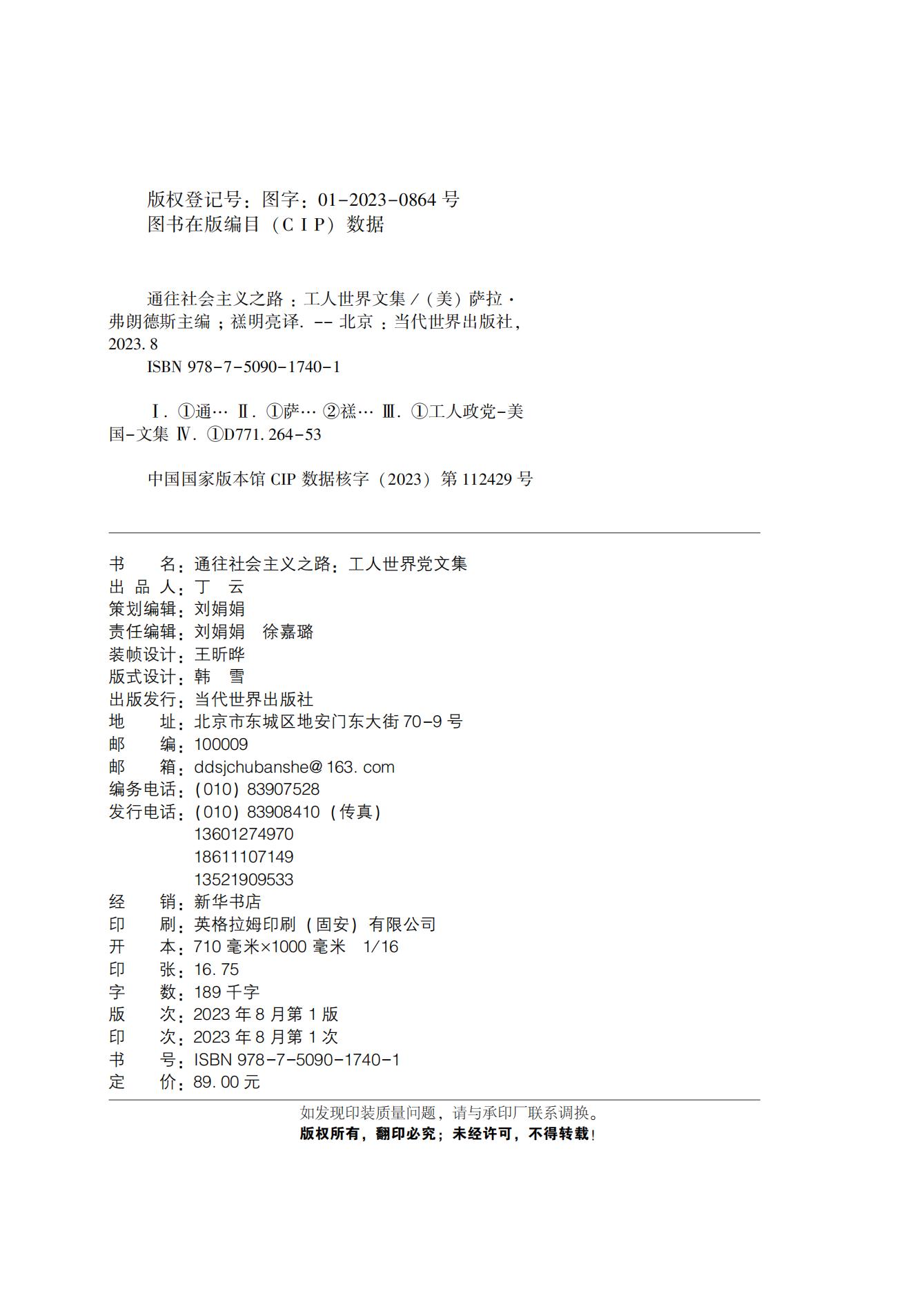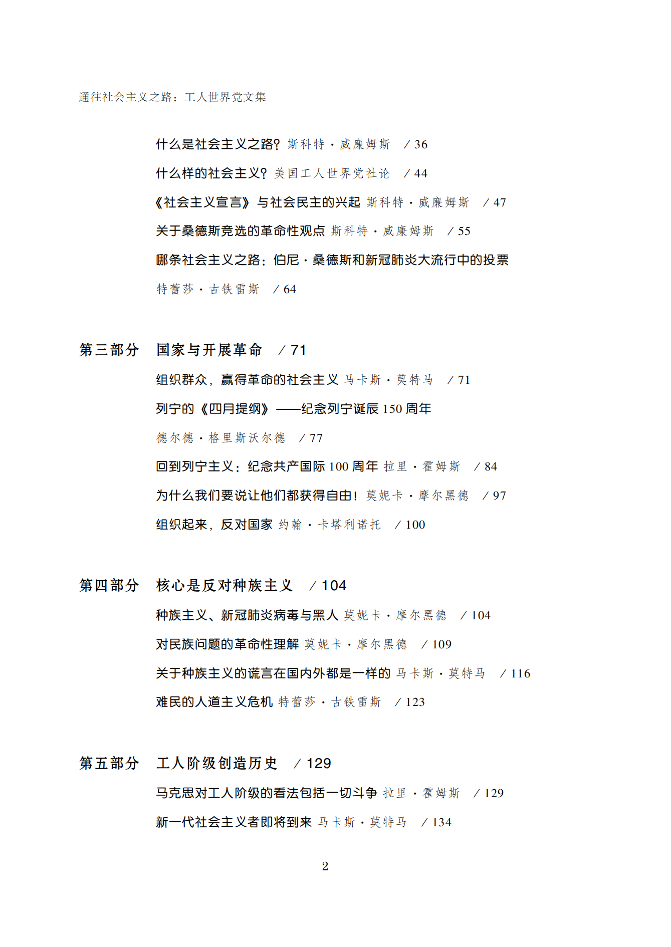 本书由英文图书What Road to Socialism? A Workers World Anthology翻译而成,收录了美国工人世界党党内知名左翼活动家的评论、演讲、会议发言等,从改革与革命、反对种族主义、工人阶级创造历史、反对压迫、国际团结等方面表达了美国工人世界党对资本主义制度的批判,深入探讨通往社会主义的路径。面对新冠肺炎疫情加速资本主义崩溃的紧迫问题和关键矛盾,本书从阶级、种族、性别等多个视角展示了美国工人世界党的世界观和方法论。