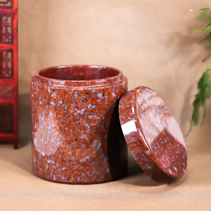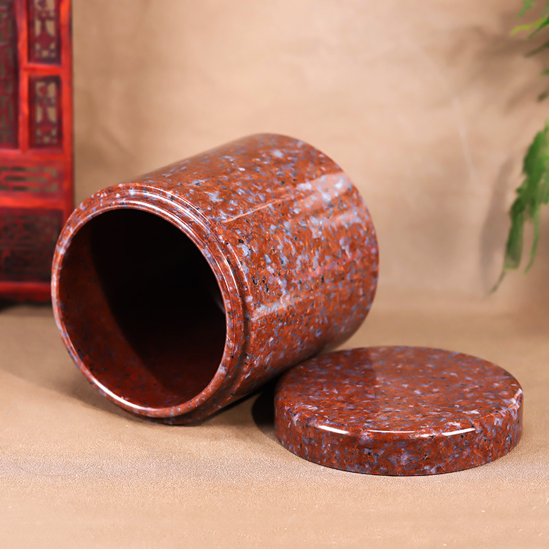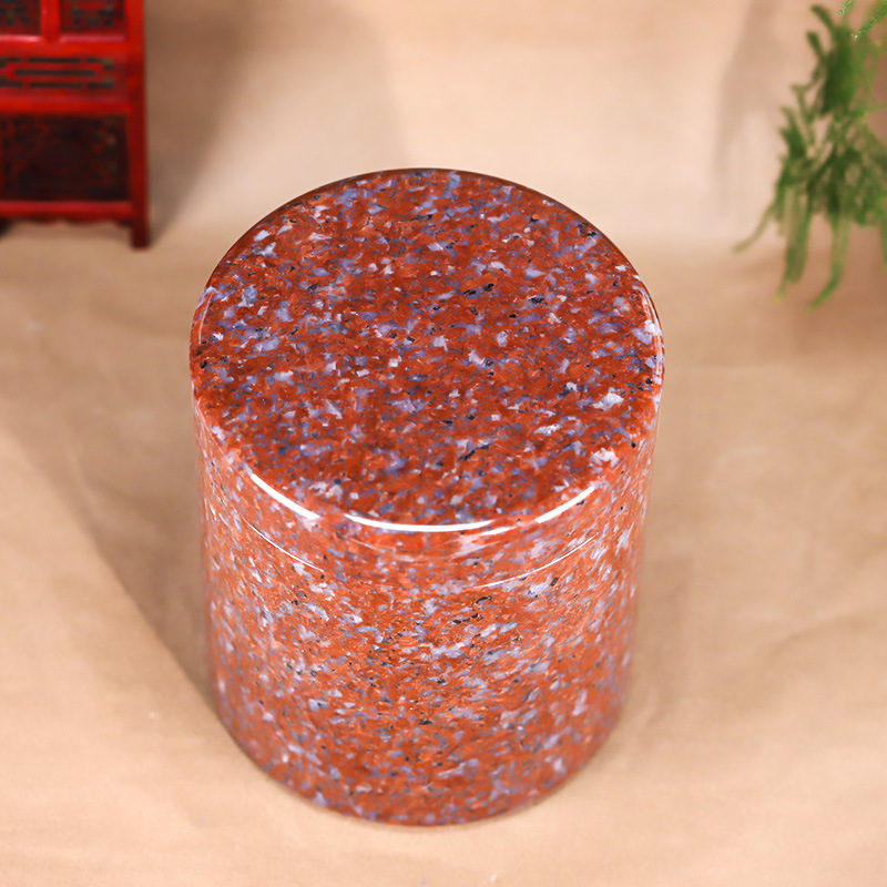天然玉石骨灰坛大理石红色净面骨灰桶骨灰坛20*20cm