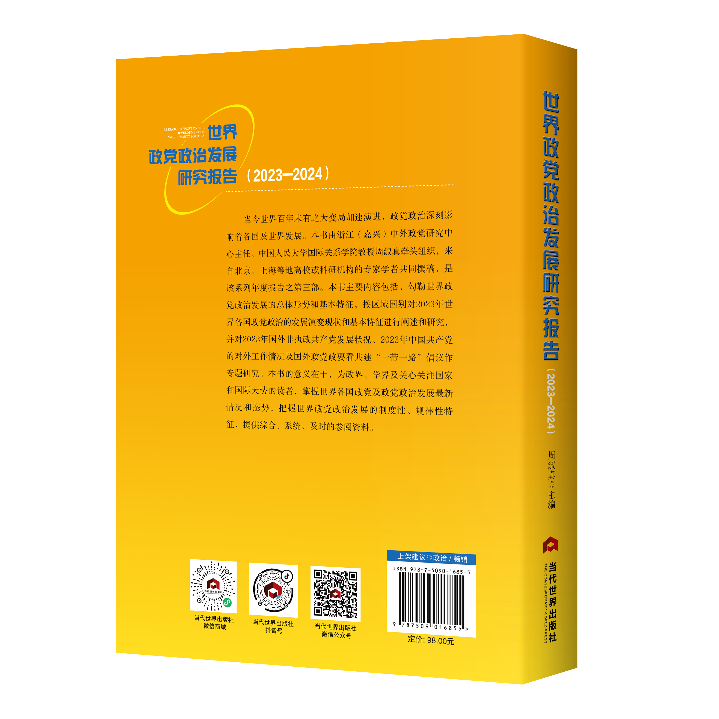 《世界政党政治发展研究报告(2023—2024)》是继《世界政党政治发展研究报告(2021—2022)》《世界政党政治发展研究报告(2022—2023)》之后的第三部年度研究报告。一个国家的兴衰成败与该国的政党、政党制度和政党政治的发展质量密切相关。政党政治发展研究系列报告以年度报告的形式,向人们介绍和展现世界各国政党政治发展与研究的情况,以帮助其了解百年未有之大变局下各区域国别政党政治的演变现状、演变过程及其发生根源,深刻理解各国兴衰演变中政党政治作为关键性变量的内在逻辑,这对于准确理解世界之变、时代之变、历史之变将有所助益。2023年是百年未有之大变局下世界政党政治加速演进的一年,在《世界政党政治发展研究报告(2023—2024)》即将出版之际,有必要向广大读者介绍以下几方面情况:一是2023年世界各区域国别政党政治主要变化和发展特征;二是本研究报告的任务由来和写作过程;三是本研究报告的框架结构和主要特点。
