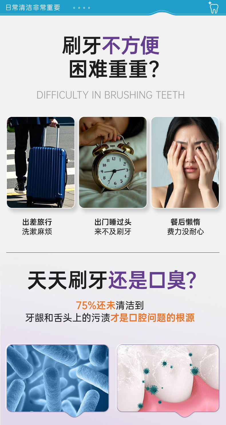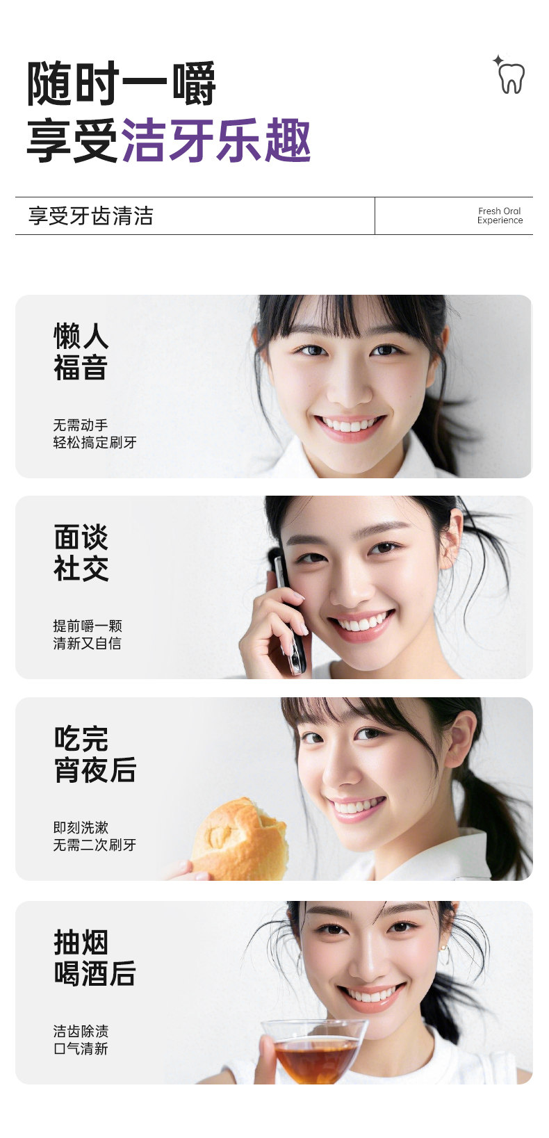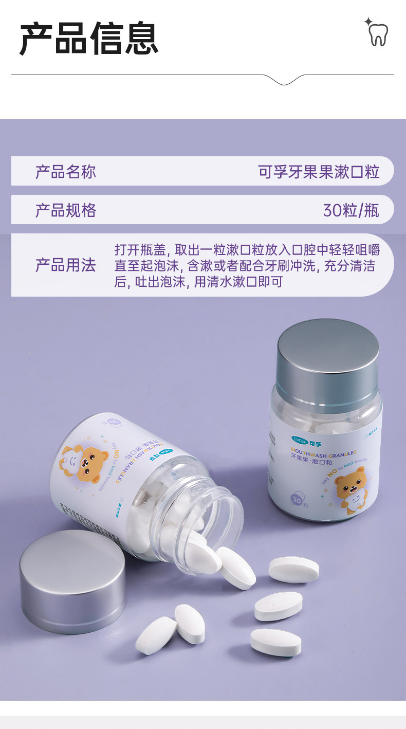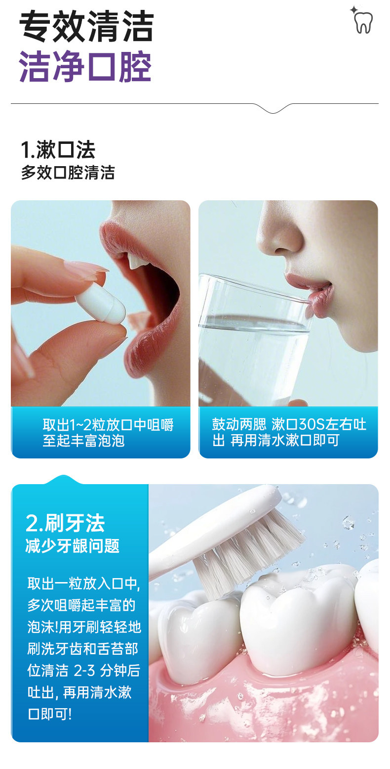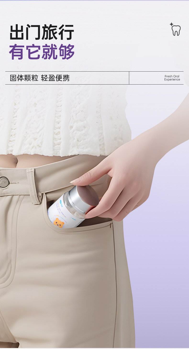 益生菌固体牙膏漱口粒咀嚼片便携式清新口气除口臭去黄美白洁牙片