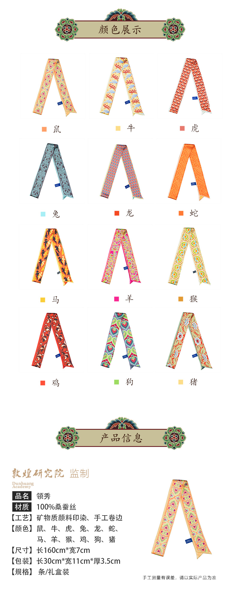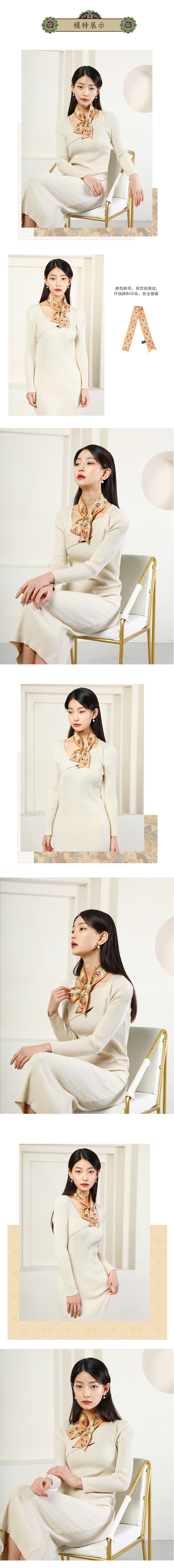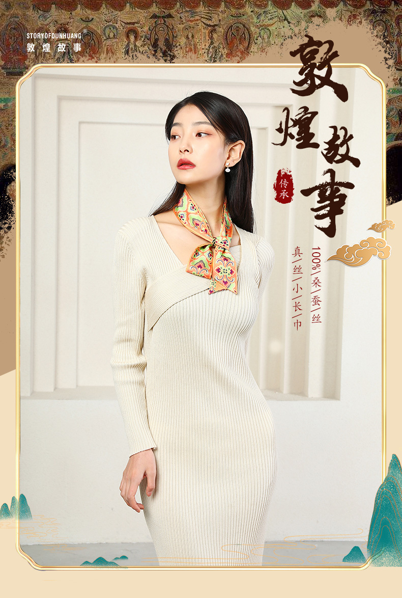敦煌故事桑蚕丝春秋印花送礼中国风女领秀窄条丝巾