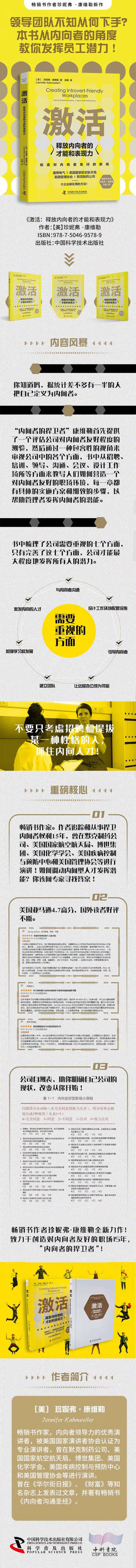 畅销书作者珍妮弗·康维勒全新力作! 致力于创造对内向者友好的职场! 如何调动内向型人才发挥潜能?你该向专家寻找答案!