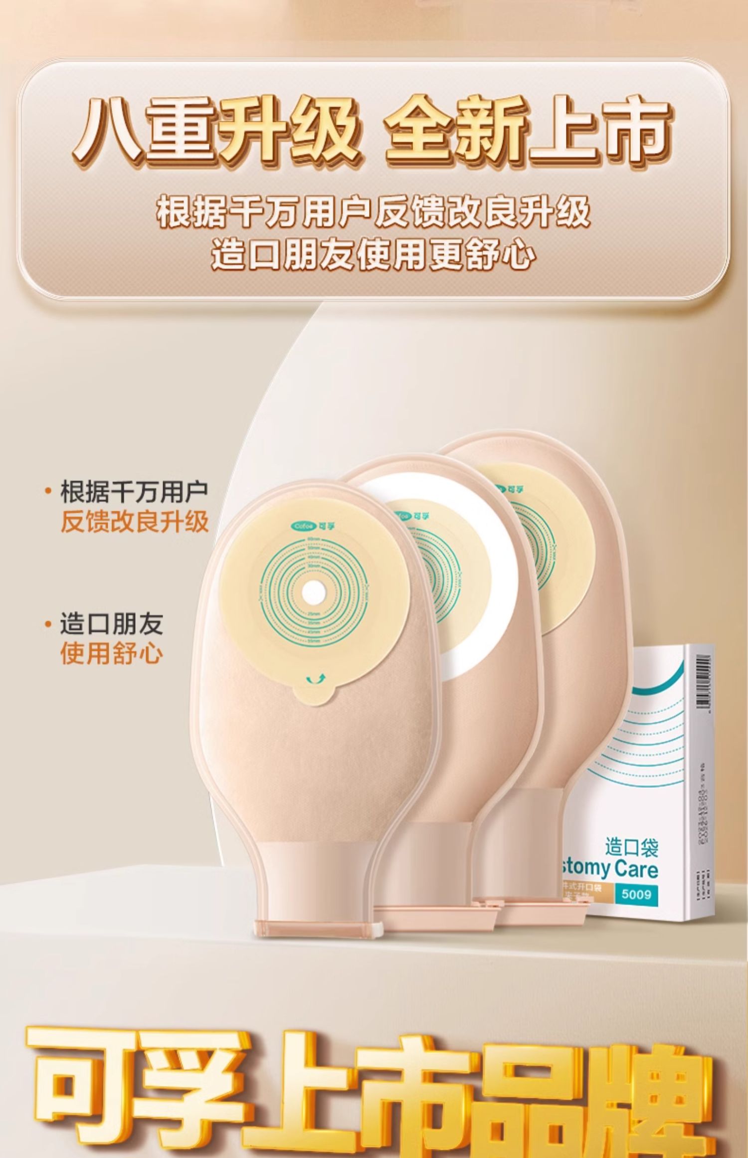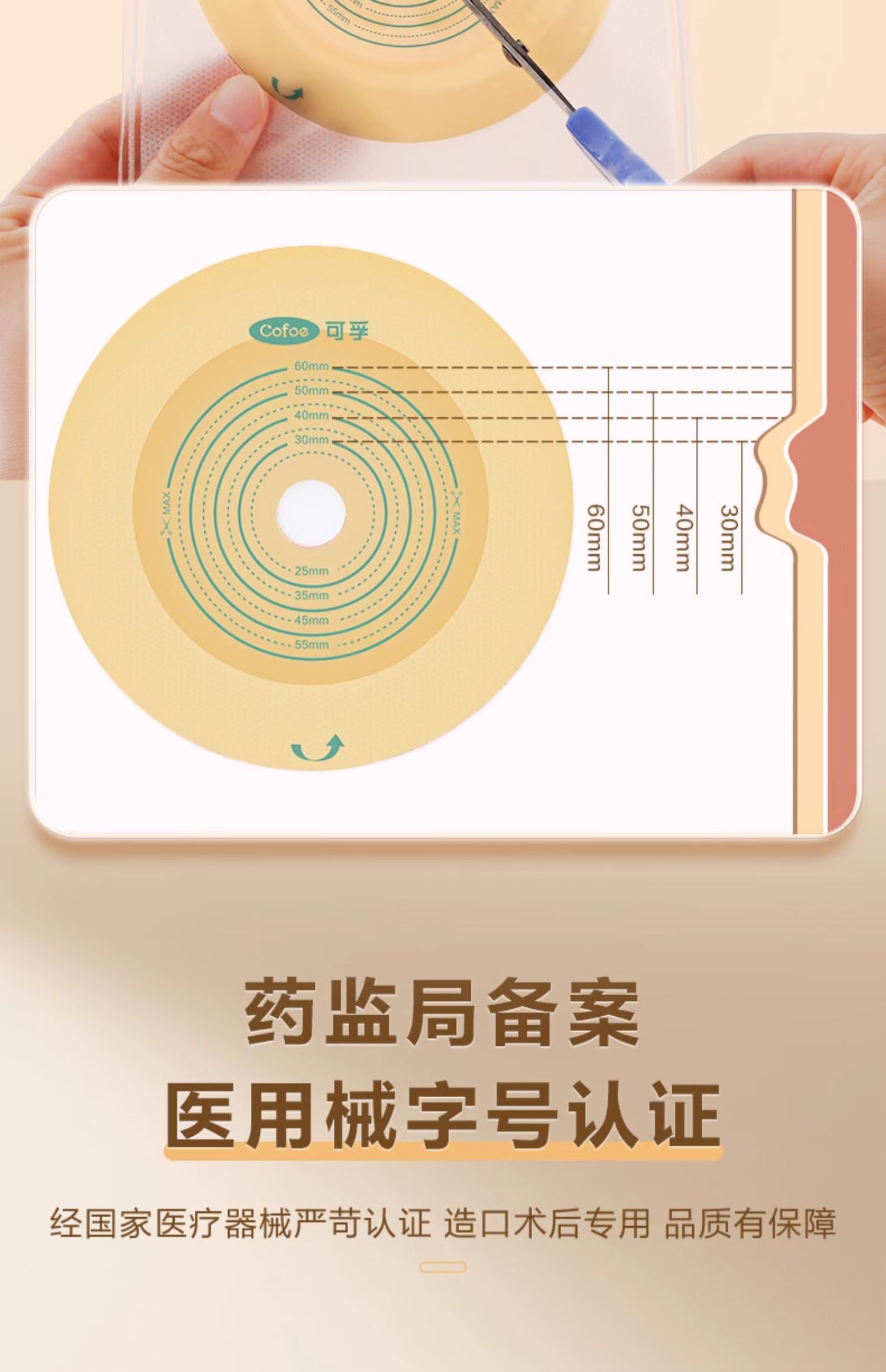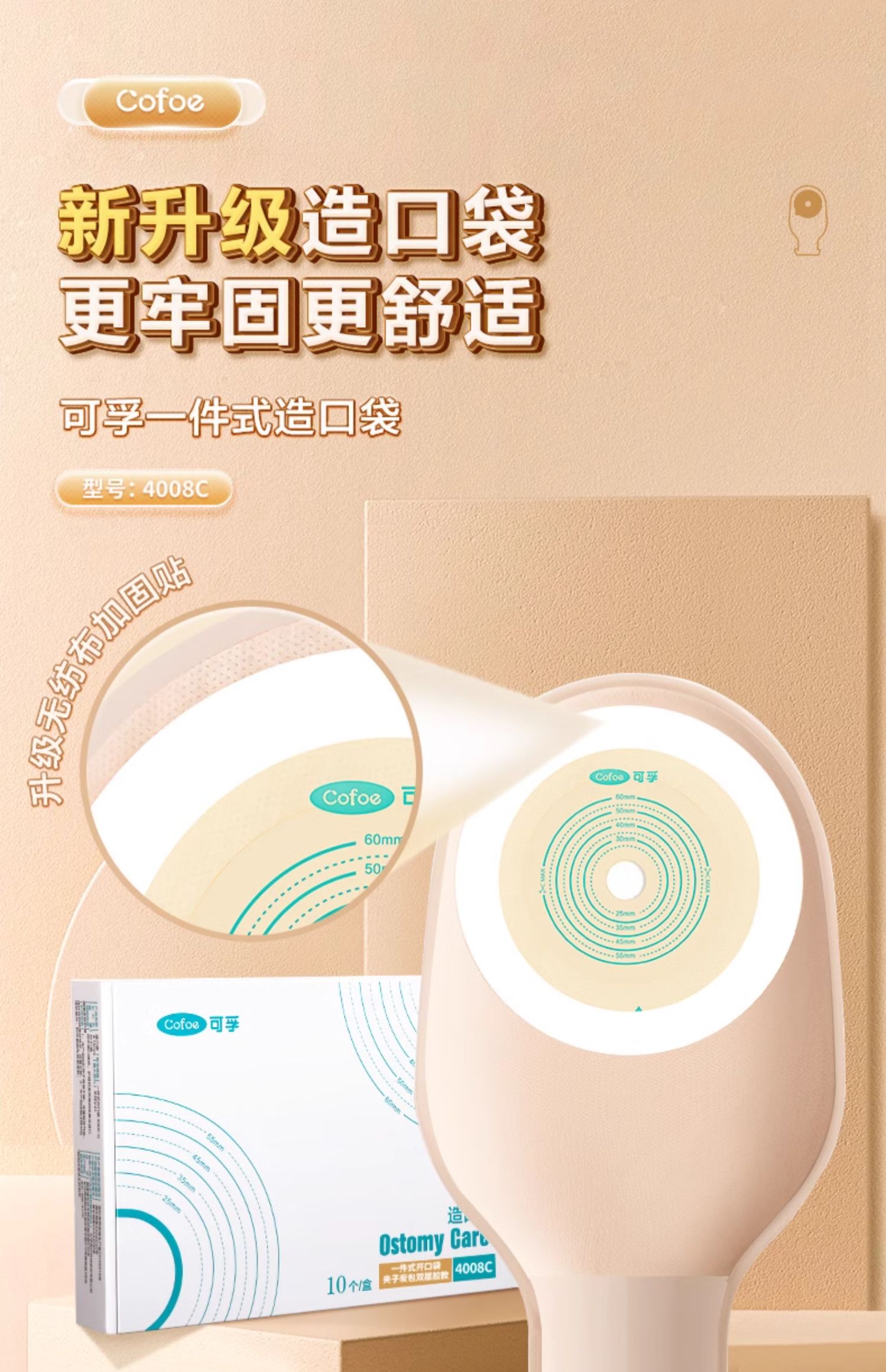 可孚一件式造口袋双层胶款 大便直肠癌改道4008C