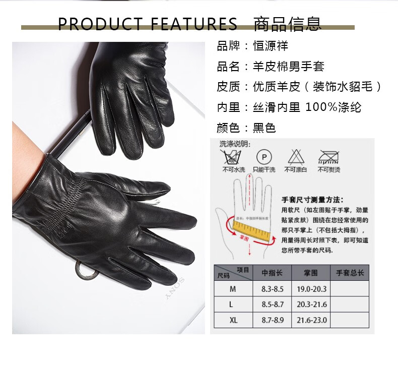 恒源祥 HYX1439 手套(羊皮男)均码 单位:付
