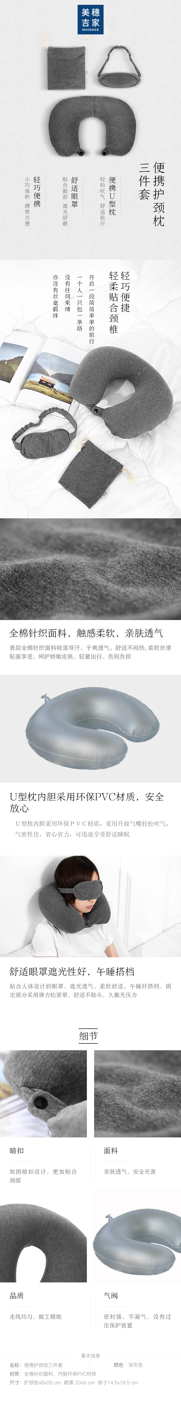 美穗吉家 便携旅行充气护颈枕三件套 灰色